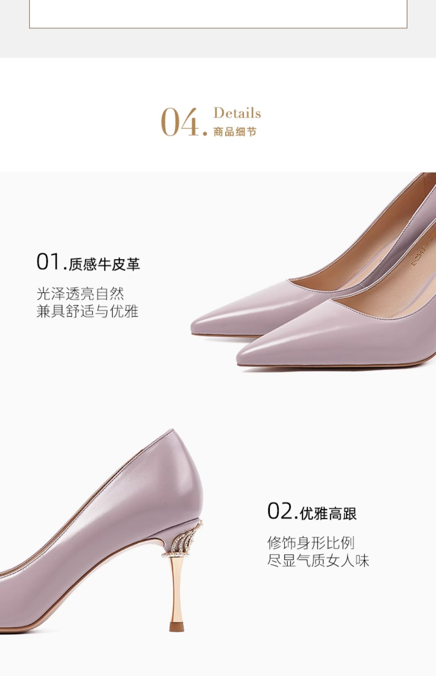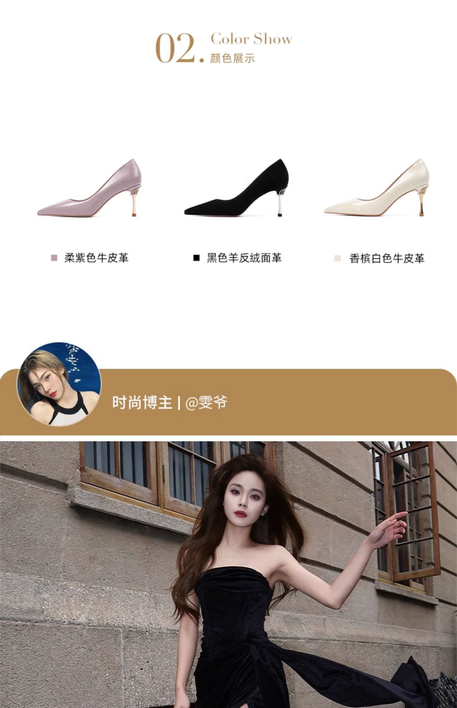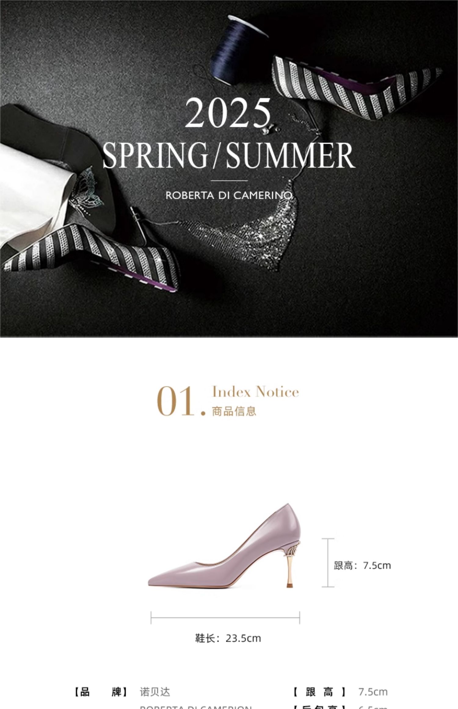 Roberta诺贝达 2025春季新款气质约会穿搭尖头皮质高跟鞋流行女RS254317