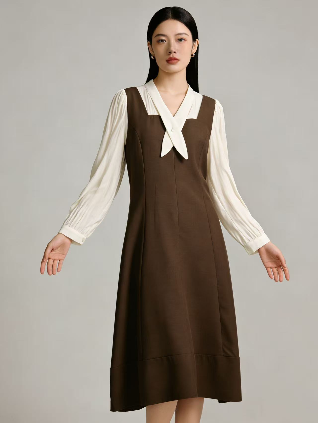 活动爆款【自营】衣周期~035假两件连衣裙-喜出