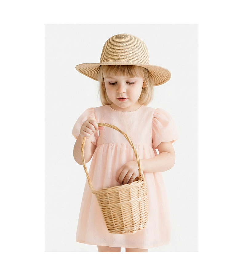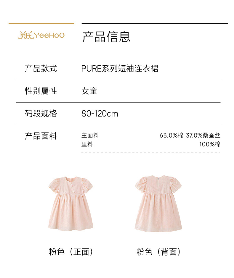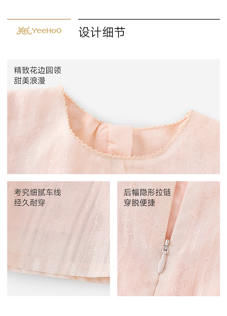 【高定系列】英氏儿童裙子夏季新款粉色公主裙女宝宝短袖连衣裙