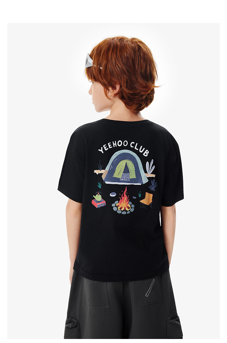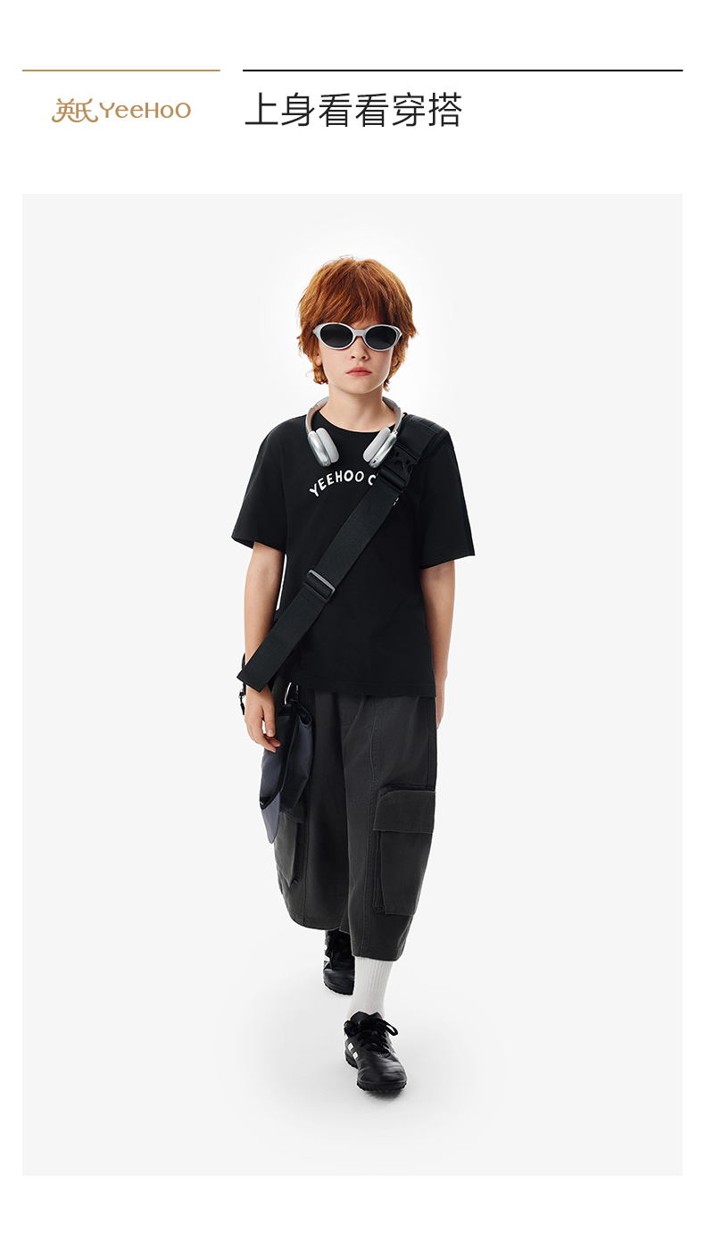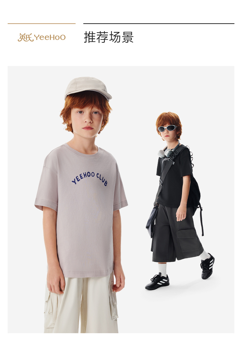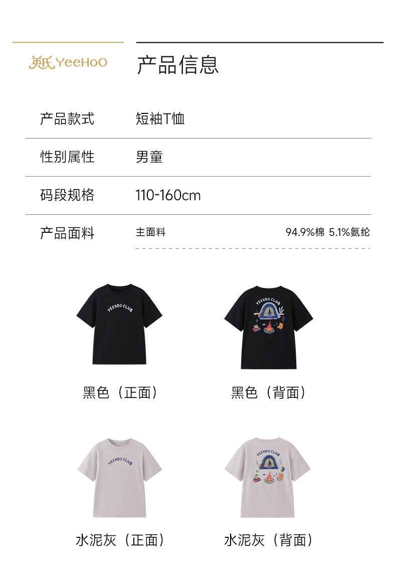英氏儿童衣服男童夏季短袖圆领T恤宝宝A类一等品卡通新款上衣