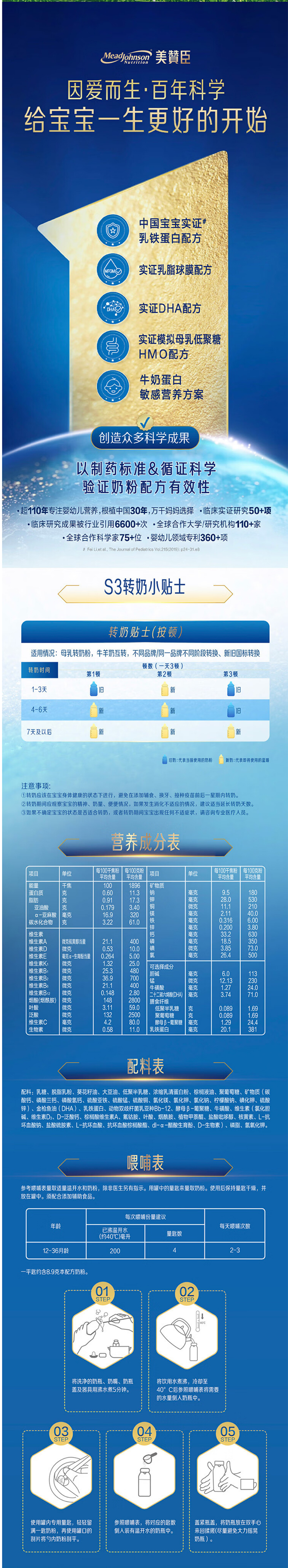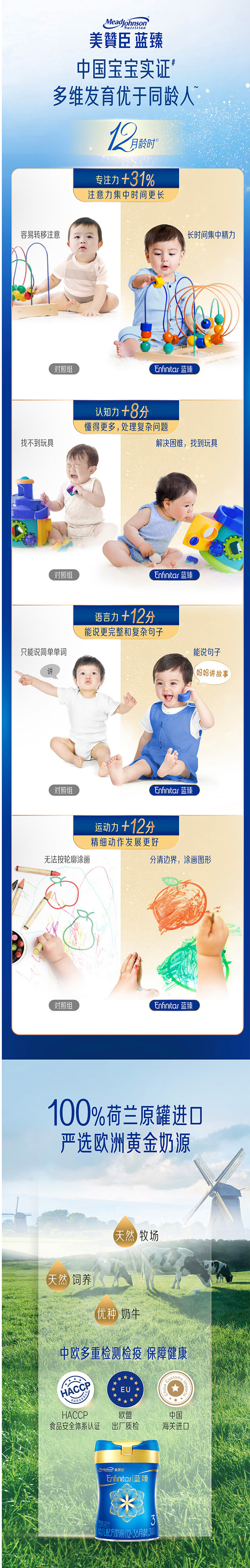 【新国标】美赞臣蓝臻幼儿配方奶粉3段820克