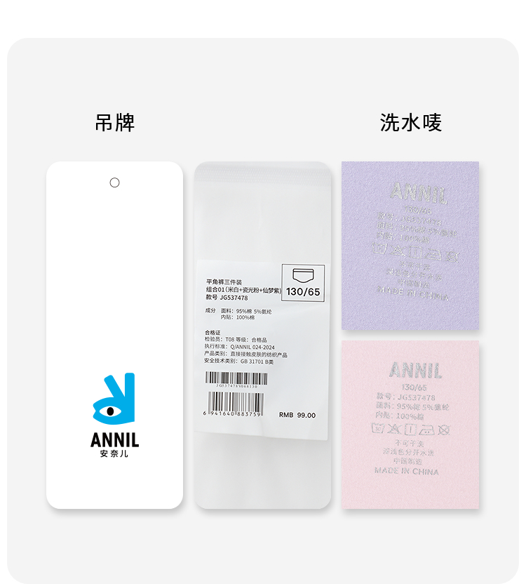 【实体店同款】女童平角裤三件装秋季新款安奈儿童装JG537478