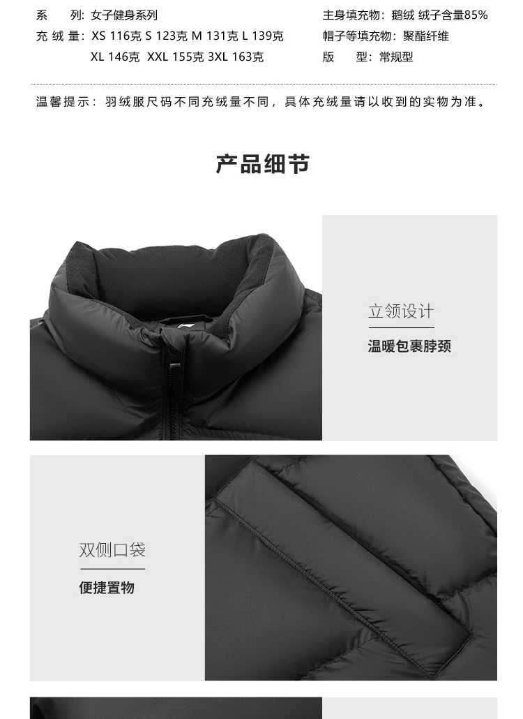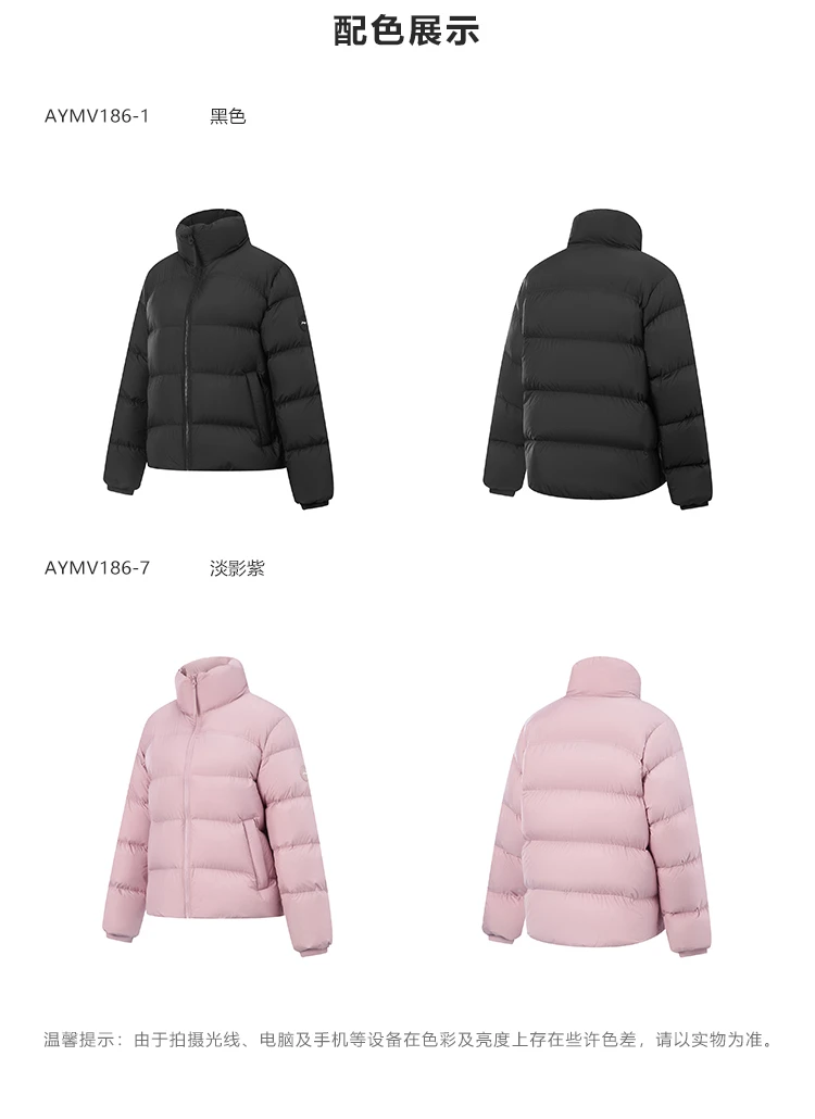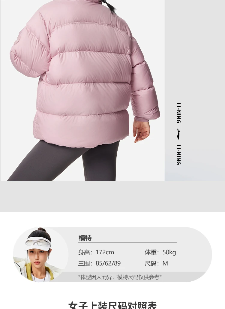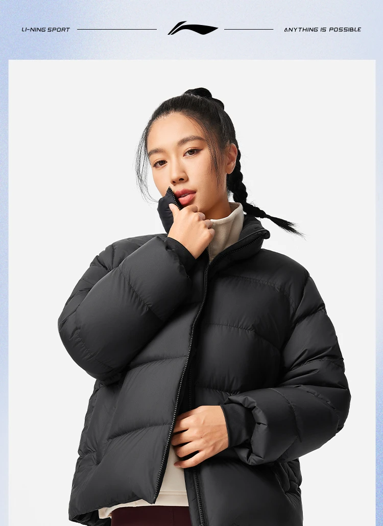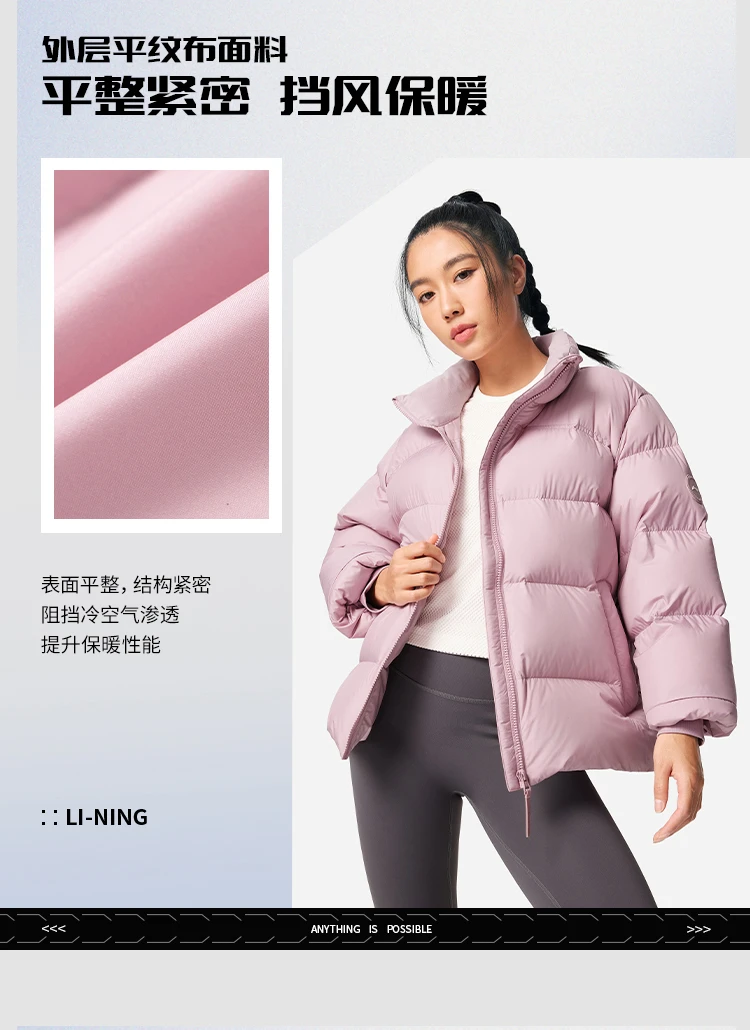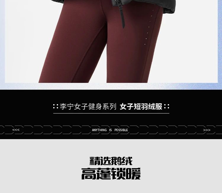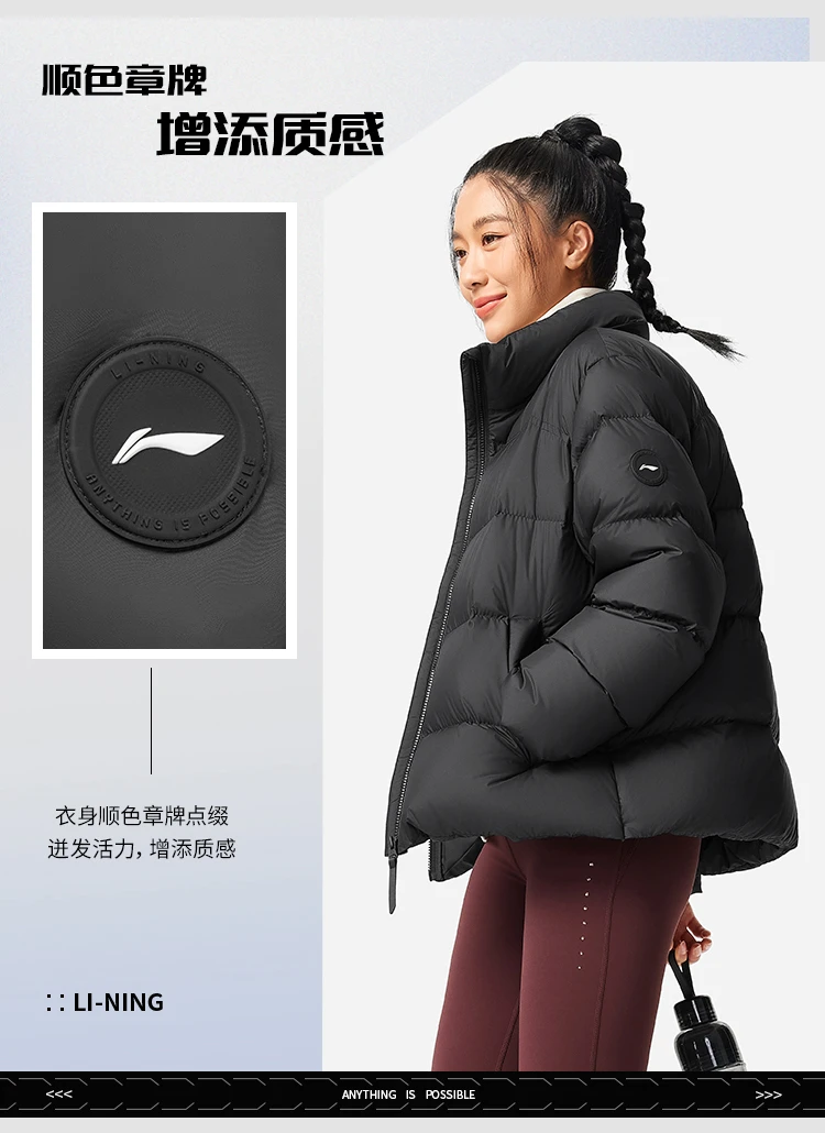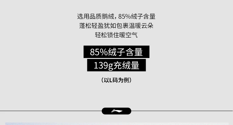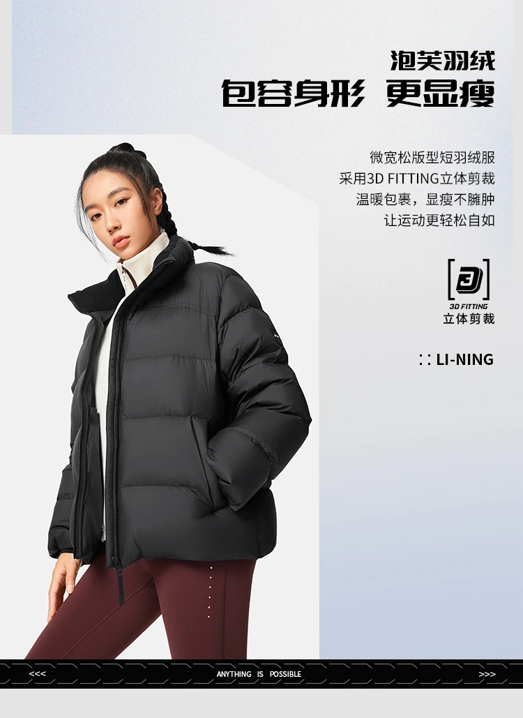 李宁女子立体裁剪85%鹅绒短羽绒服AYMV186