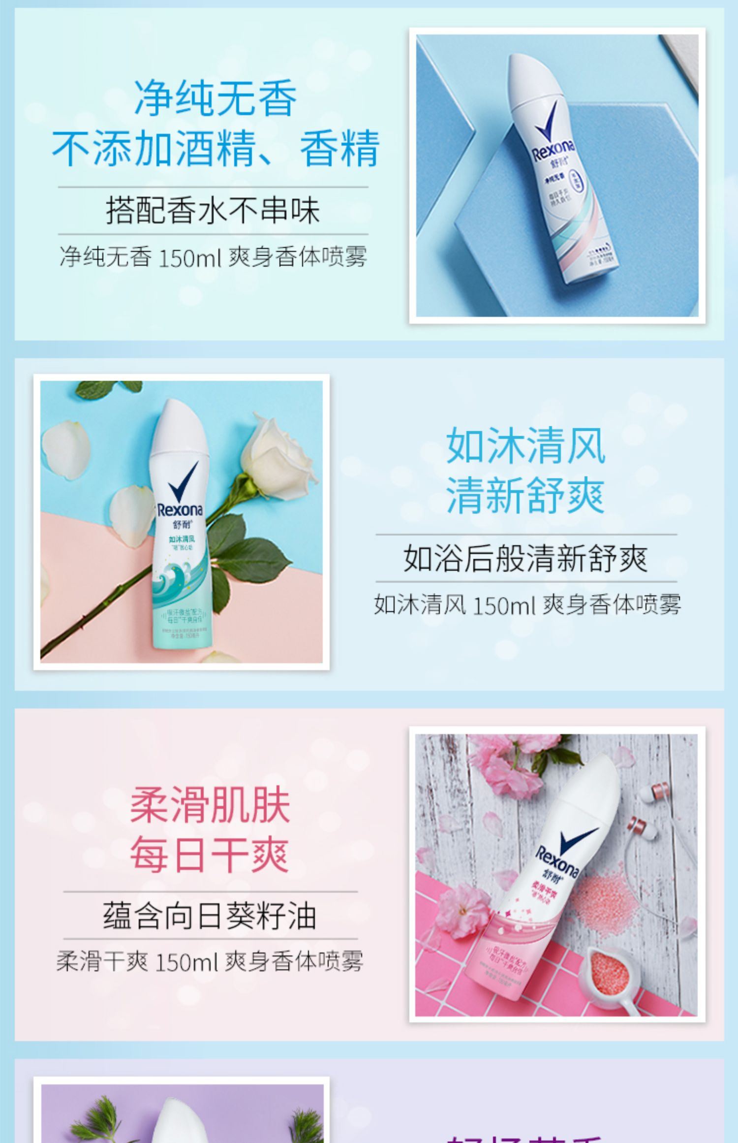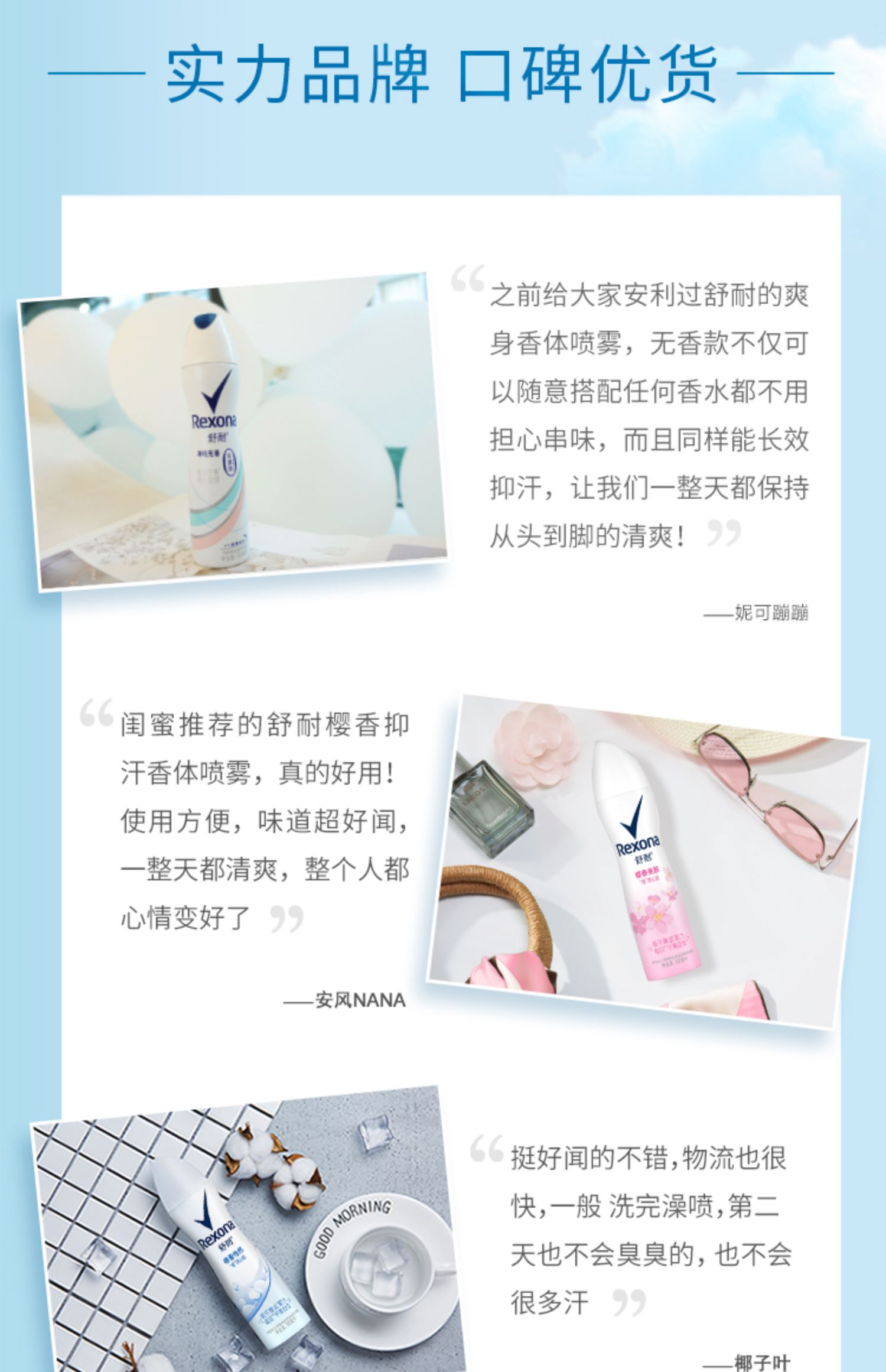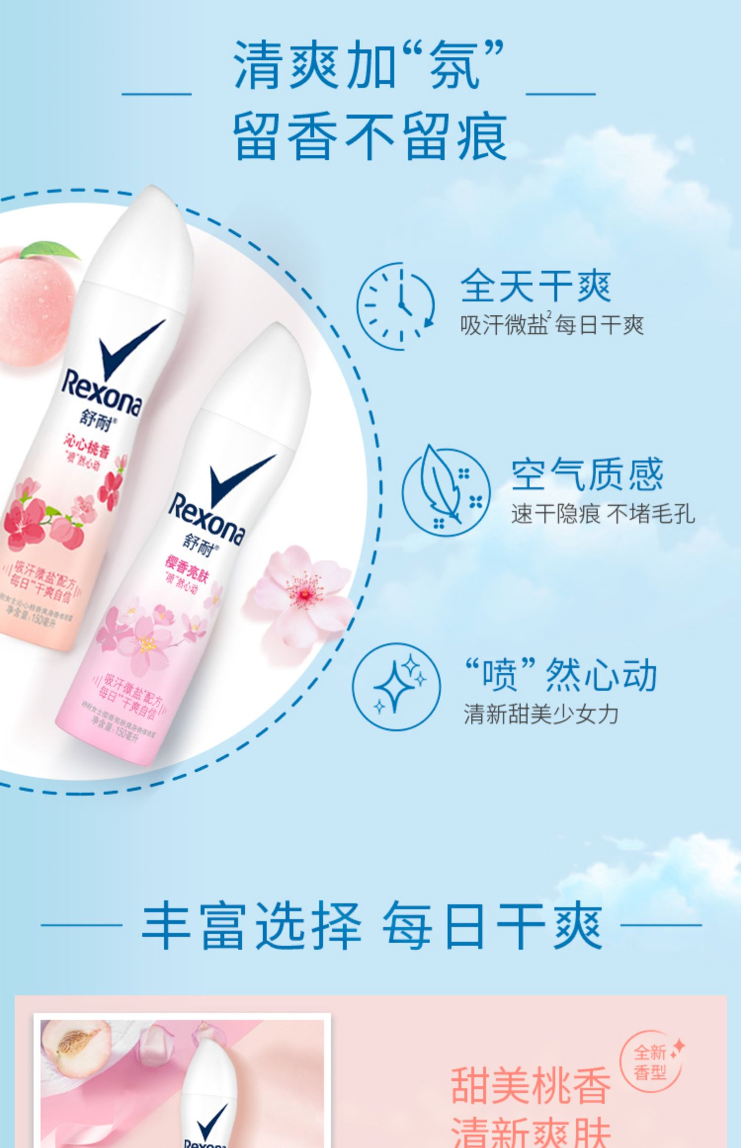 【门店直发 支持同城配送】Rexona舒耐止汗喷雾女士/男士持久淡香氛新清爽全身消除腋下异味150g