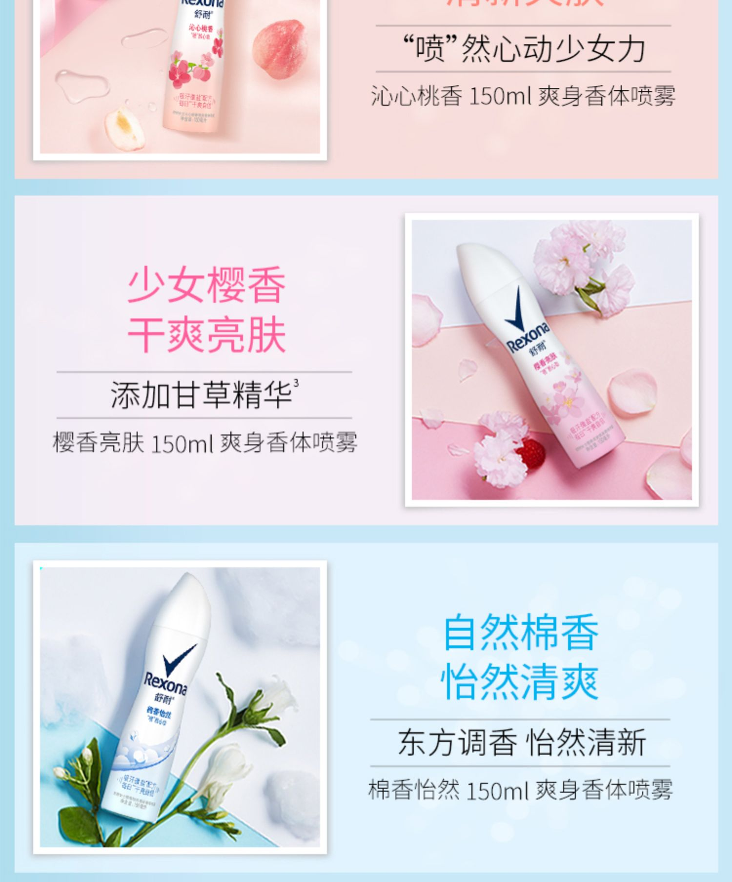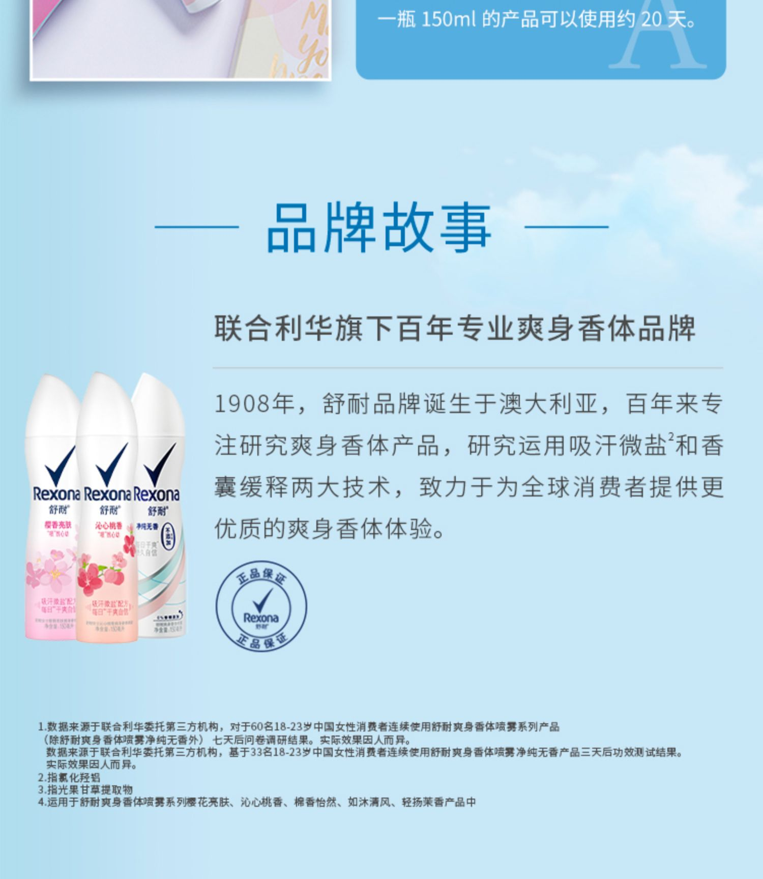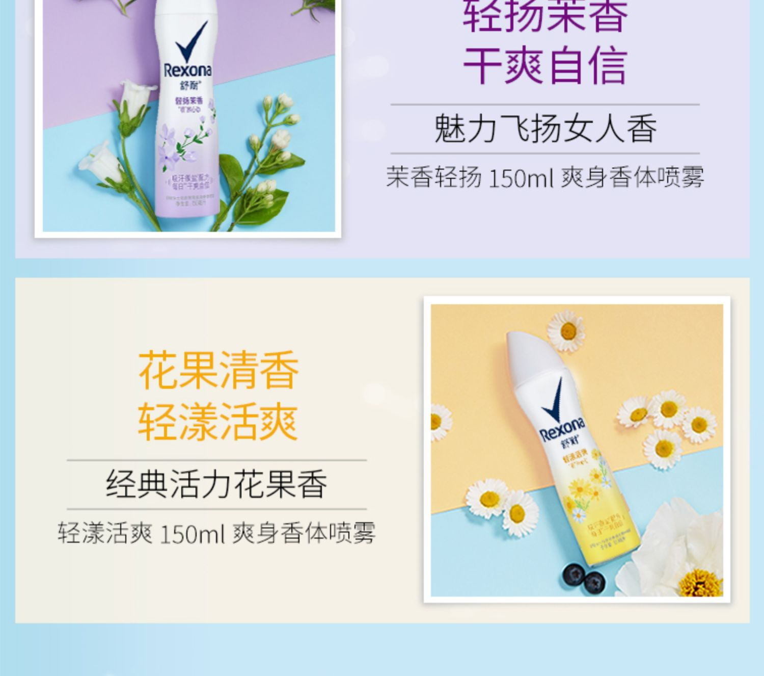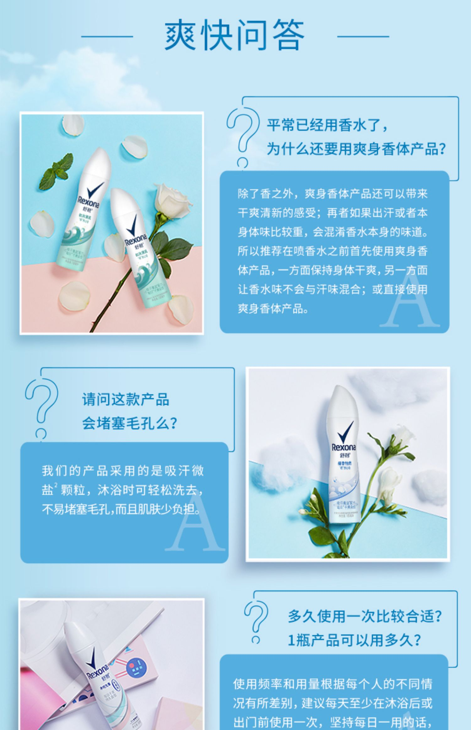 【门店直发 支持同城配送】Rexona舒耐止汗喷雾女士/男士持久淡香氛新清爽全身消除腋下异味150g