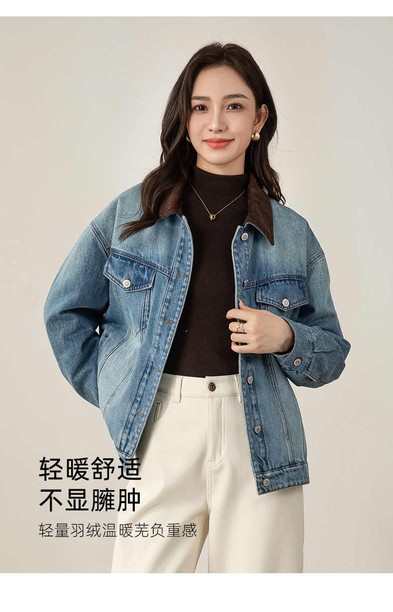「高货xg」全新升级【铂金会员367/天猫499/差价132】(01605)洛诗琳设计感牛仔羽绒服2025冬季新款港风复古保暖外套女