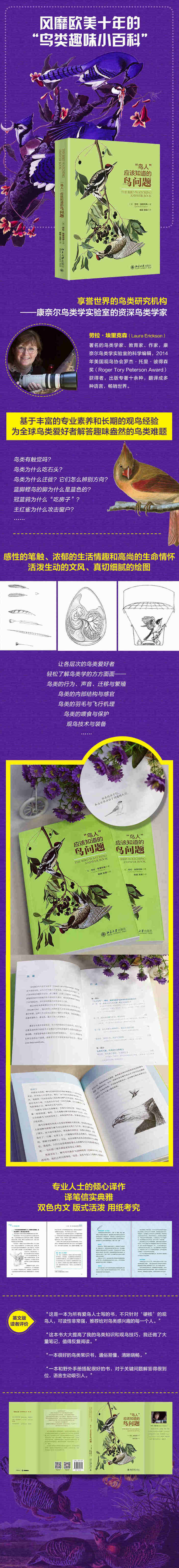 作者简介:(美)劳拉·埃里克森,康奈尔大学鸟类学实验室的资深研究员,美国《观鸟》杂志的特约编辑,也是西方世界众多鸟类学网站的学术顾问。著有包括《鸟人们应该知道的鸟问题》在内的七本畅销书。