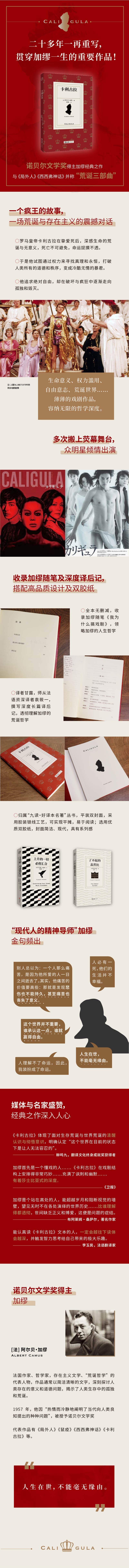 本版《卡利古拉》采用了精心翻译的全新译本,附有长篇深度译后记和加缪随笔《我为什么搞戏剧》,帮助读者更好地理解加缪深邃的思想世界。无论是对加缪思想的首次接触,还是重新阅读这部经典,它都将给你带来深刻震撼的阅读体验。