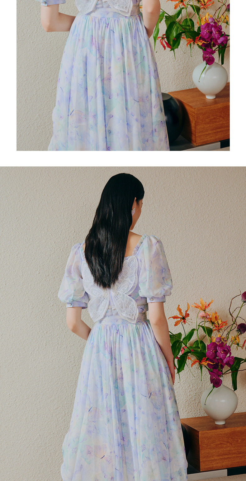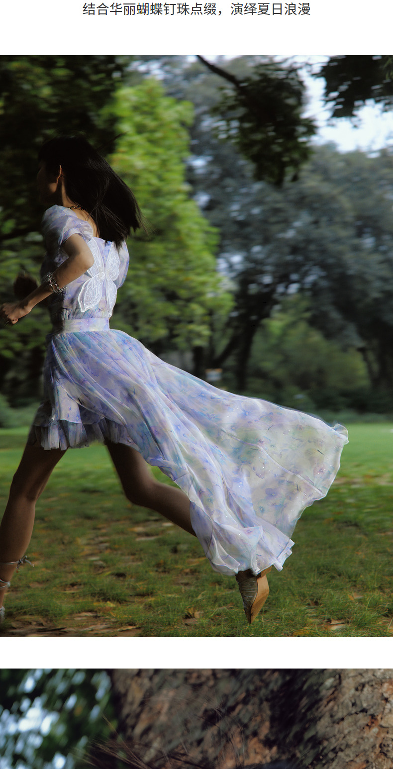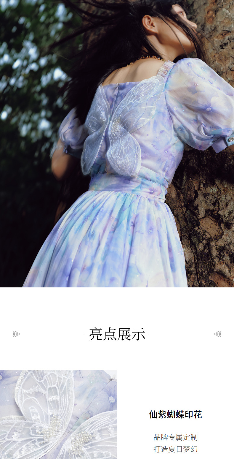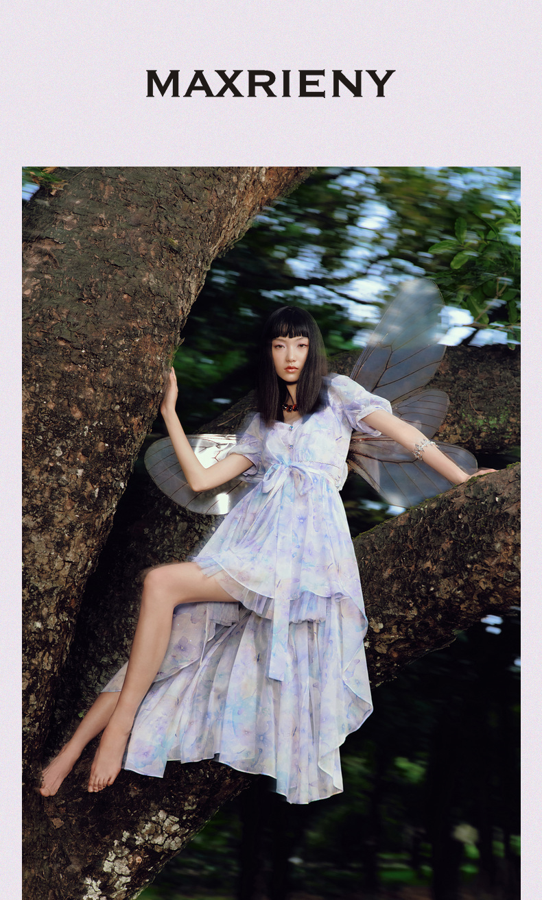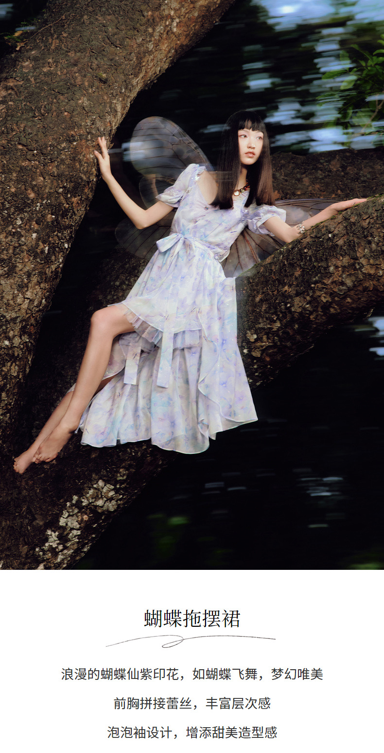 蝴蝶仙紫系列2.0MAXRIENY森系精灵风拖尾连衣裙(货号:MC88DR315)