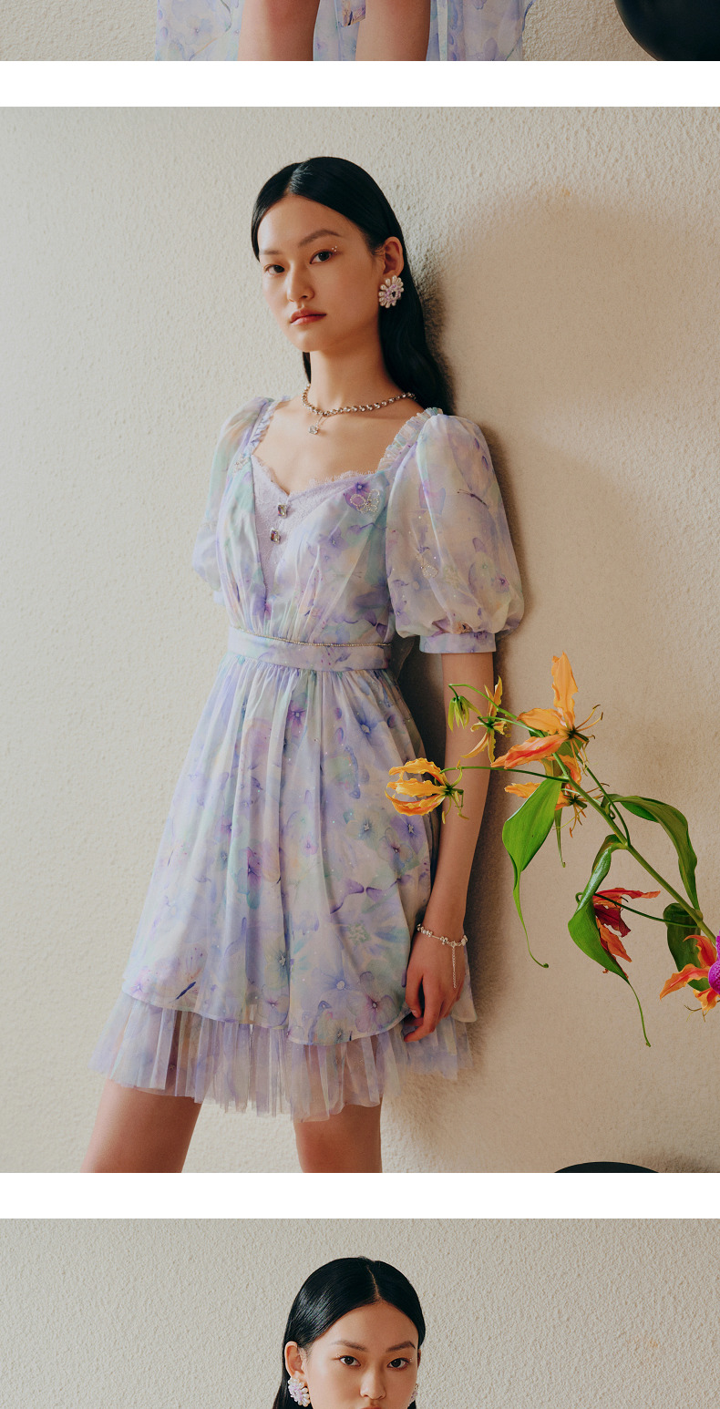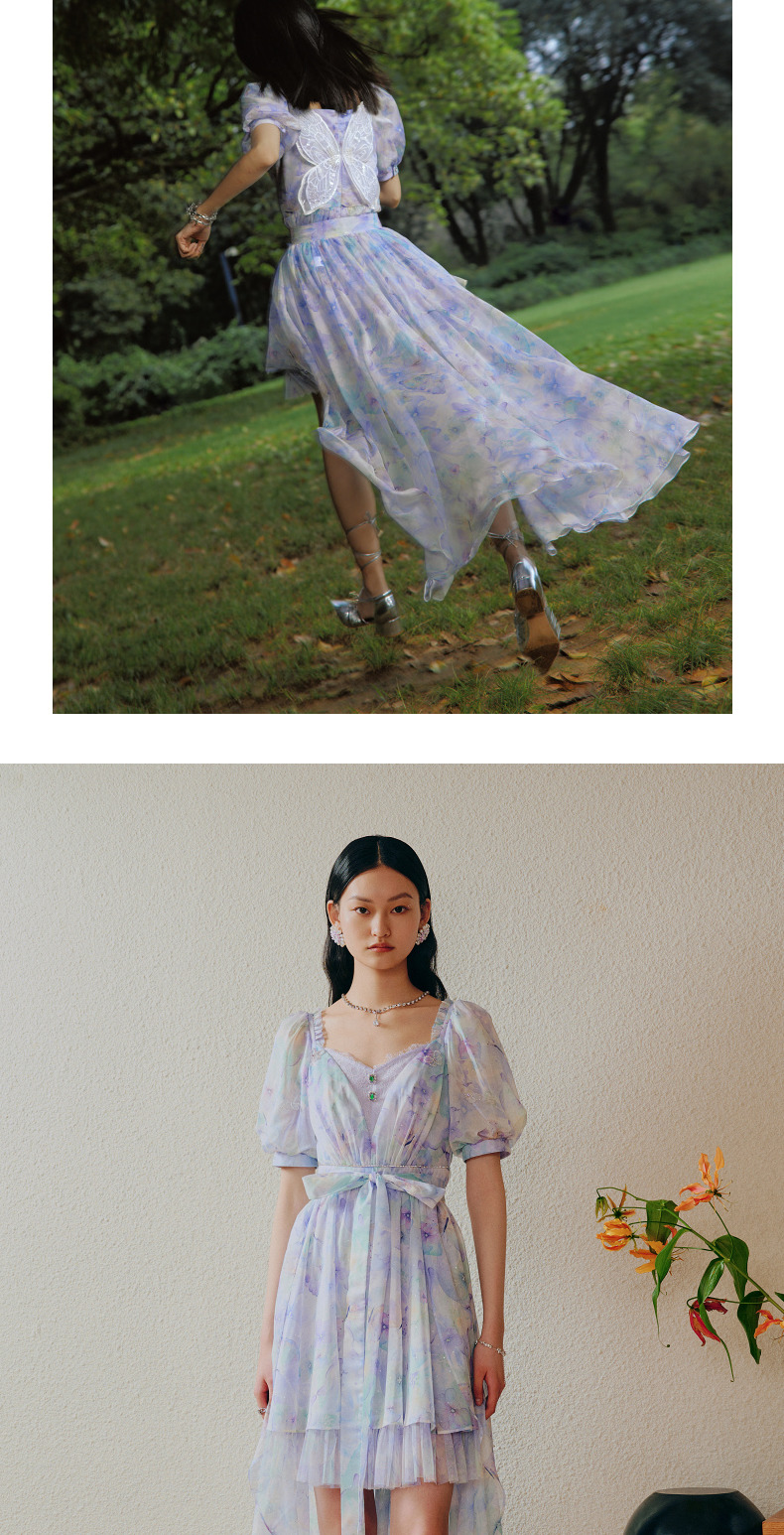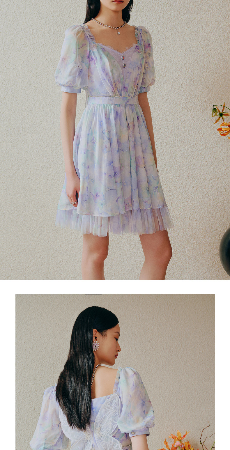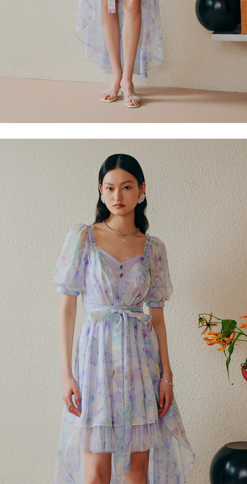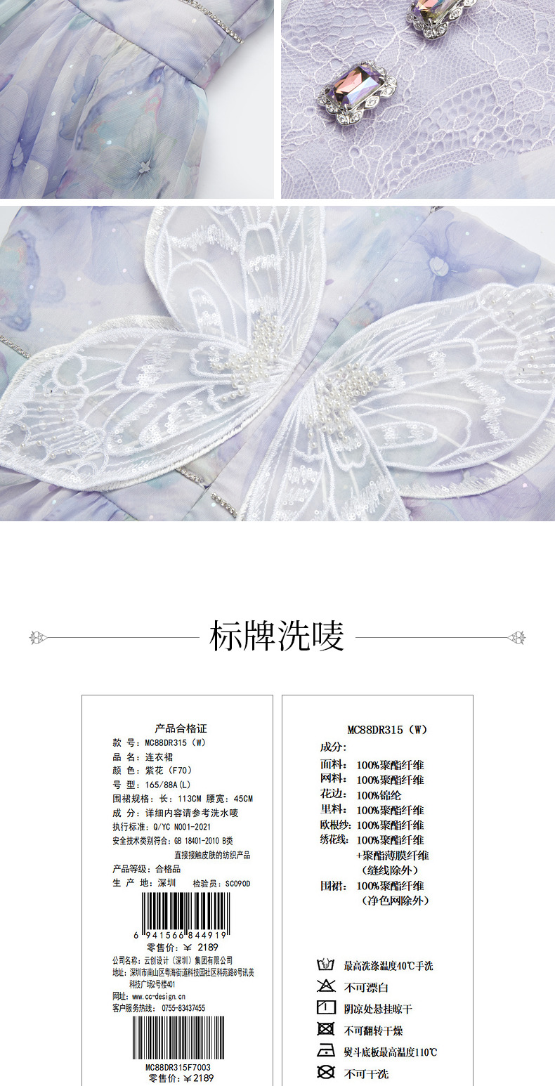 蝴蝶仙紫系列2.0MAXRIENY森系精灵风拖尾连衣裙(货号:MC88DR315)