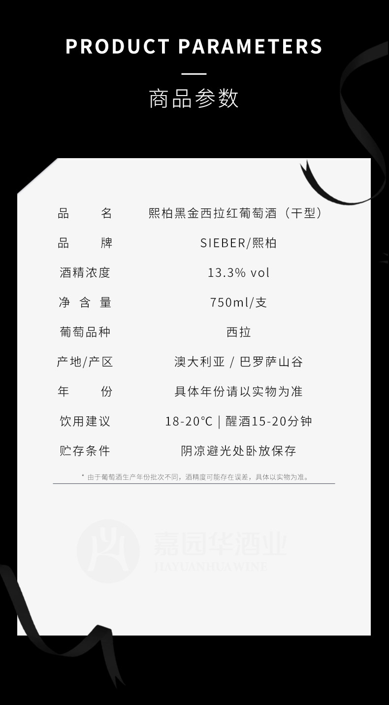 熙柏黑金西拉红葡萄酒