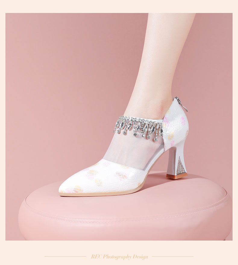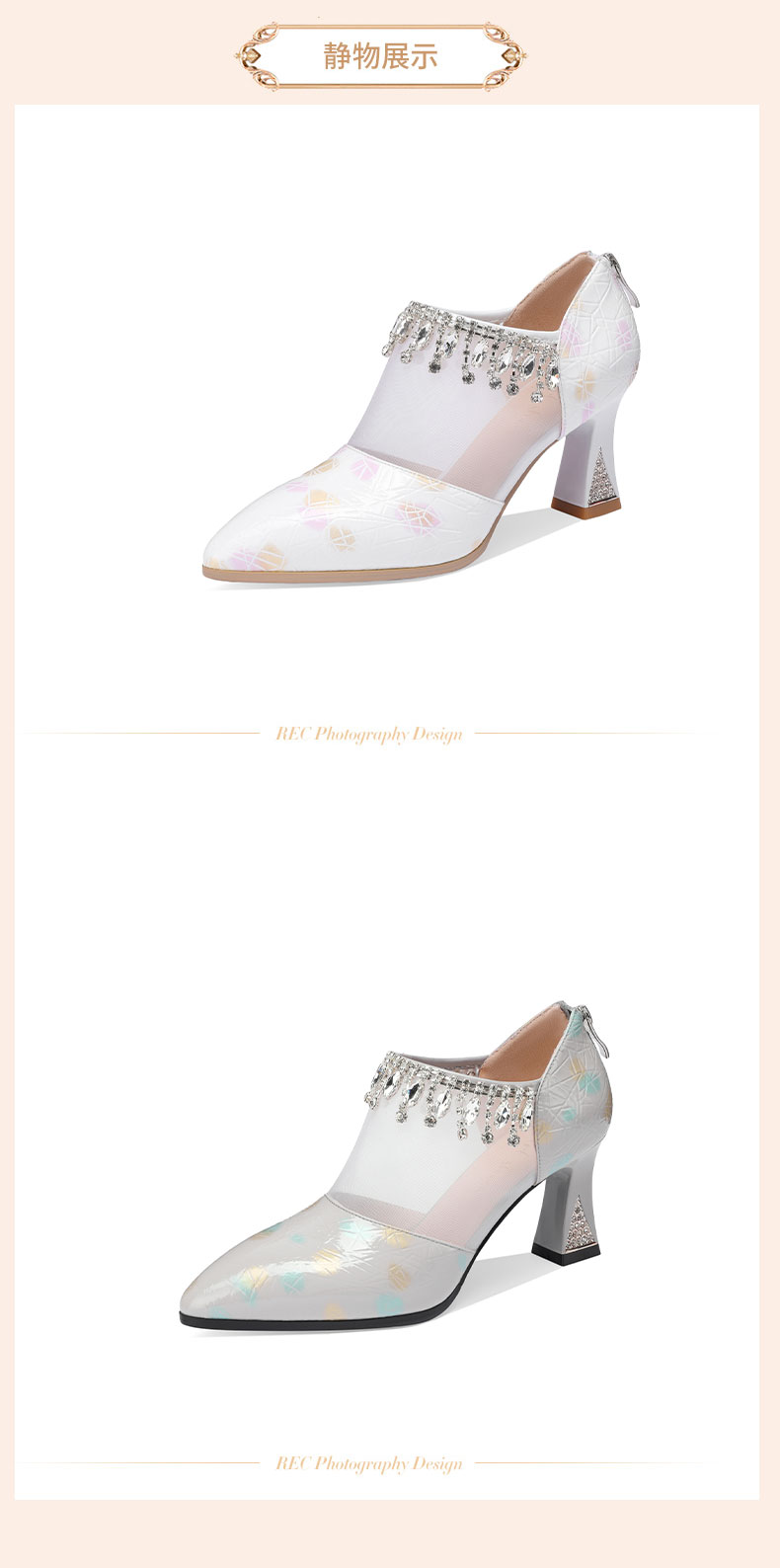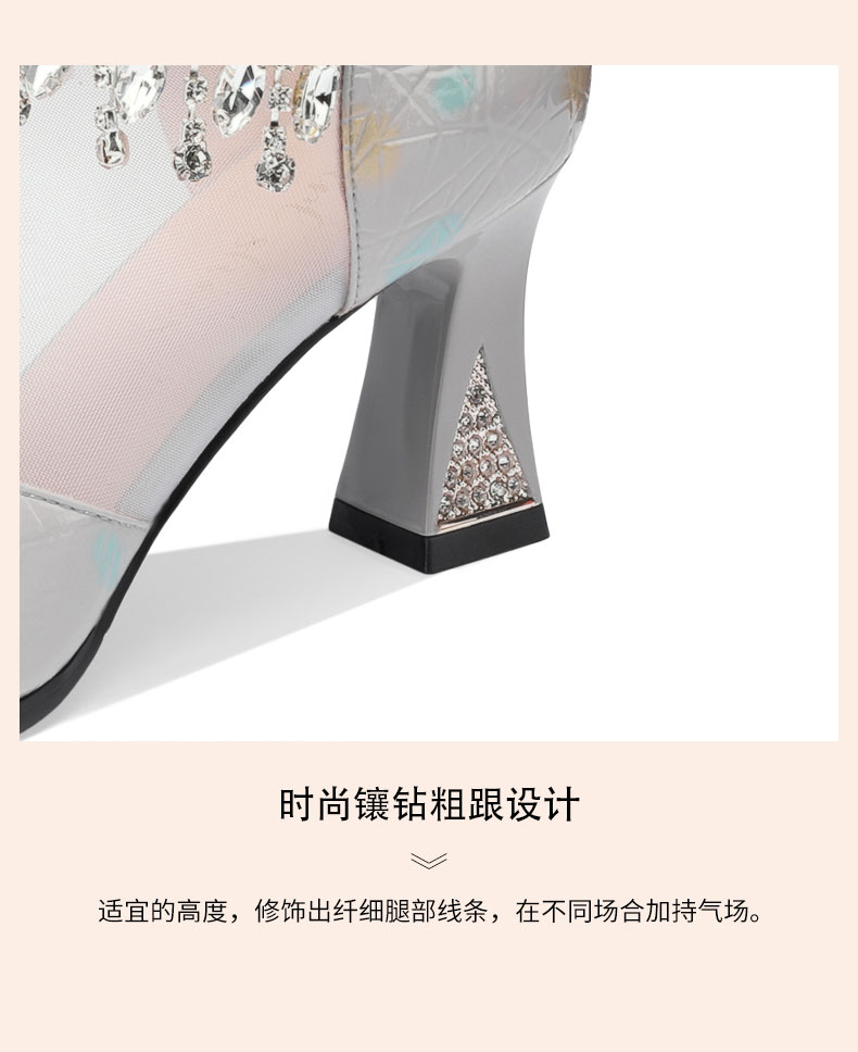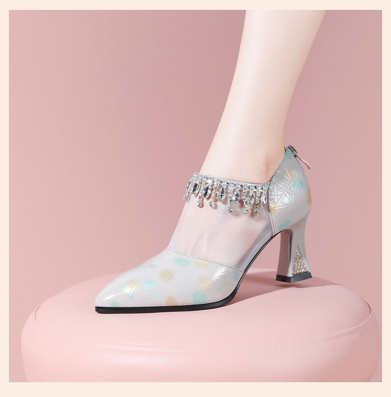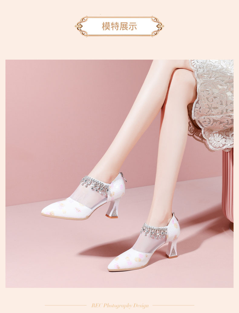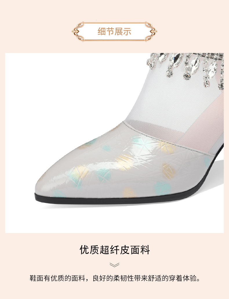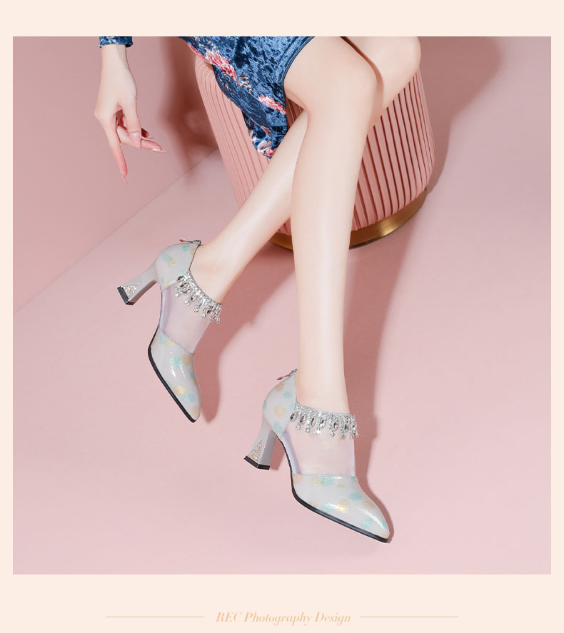 优雅百搭,真皮网纱拼接流苏高跟凉鞋YSML-A025-K440