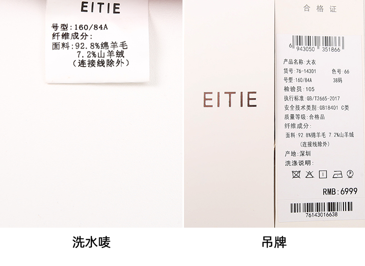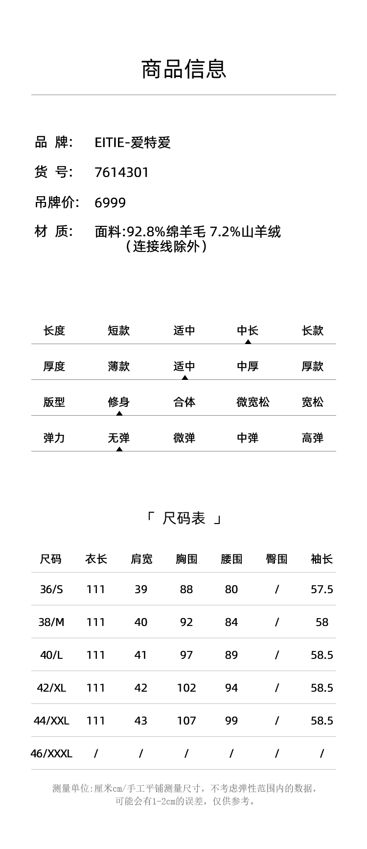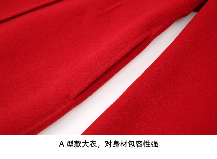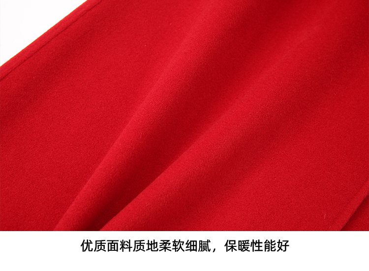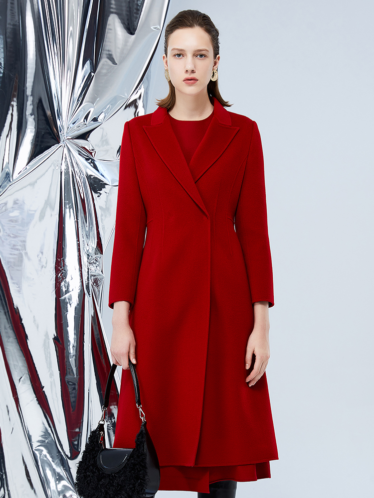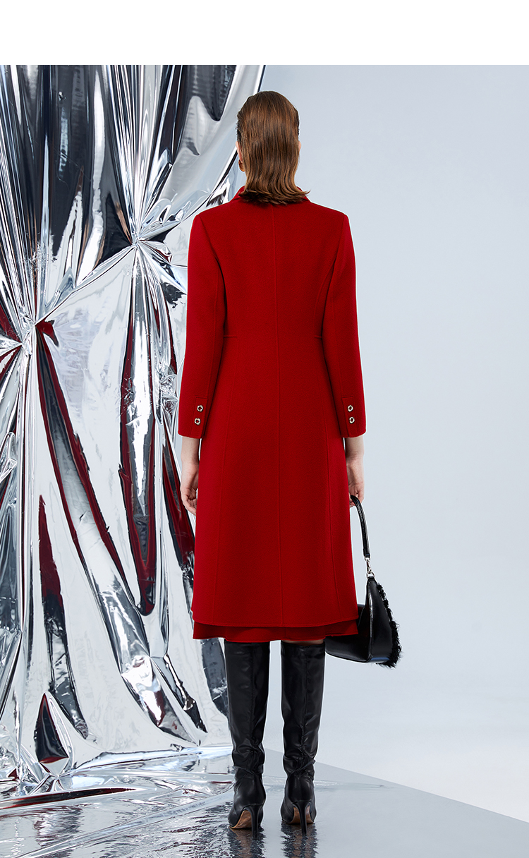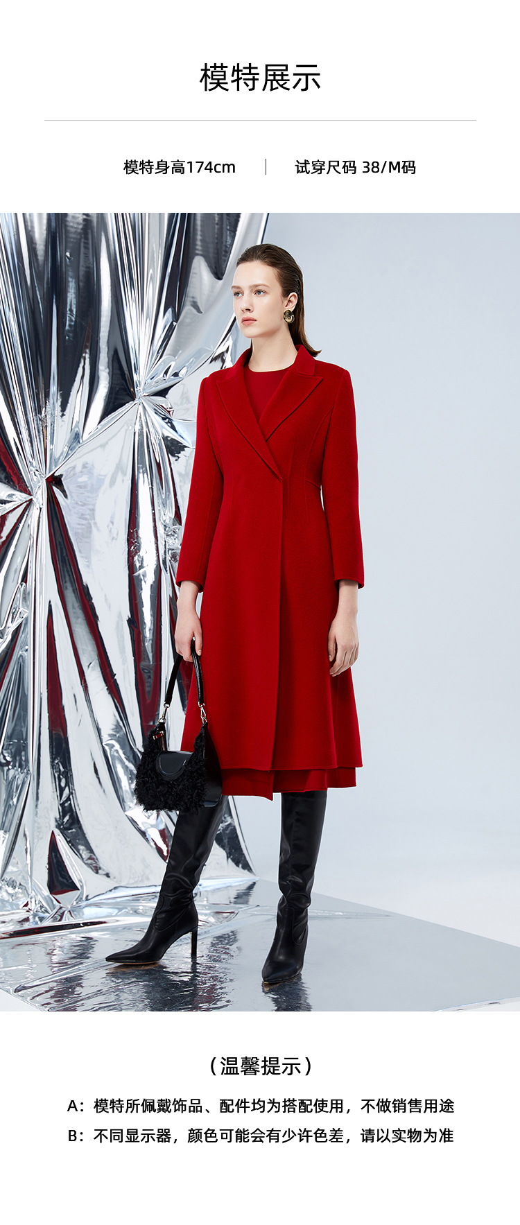 EITIE爱特爱冬季新款时尚复古通勤翻领大衣红色毛呢外套7614301