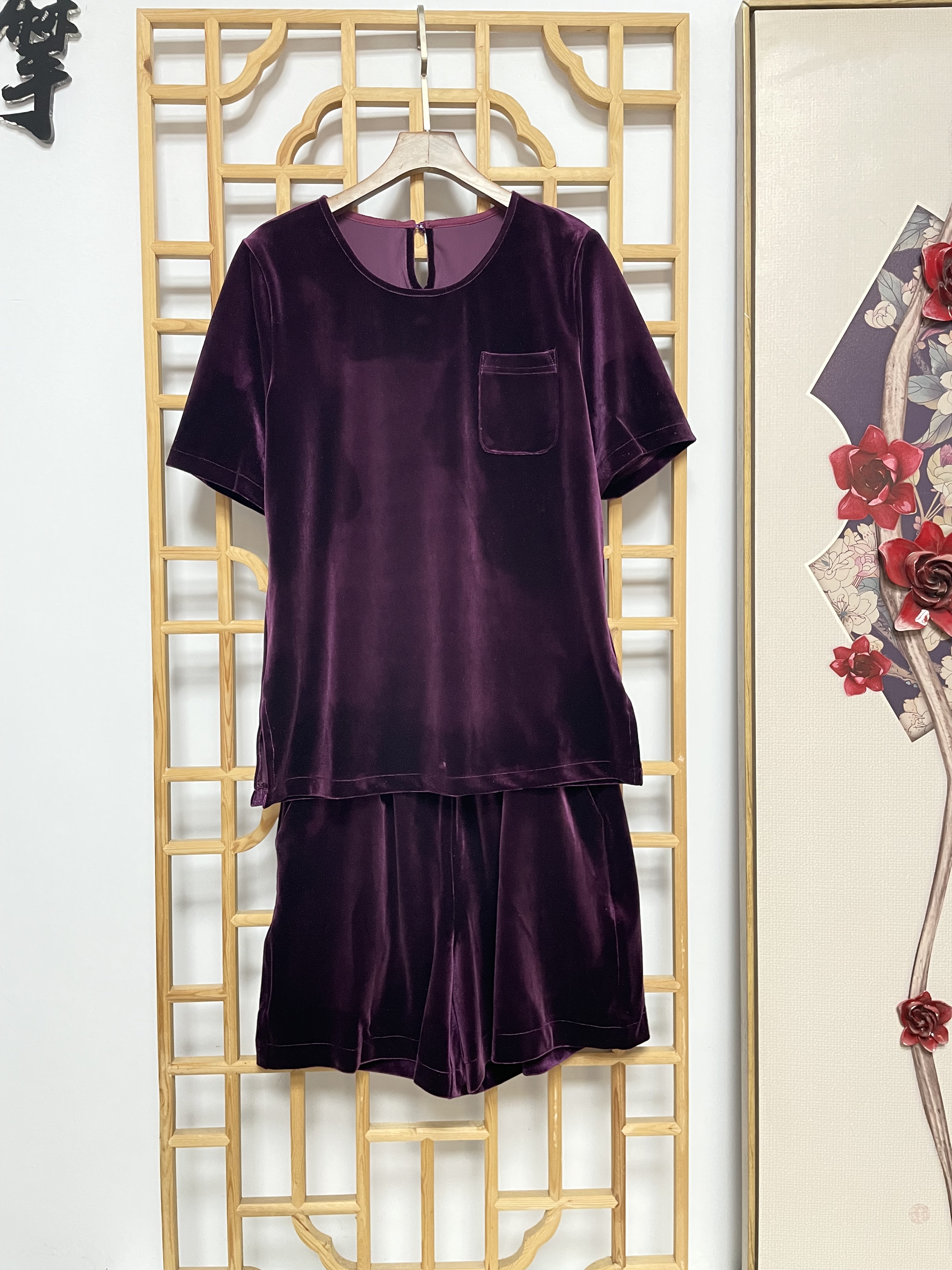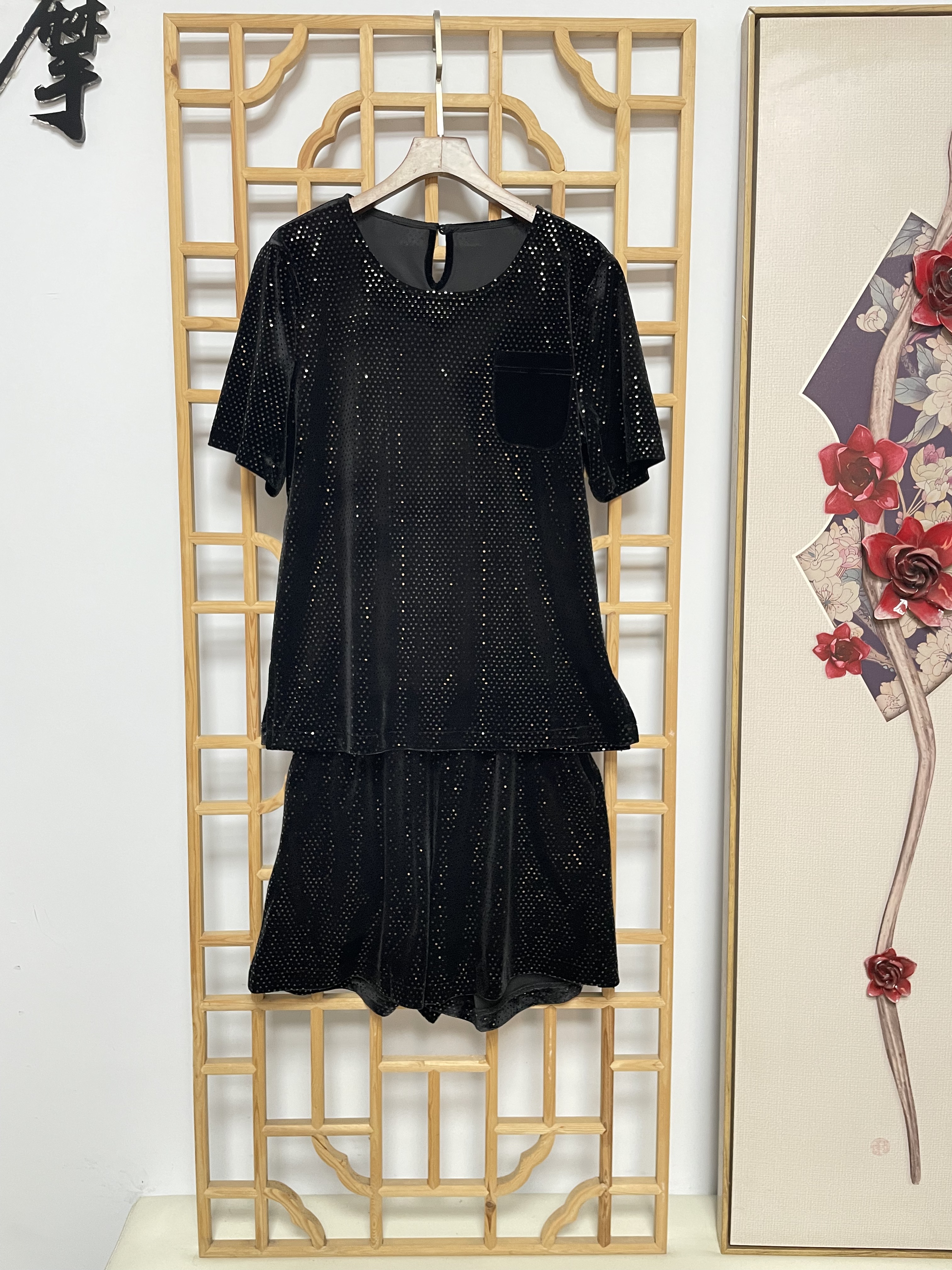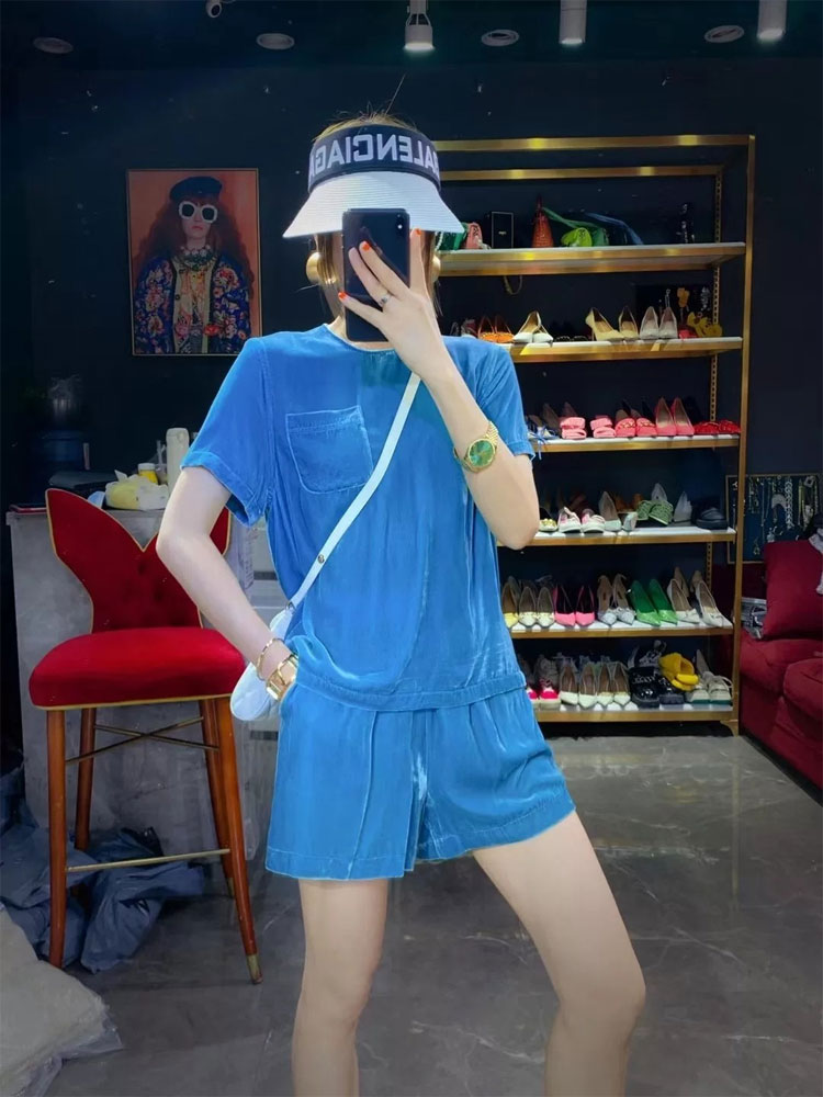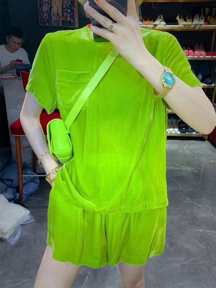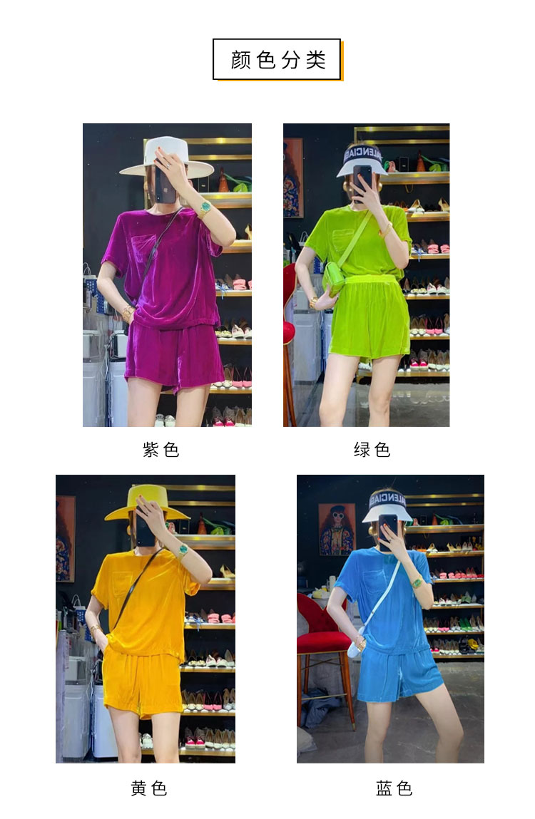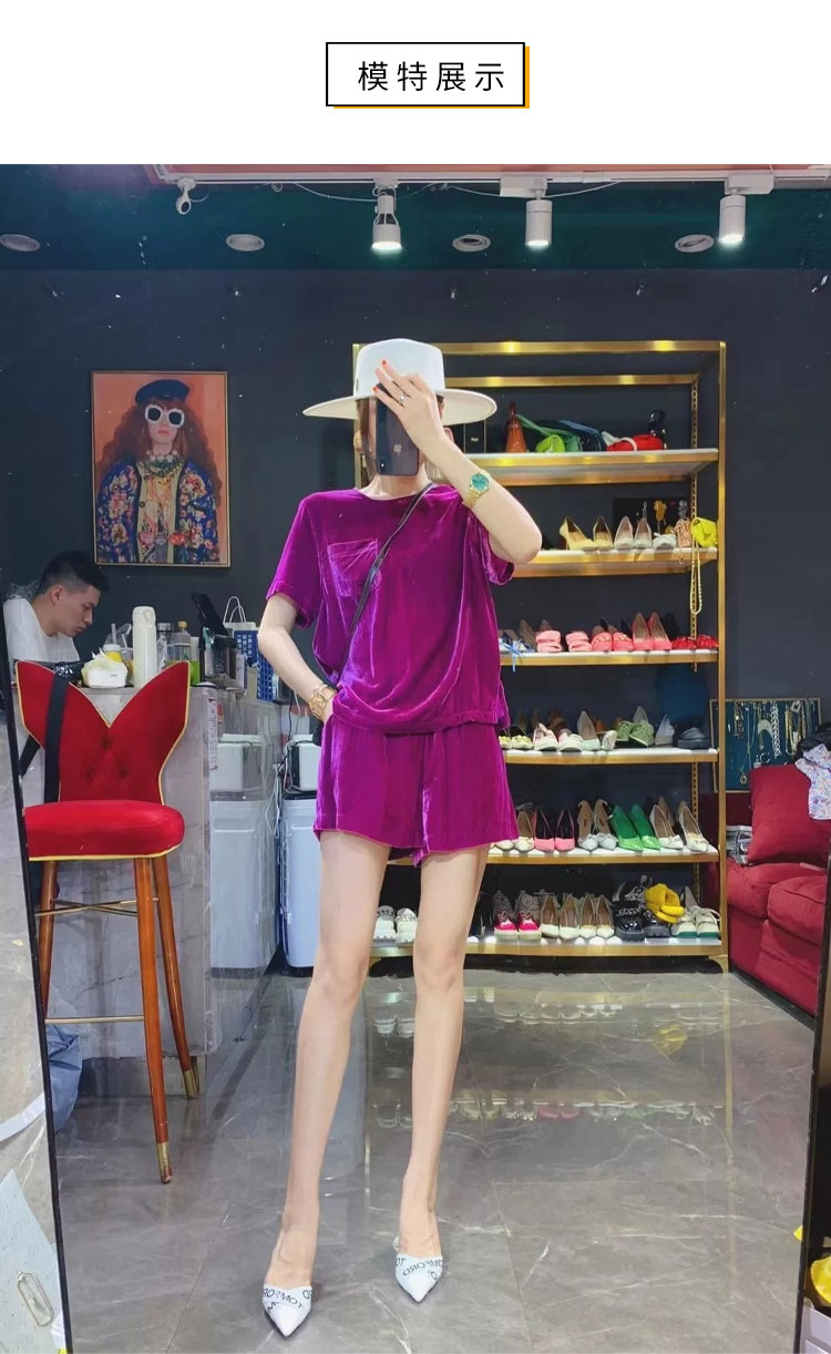 丁摩 进口丝绒夏季时尚短袖上衣短裤套装女薄款运动套装Q121166(21-179)HS-DY199