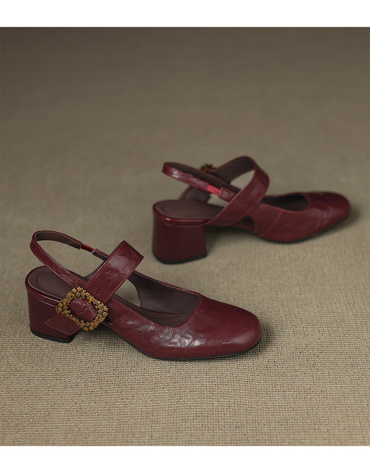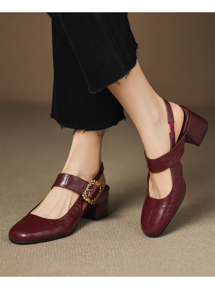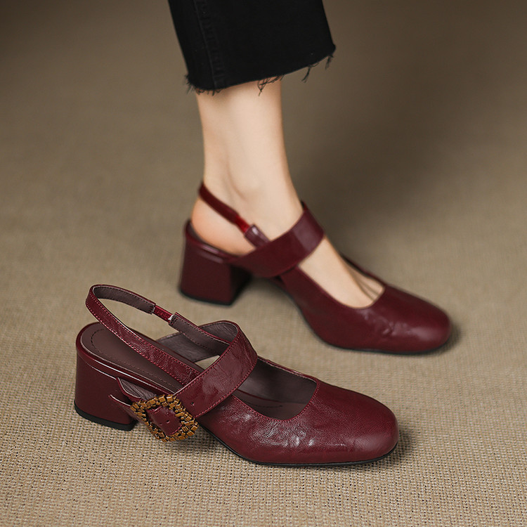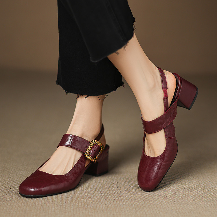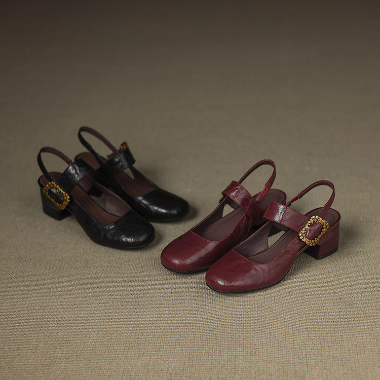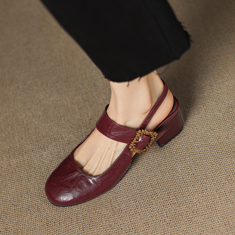 【货号】AJ9955【鞋面材质】头层手抓羊皮【内里材质】头层猪皮【垫底材质】头层羊皮【鞋底】牛筋底【跟高】5cm【颜色】酒红色 黑色【尺码】34-40(大小定制不退换)