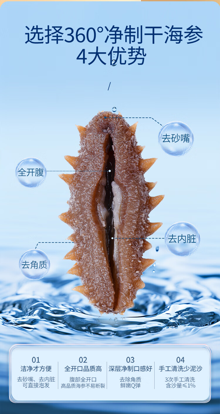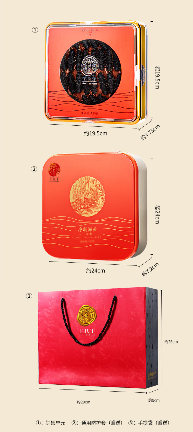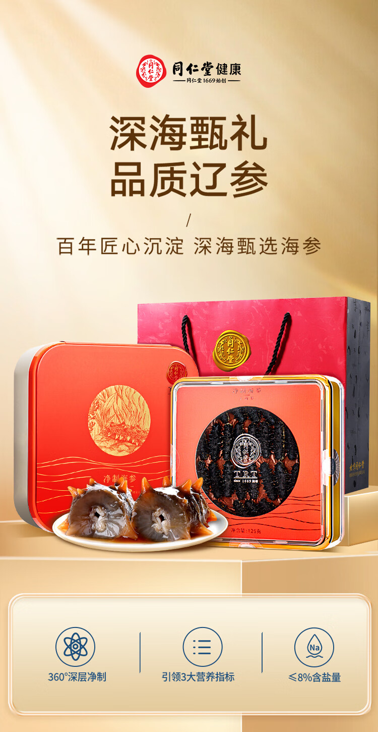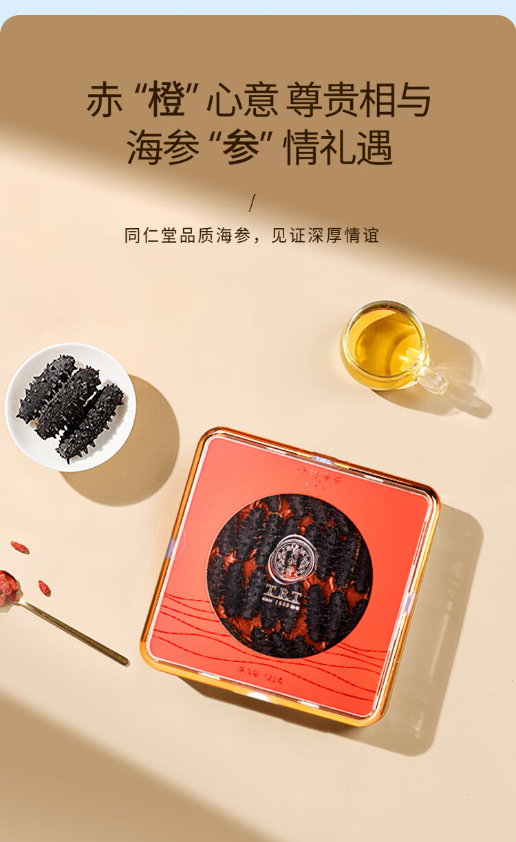 北京同仁堂(TRT)大连淡干海参辽刺参净制125g 25-33只礼盒SY