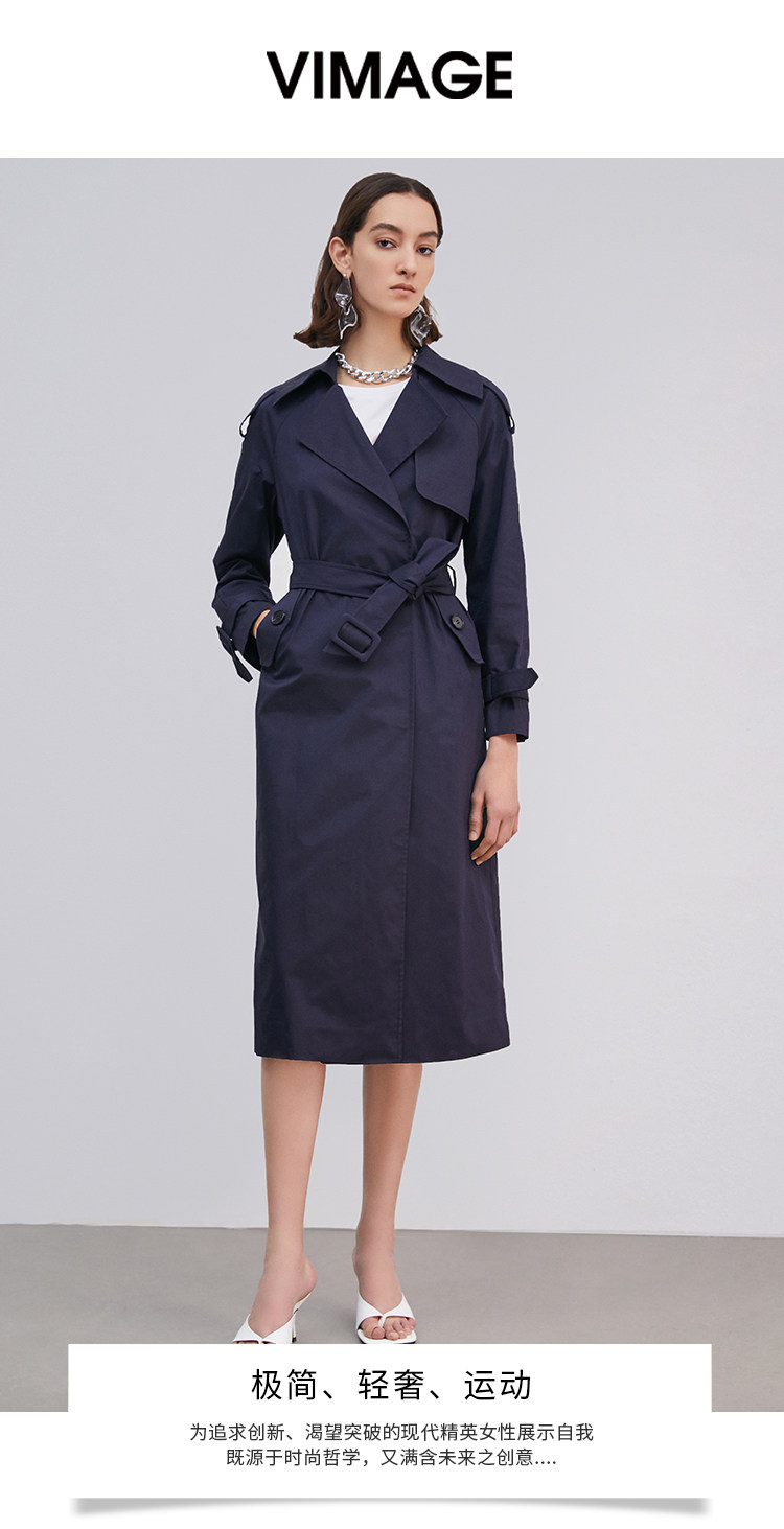 VIMAGE纬漫纪品牌女装春季新款洋气显瘦长款收腰气质风衣外套VA2104103