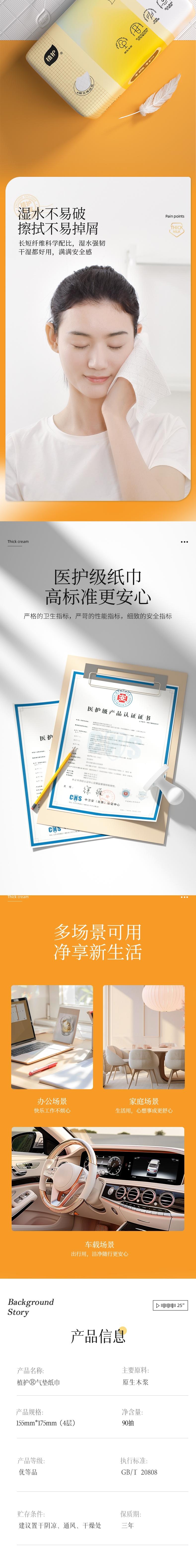 植护 气垫纸巾(炽芒系列)155*175/4层90抽*3包 ZH4087403