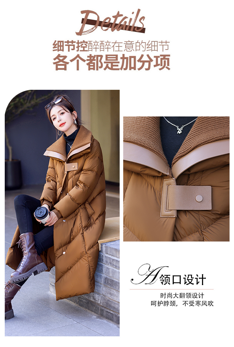 冬季新款,外套白鸭绒大翻领中长款羽绒服HR-MYLA8221