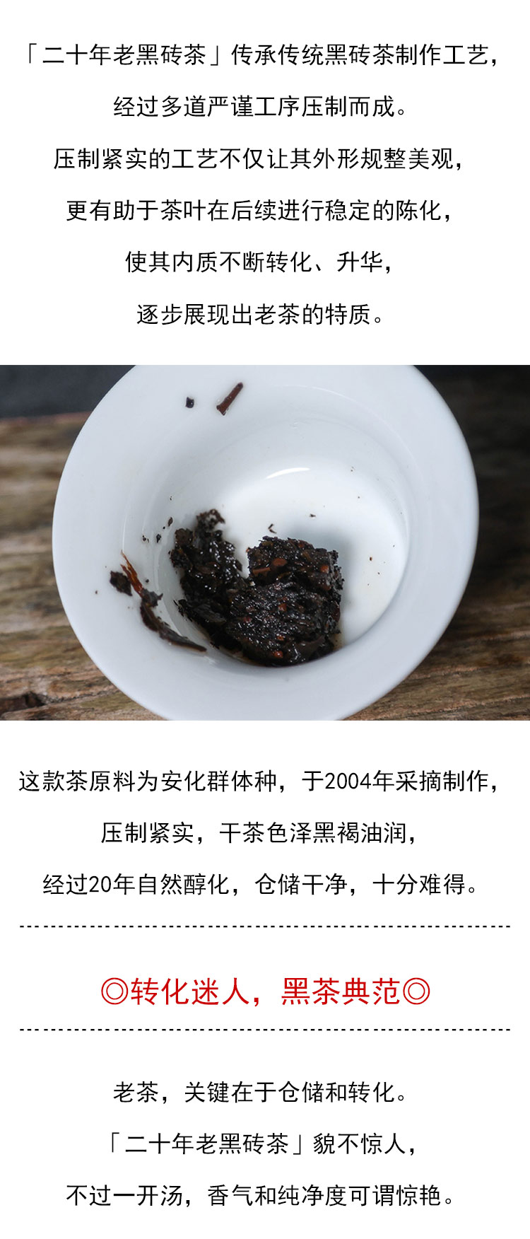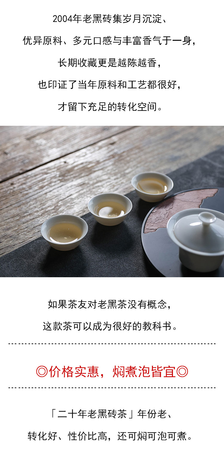 茶香记 二十年老黑砖茶仓储干净价格实惠2004年陈化到位焖煮泡皆宜宜藏宜喝