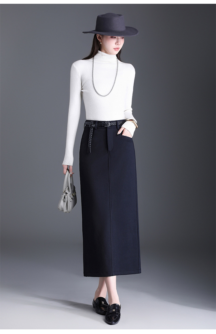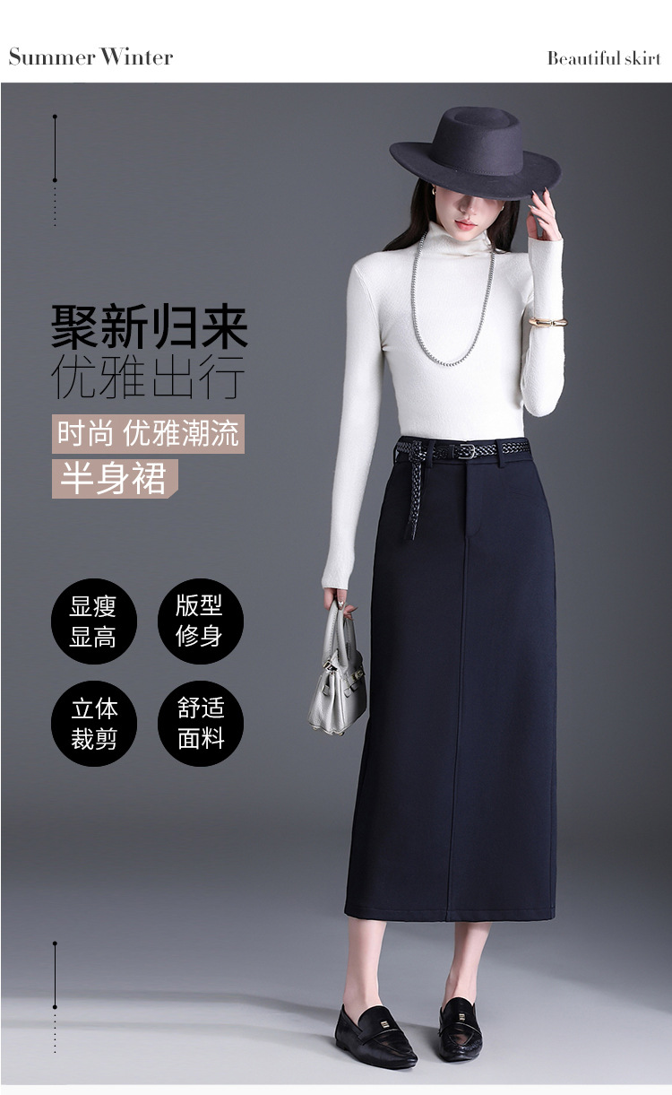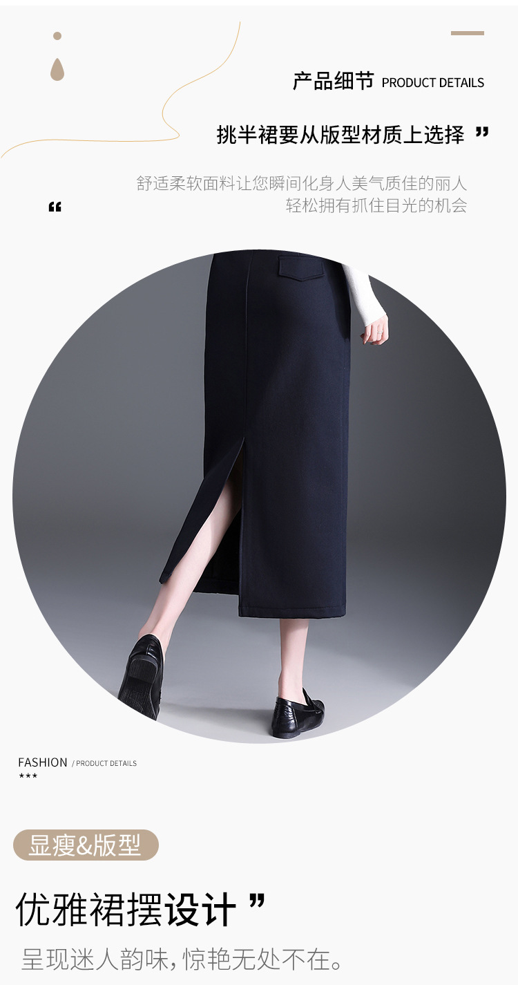 QYM 776-Y直筒半身裙包臀裙气质开衩中长款一步裙
