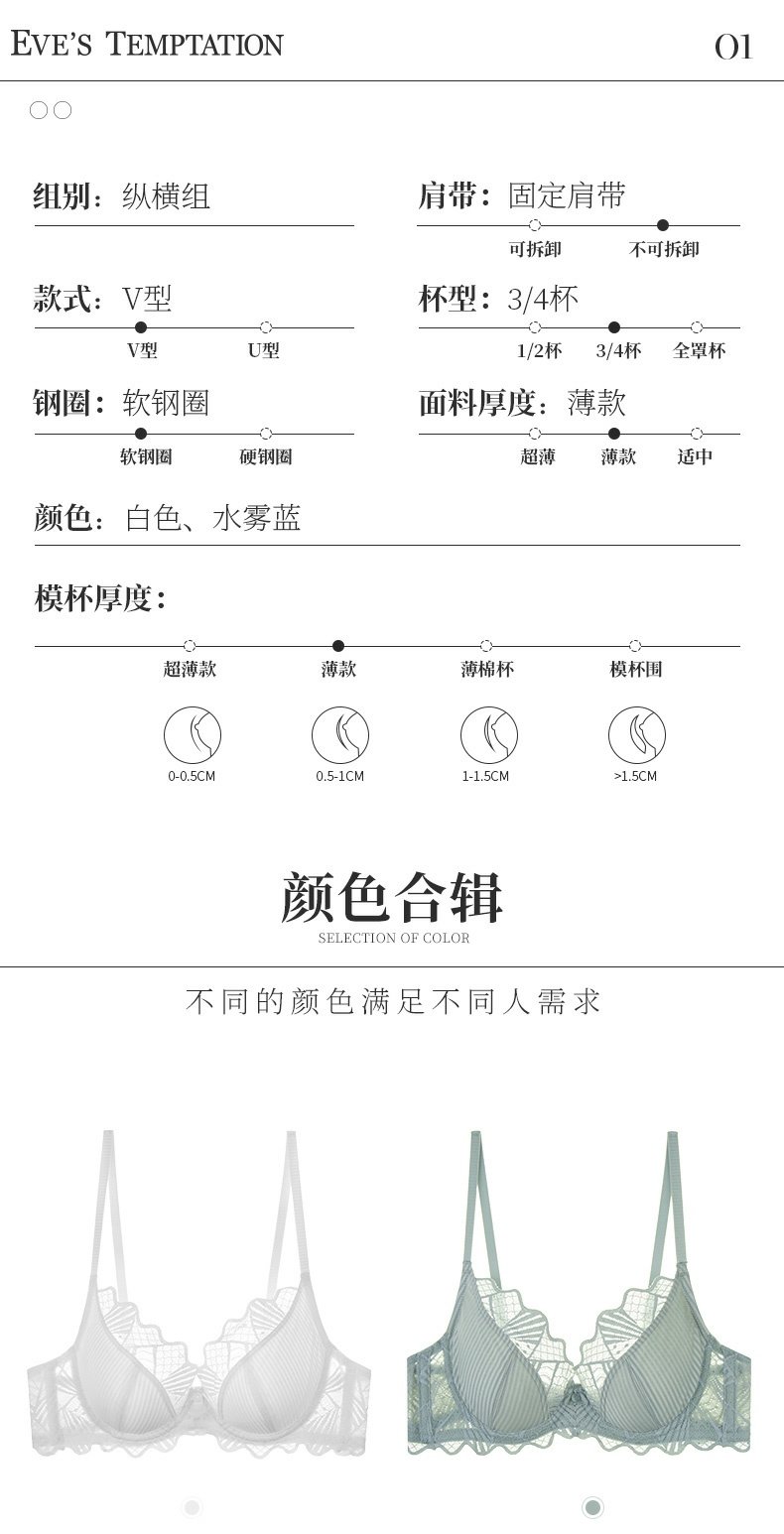 夏娃的诱惑纵横组内衣女薄款聚拢大胸显小文胸上托防下垂抗菌bra