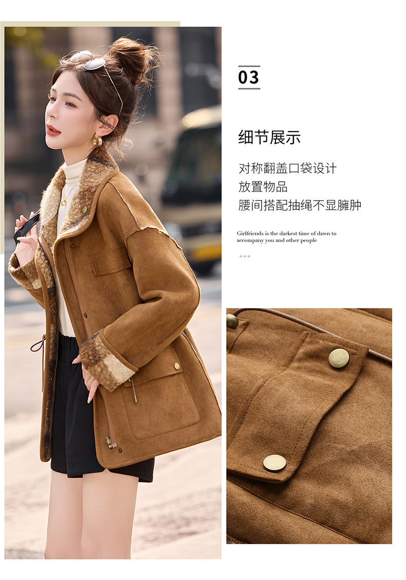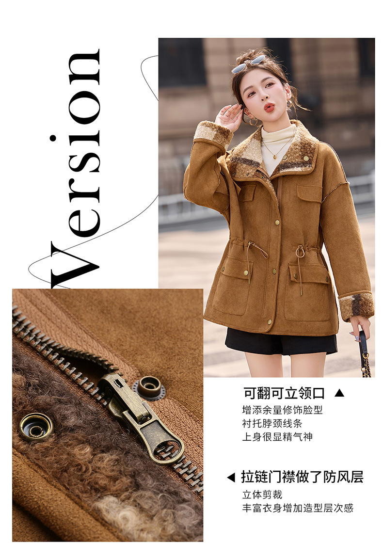 FLYBX8960 2025冬装新款女装长袖皮毛一体外套女上衣洋气小衫女