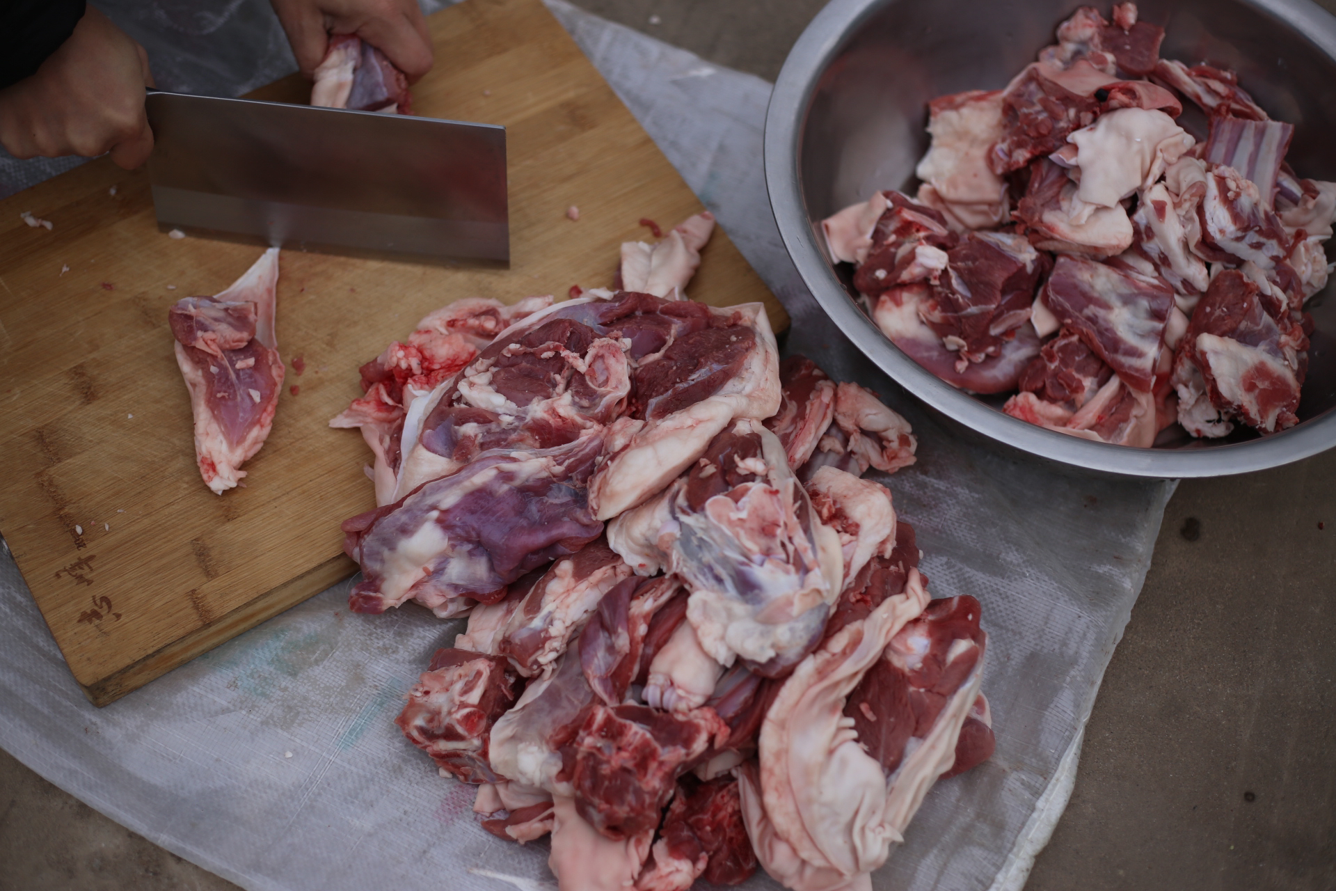 我们选的是一年的羊,肥瘦比例合适,肉质嫩,有奶香。也正直萝卜、大蒜叶的时令。萝卜焯羊肉,让羊肉带着果香,炖煮出锅前撒下一把大蒜叶,满屋子的香气,没有复杂的大料调味,就是唇齿间感受羊肉的肉质。
