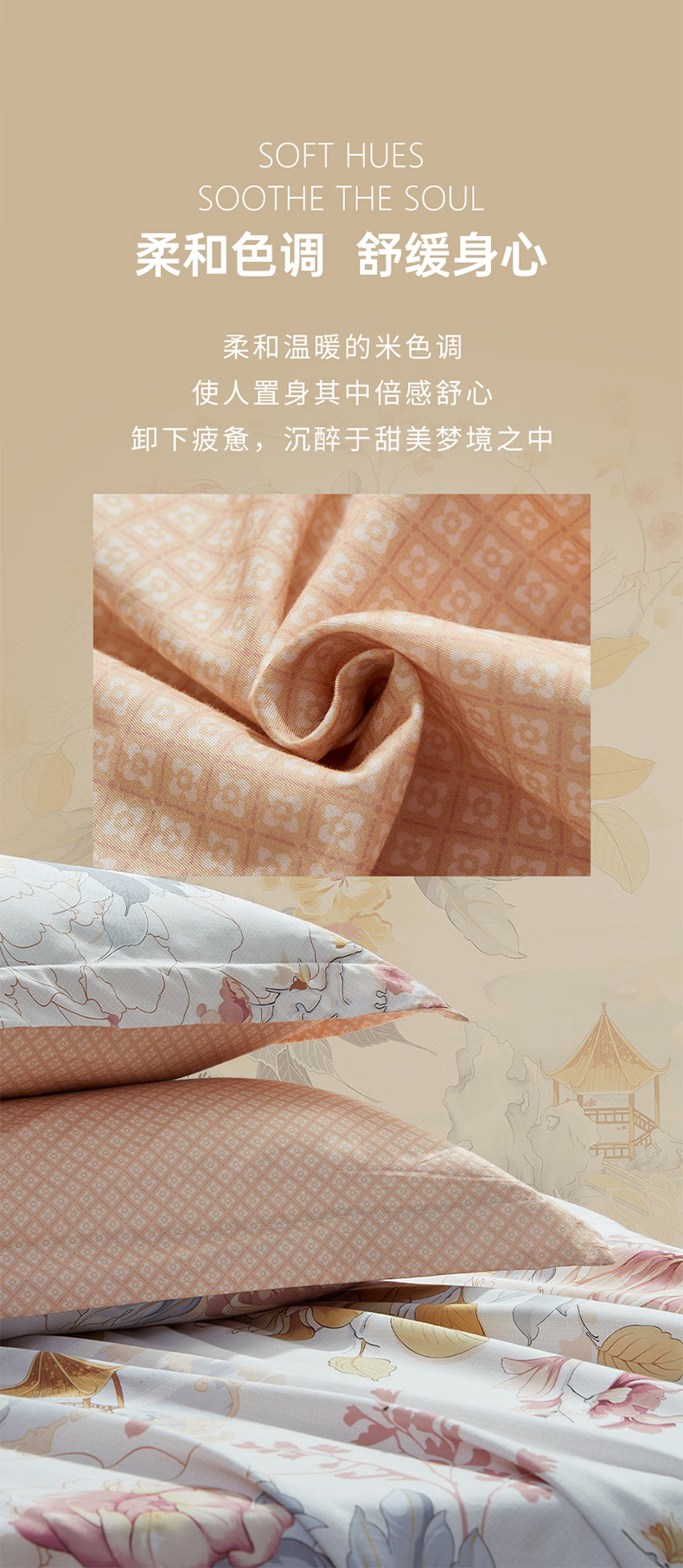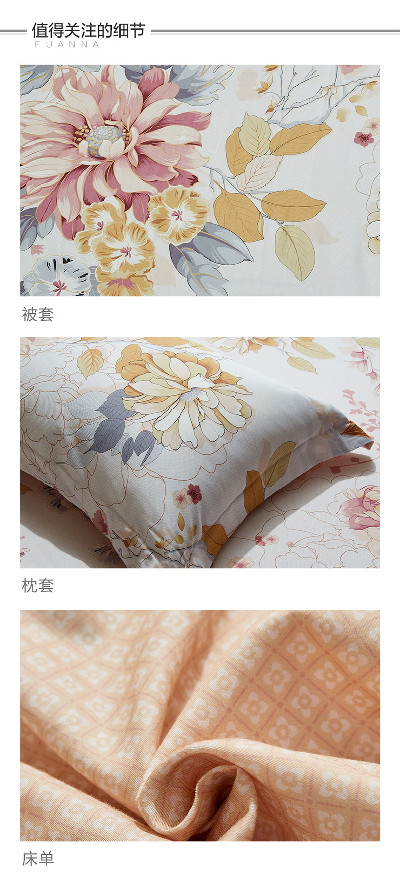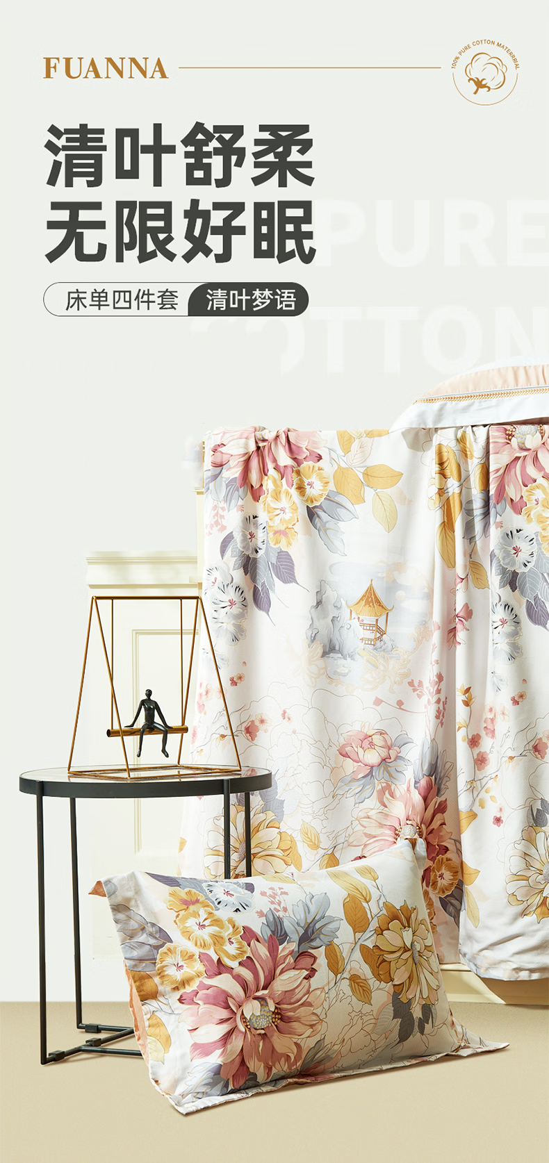 【彤橙】富安娜(FUANNA) 纯棉四件套-清叶梦语