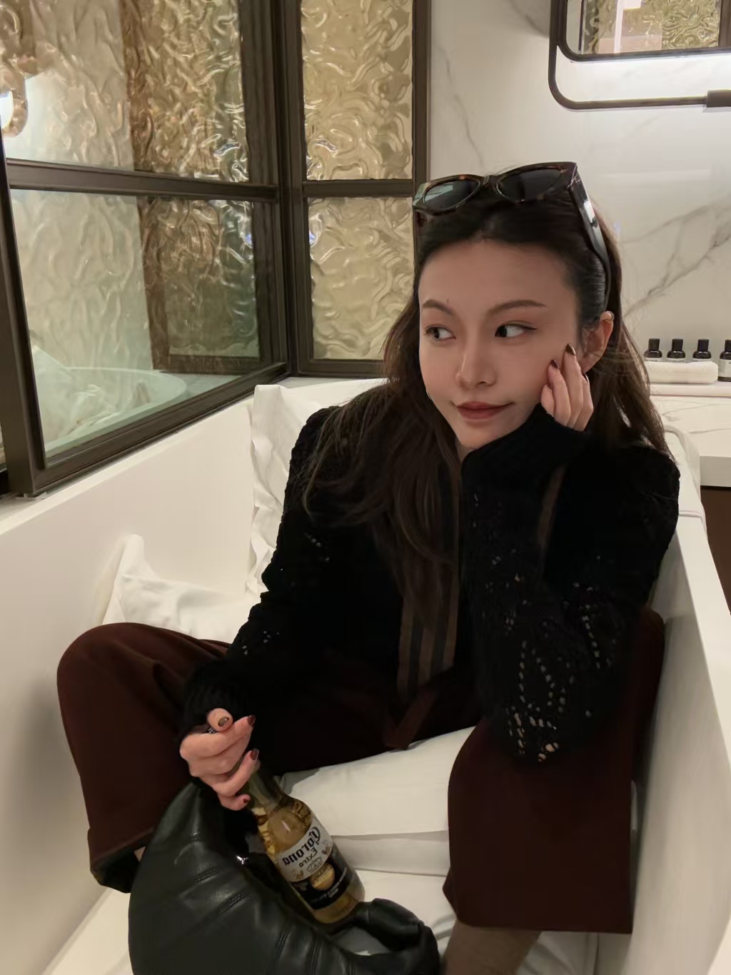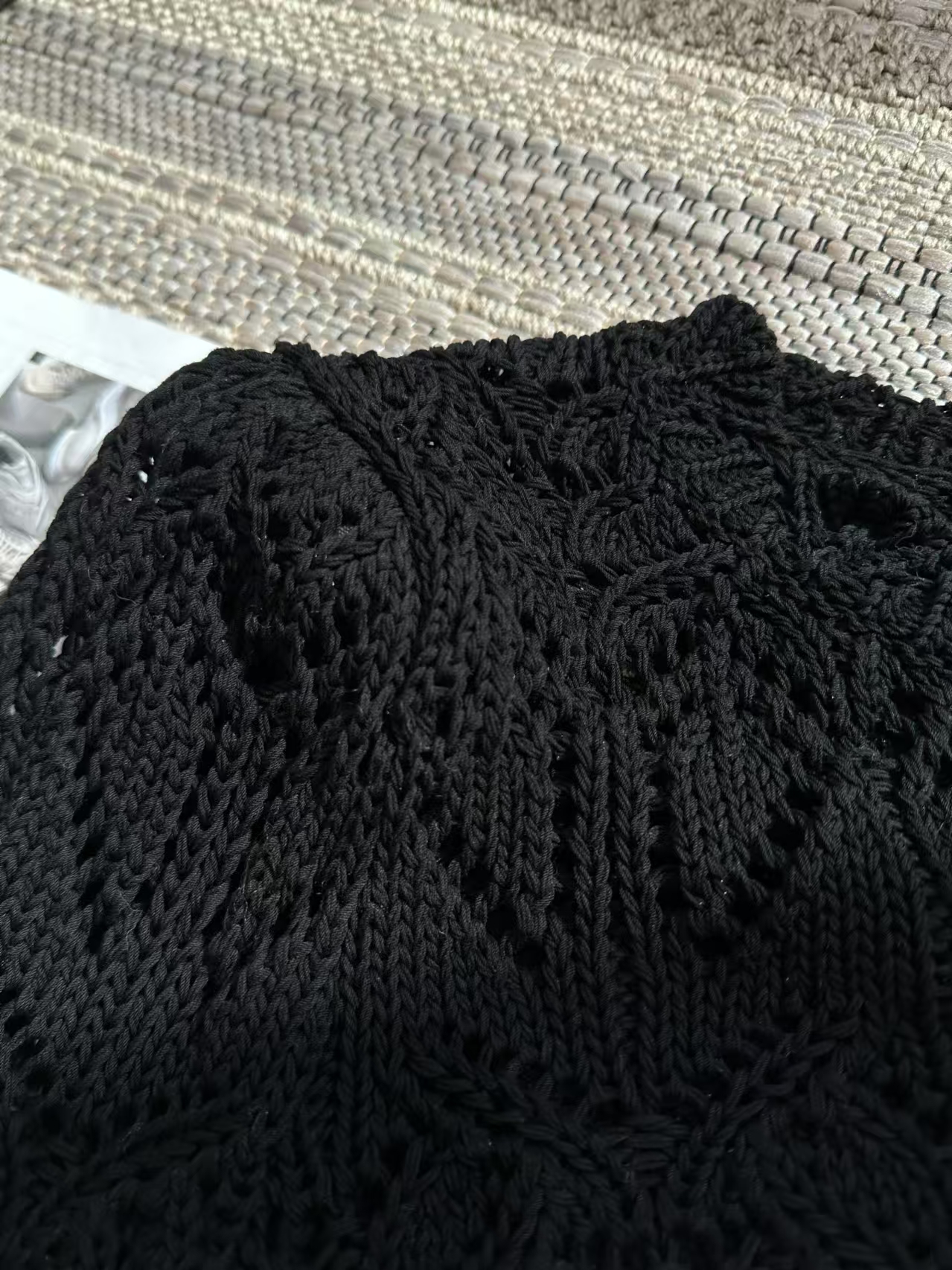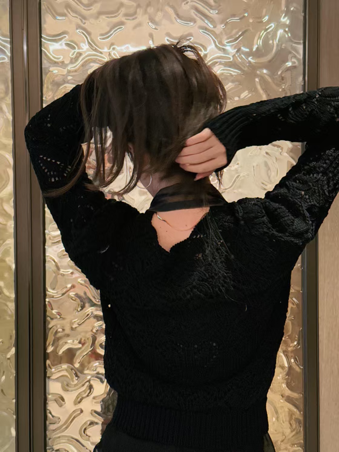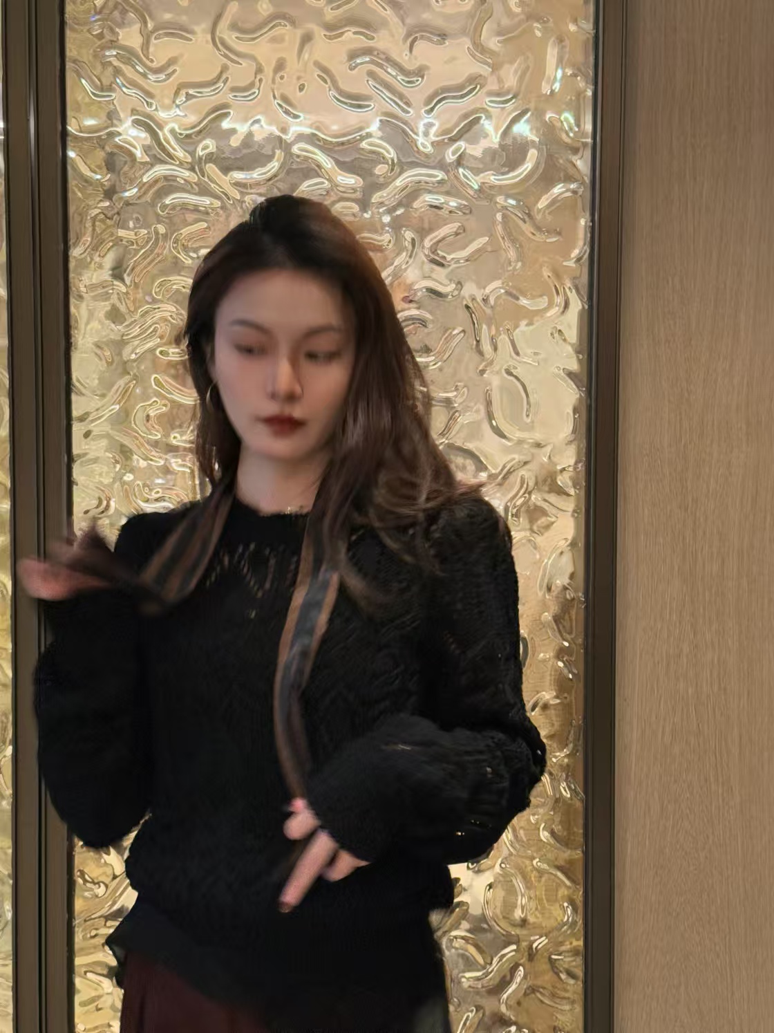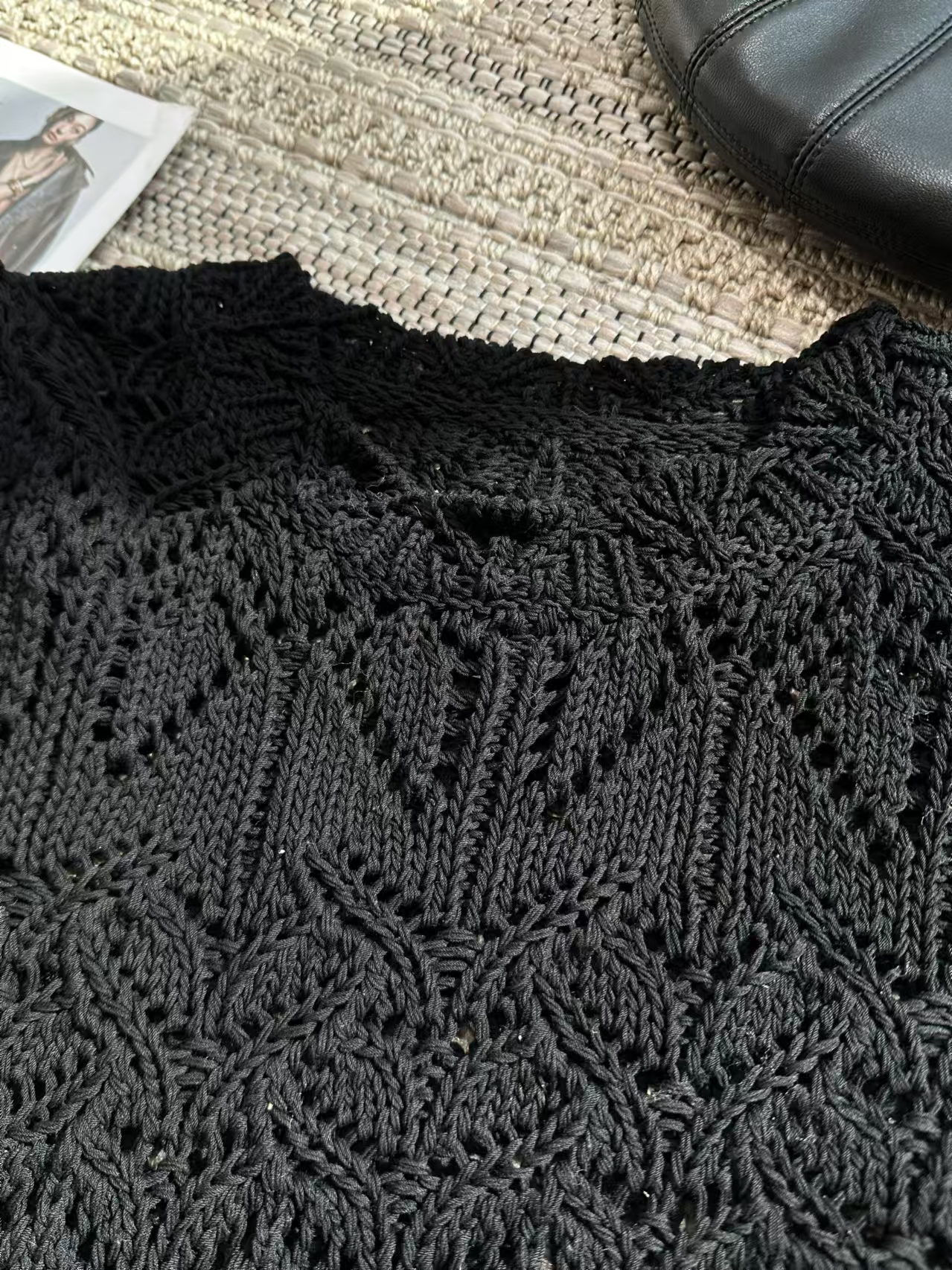 顺丰包邮35256洛诗琳法式优雅黑带垫肩镂空高捻棉勾花上衣162022