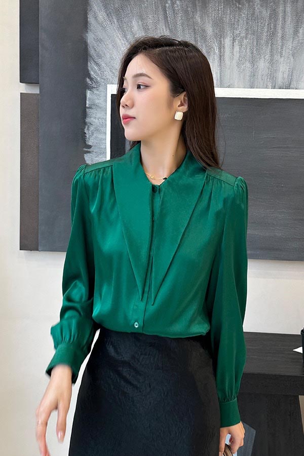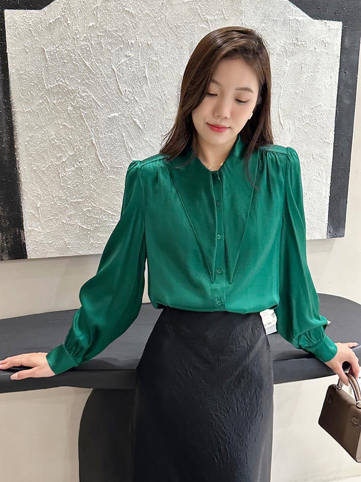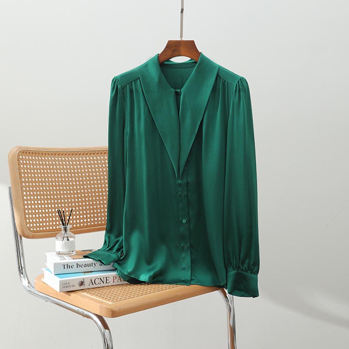 洛诗琳45321春夏新款设计感绑带式纯色真丝领结衬衫女22255
