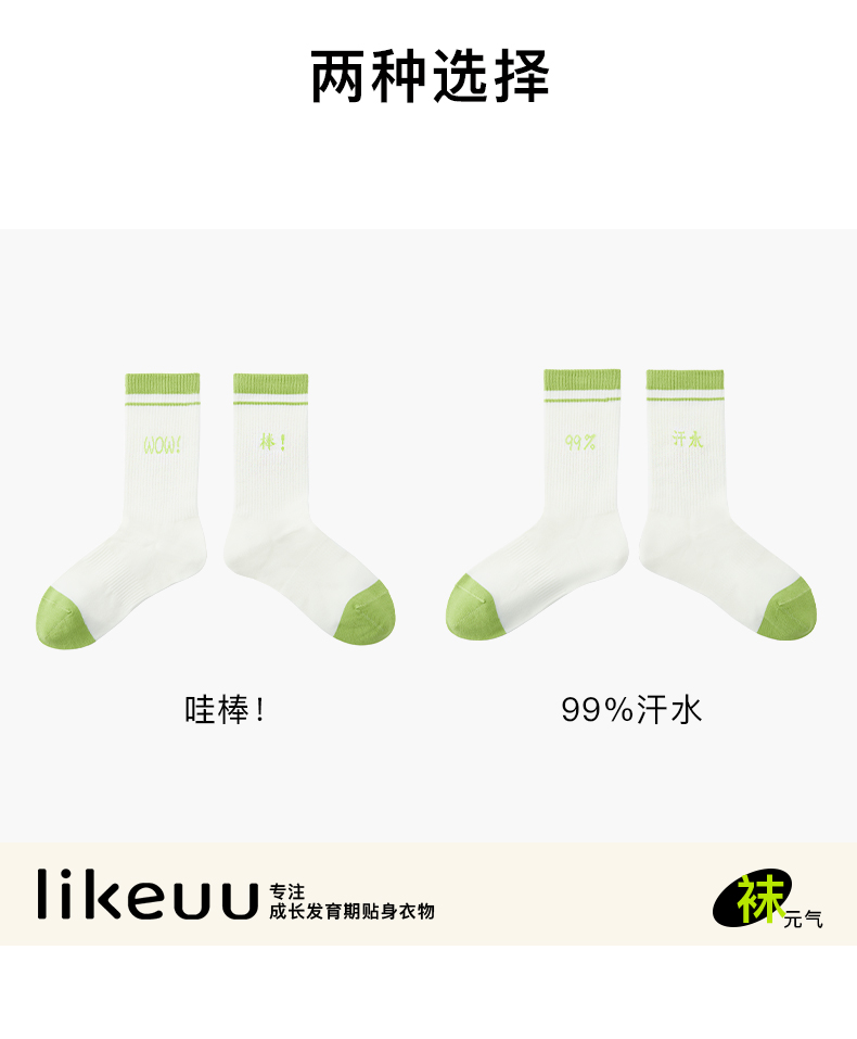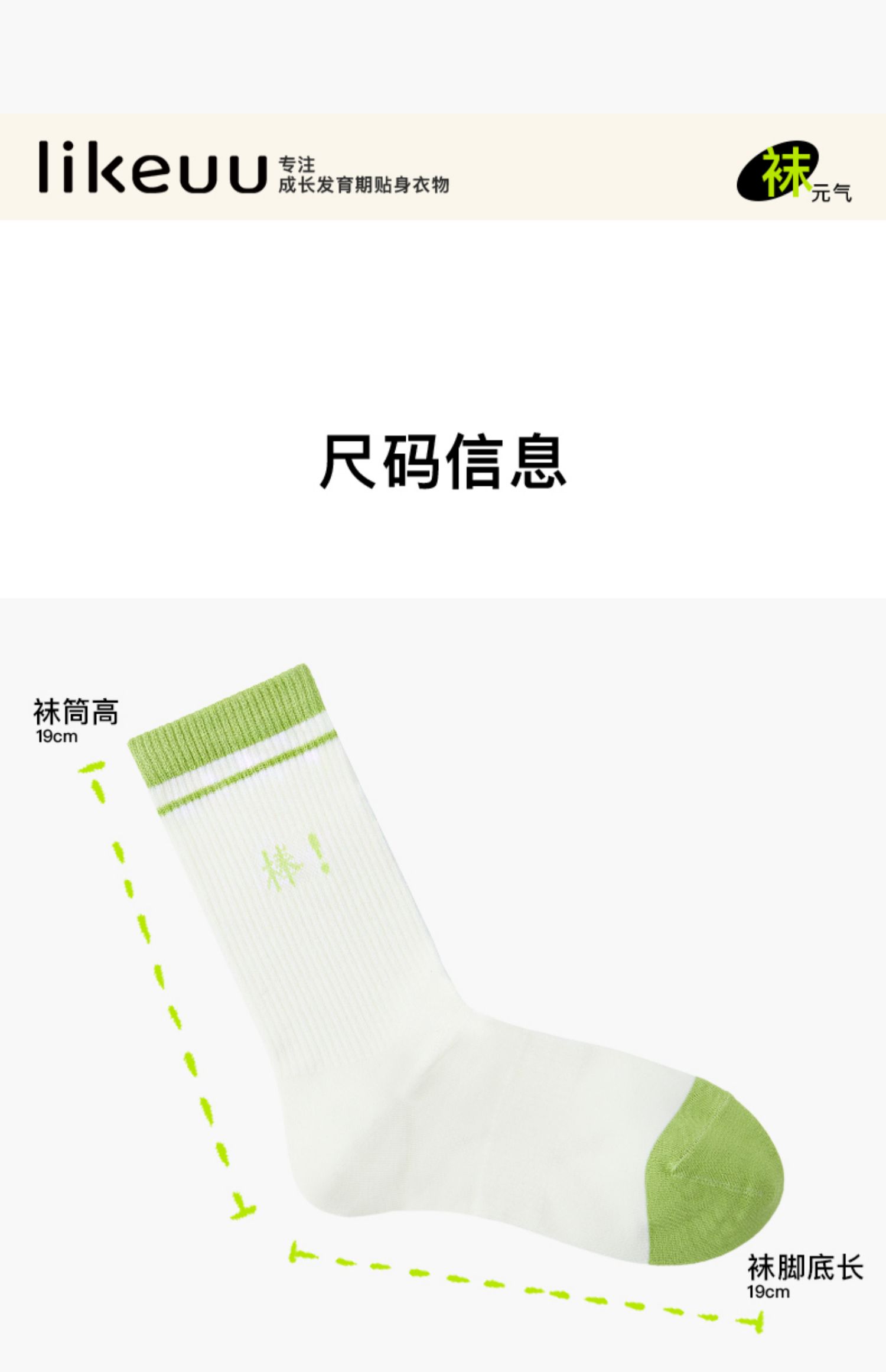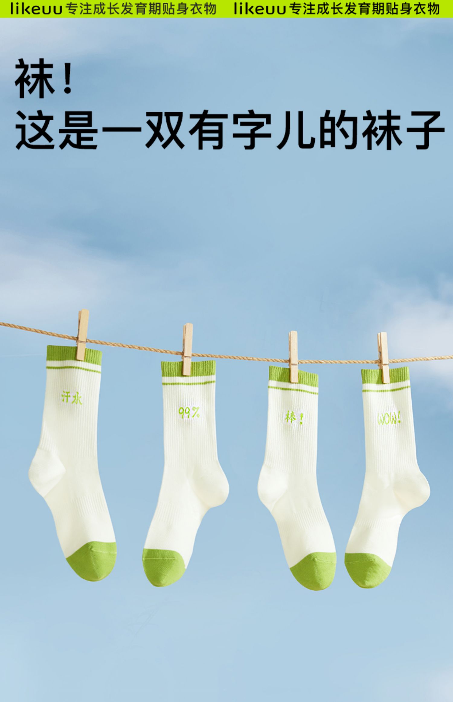 likeuu文字梗男女童运动袜子夏季透气儿童学生趣味中筒袜 34-38码