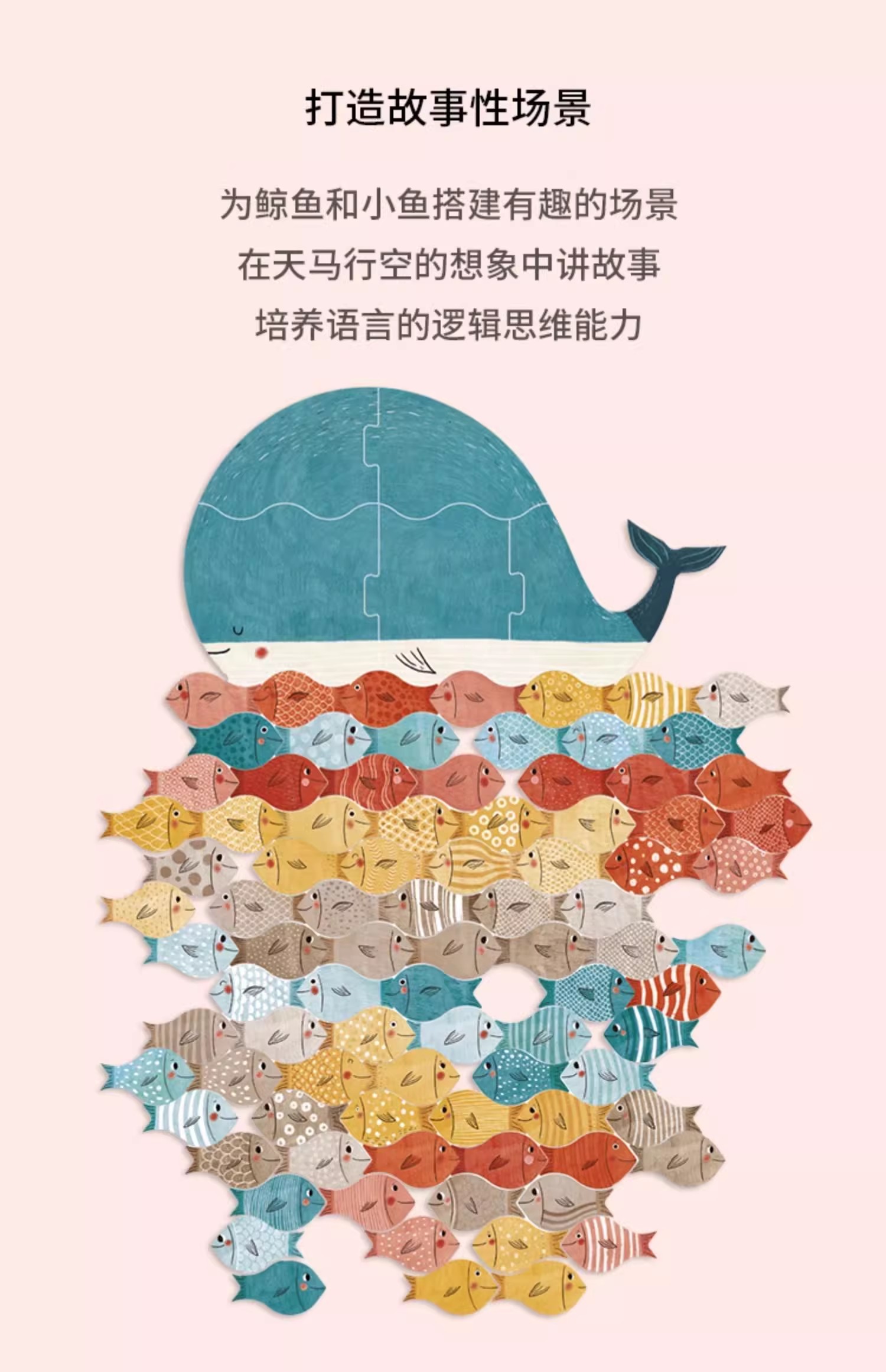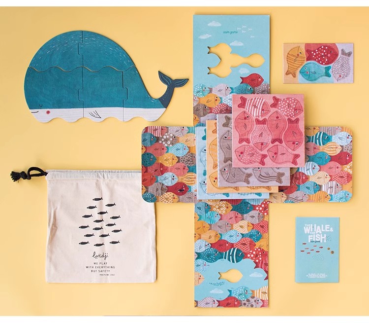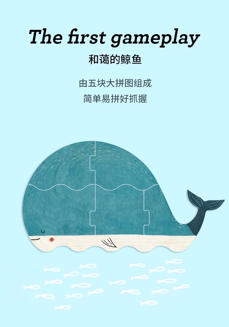 londji儿童进口拼图桌游鲸鱼和小鱼儿童益智拼图