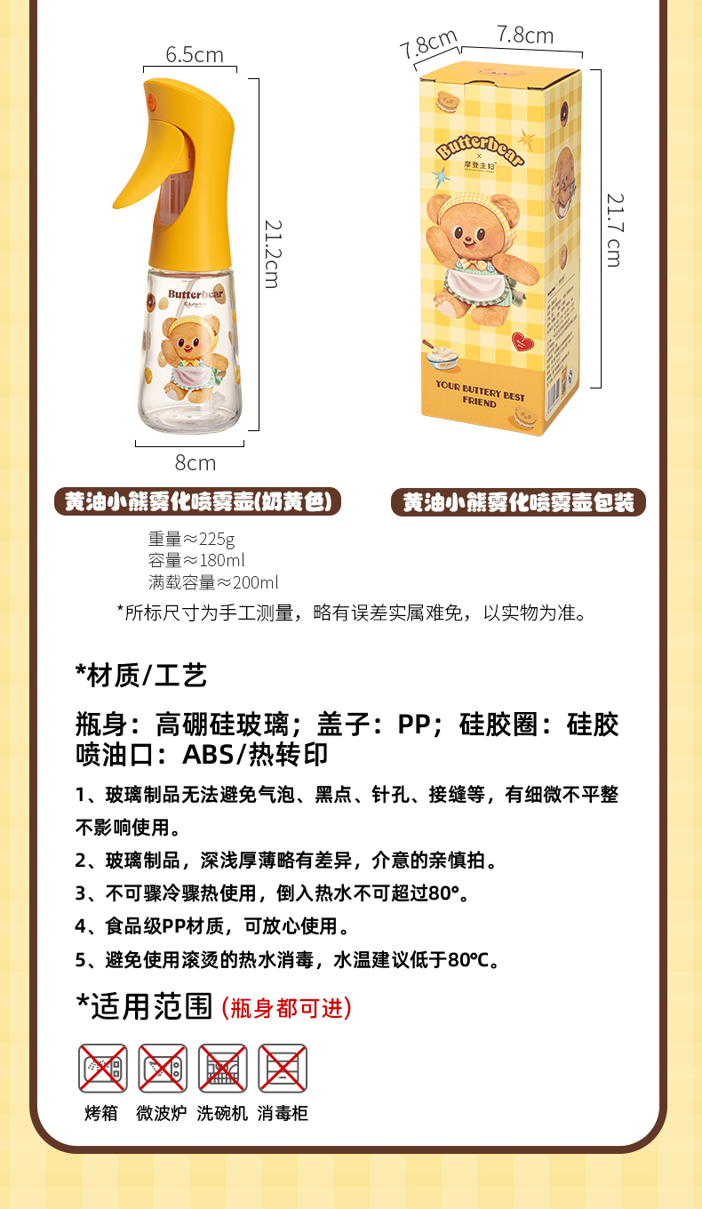 【厨具上新】中国摩登主妇&黄油小熊雾化喷雾壶奶黄色 200ml
