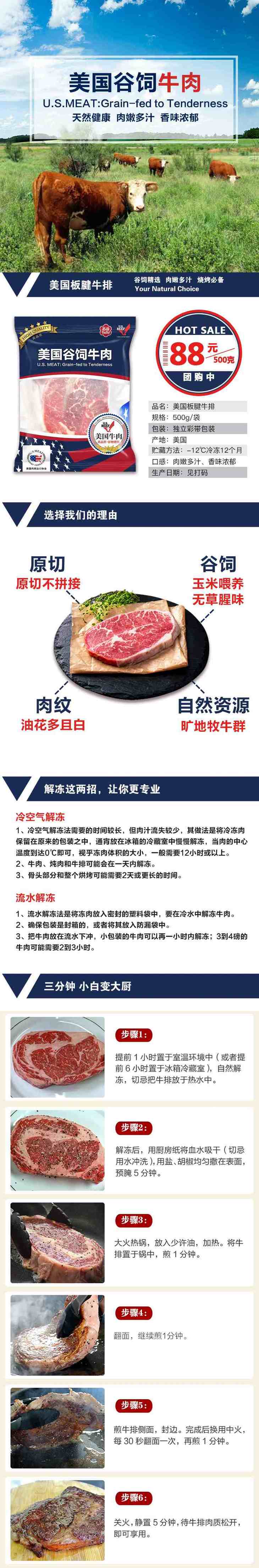 美国谷饲板腱牛排500g【021】