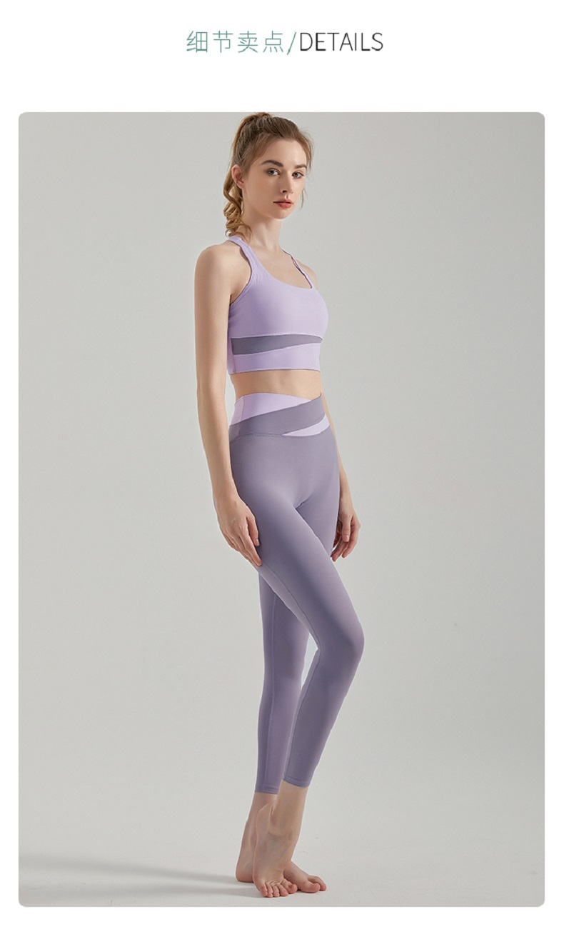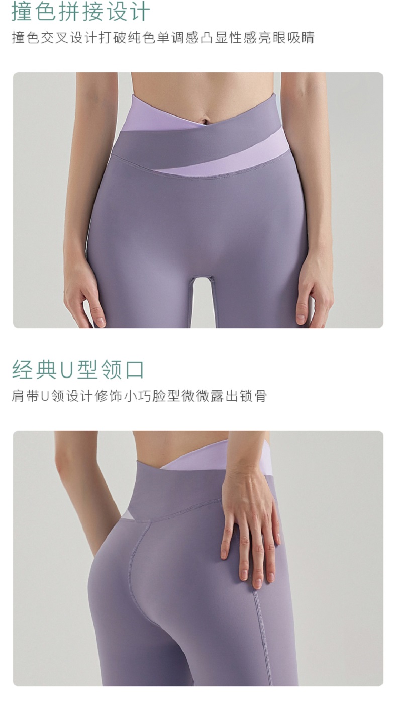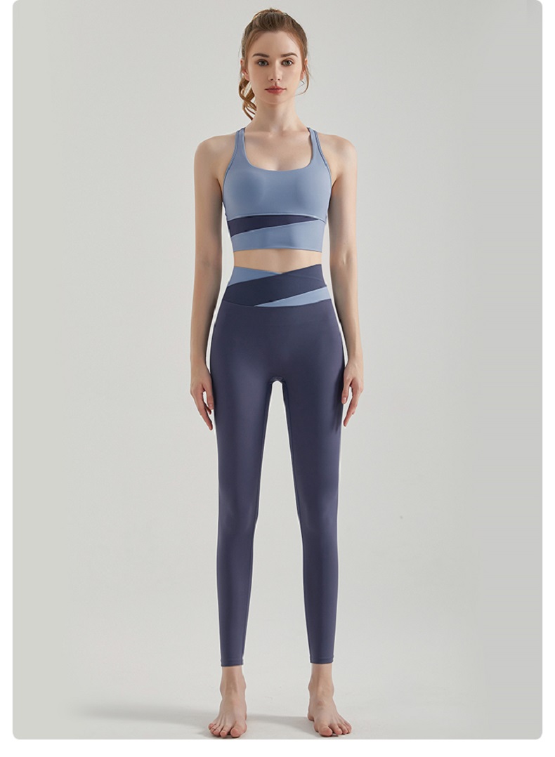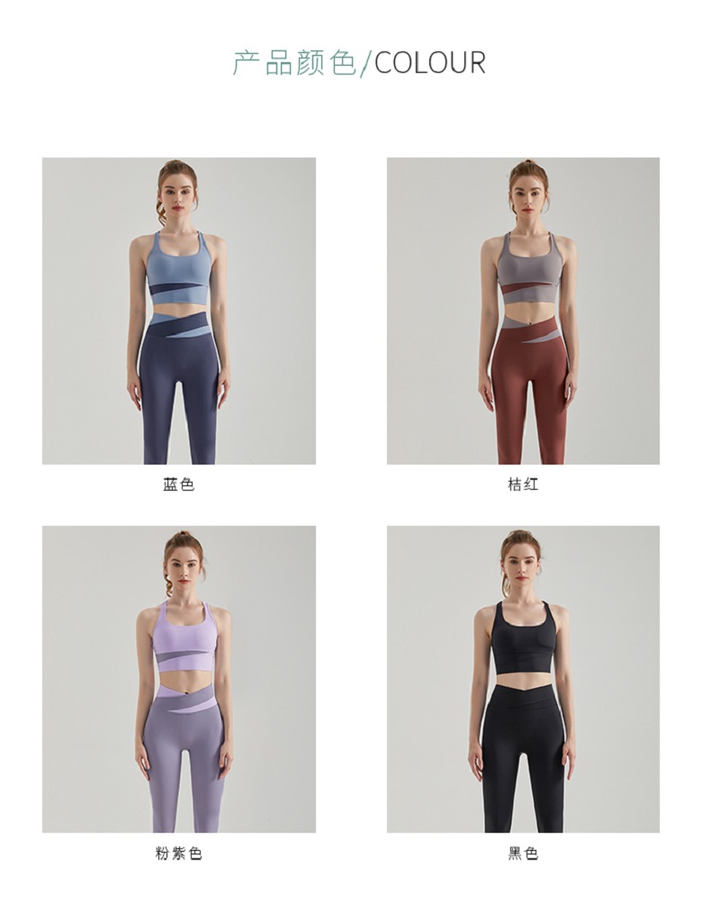 【运动必备】【高弹防震,藏肉显瘦】春夏新款女拼色交叉撞色高腰提臀显瘦运动套装
