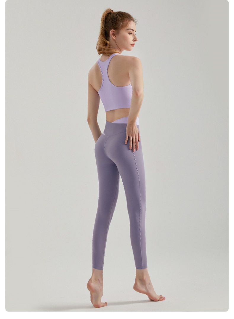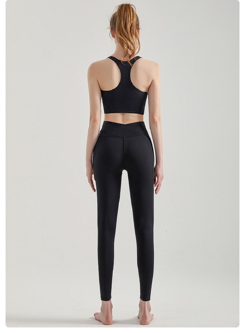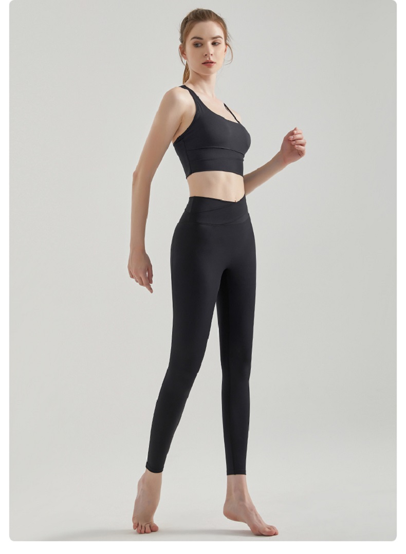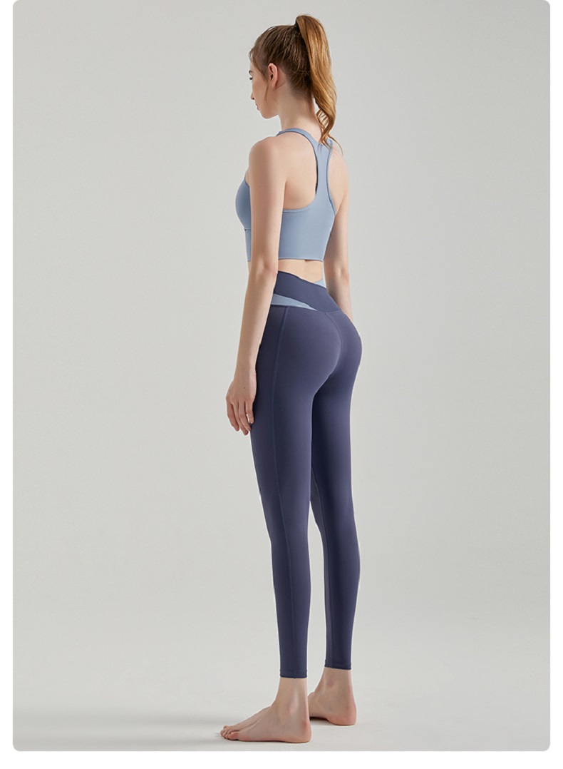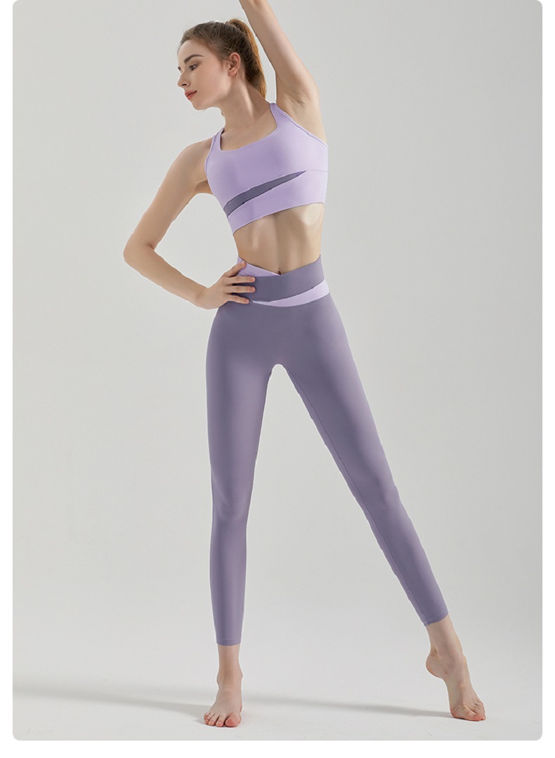 【运动必备】【高弹防震,藏肉显瘦】春夏新款女拼色交叉撞色高腰提臀显瘦运动套装