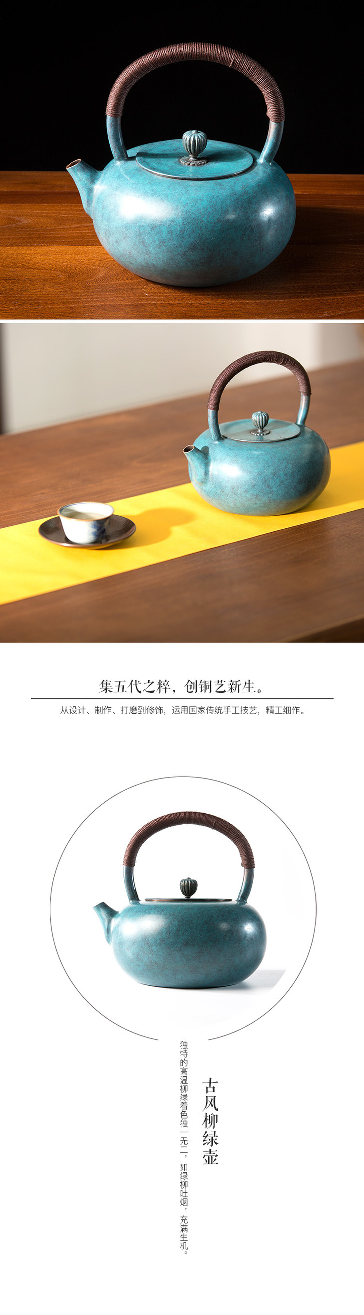 朱炳仁铜 古风柳绿壶 茶壶铜工艺品装饰品茶具