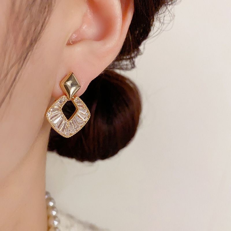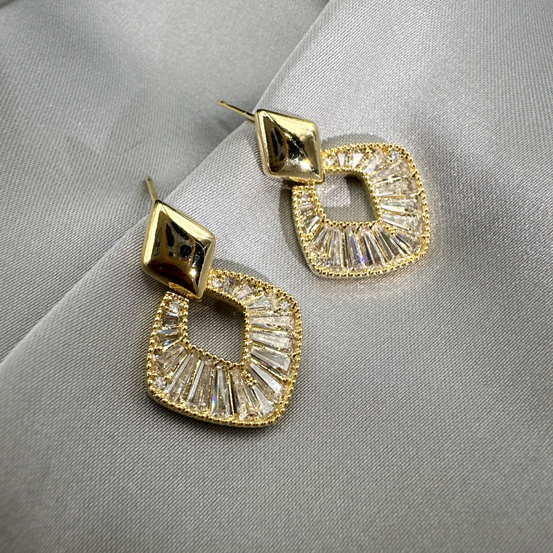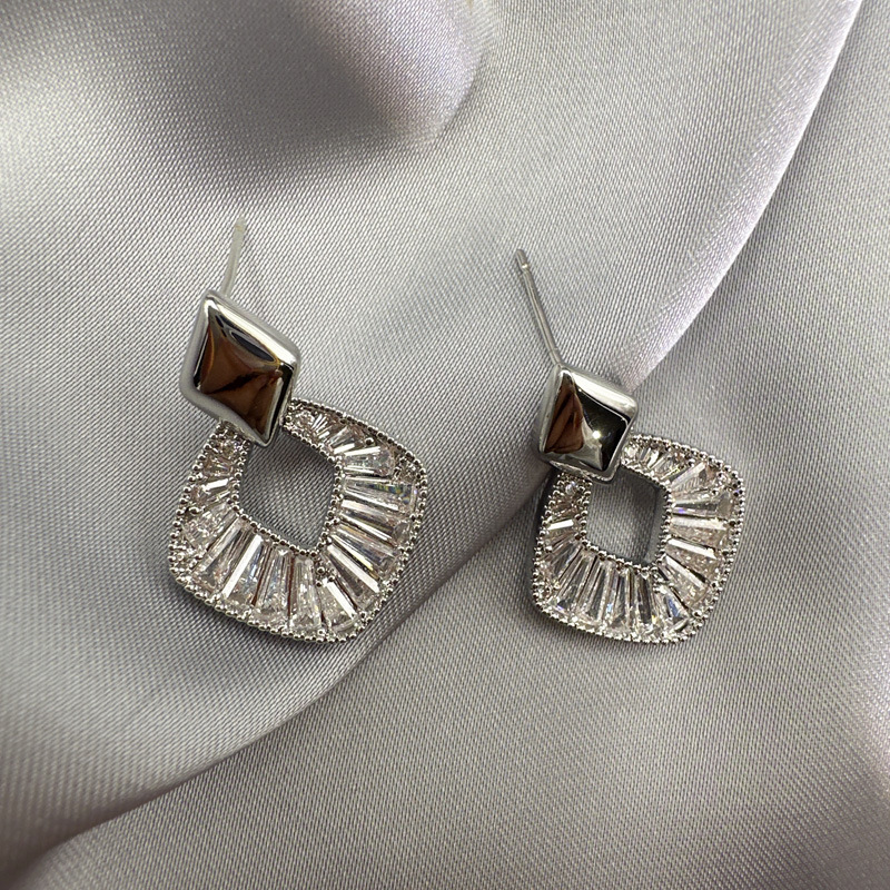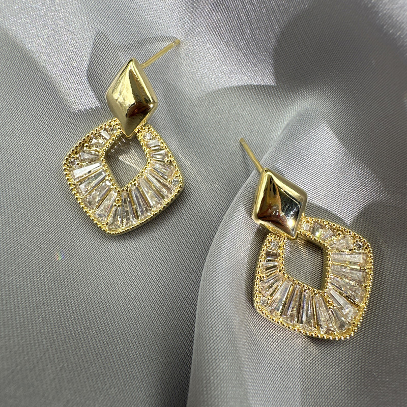 丁摩 锆石几何菱形银针耳钉女百搭高级感耳饰耳环5ZF-771