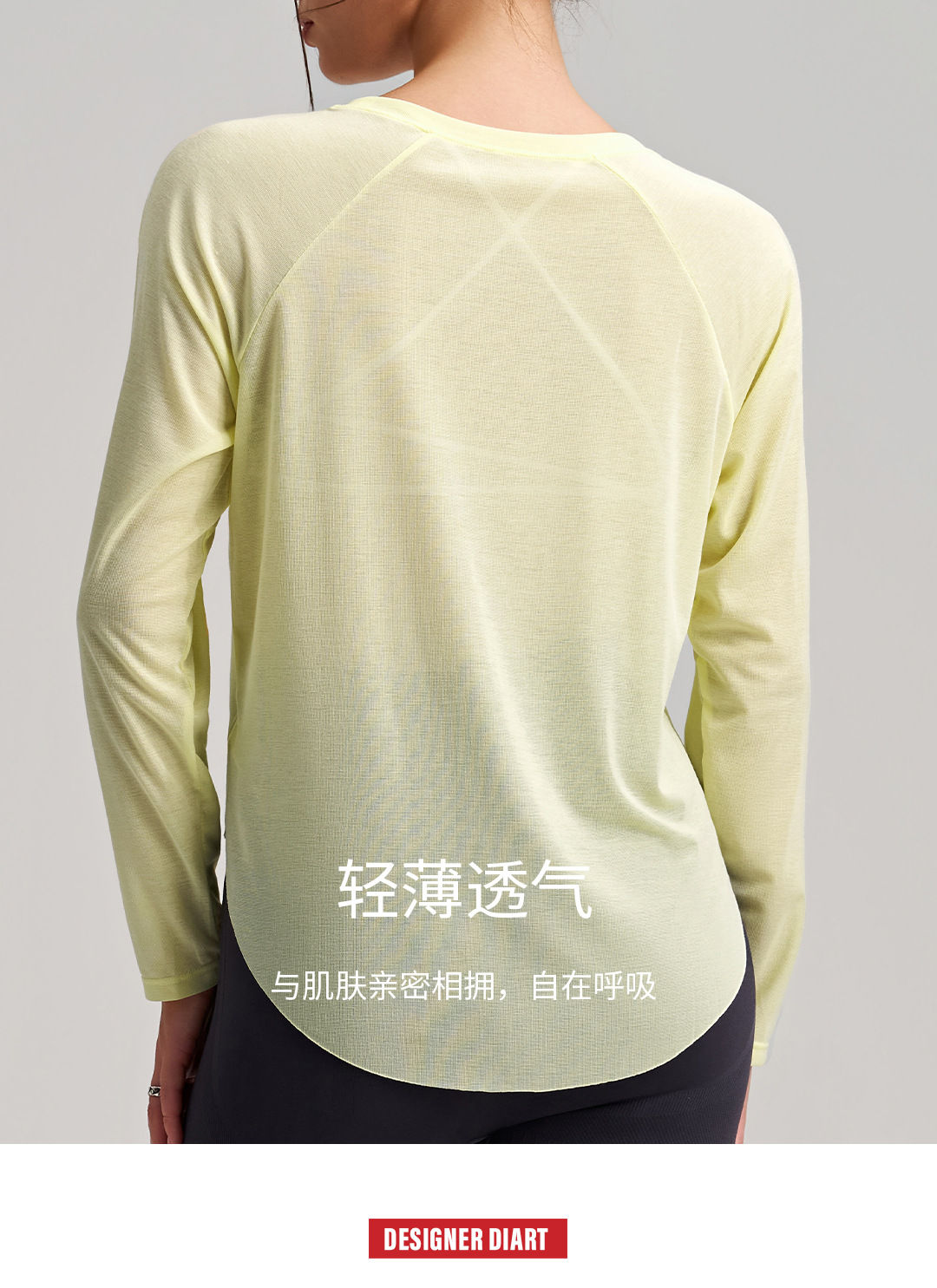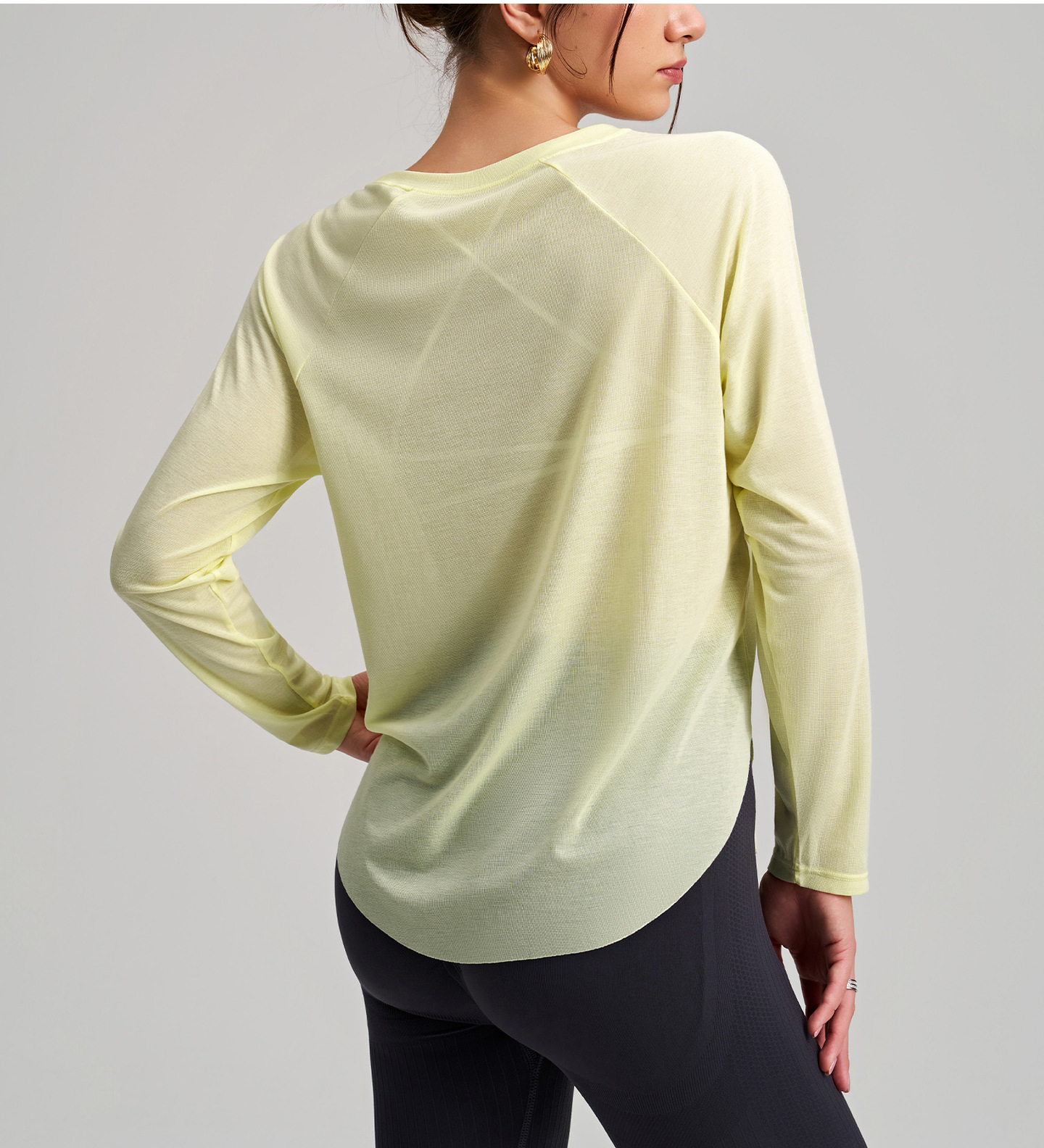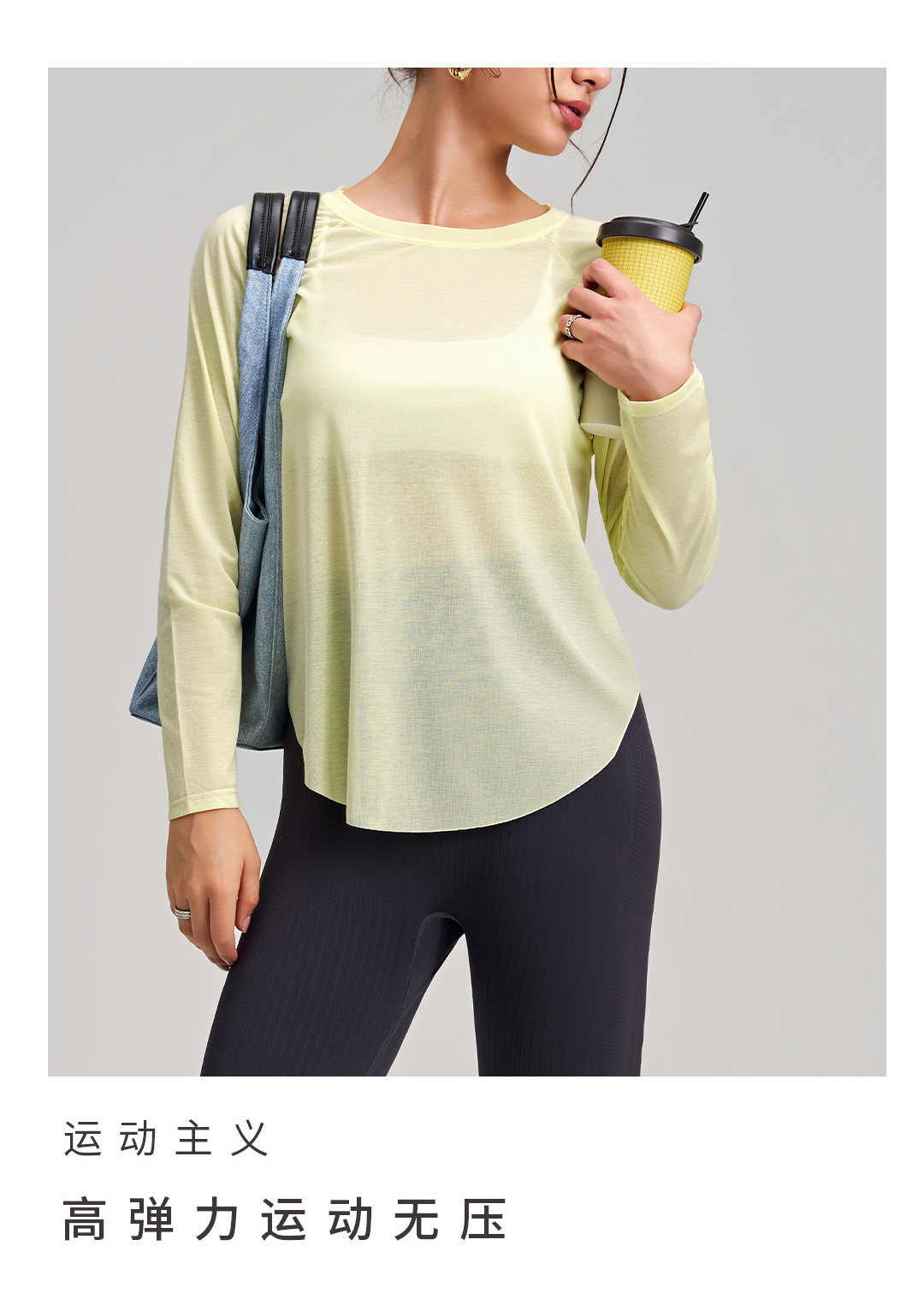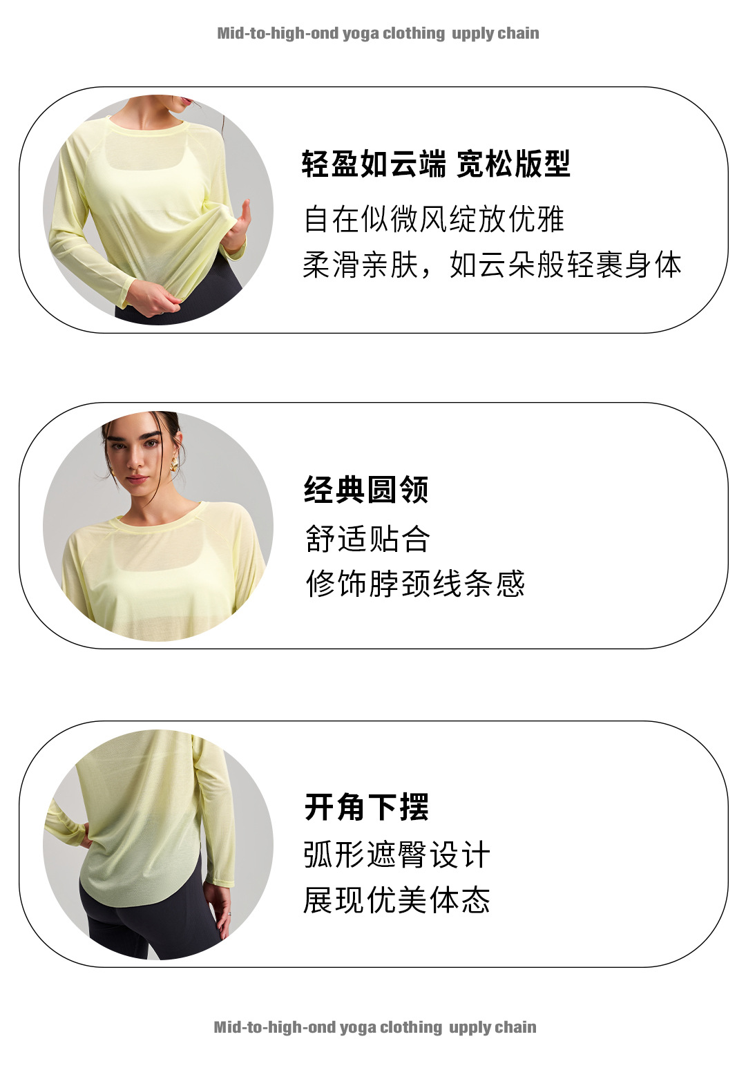 跃牌【安琪拉系列】竹节纱瑜伽罩衫女长袖圆领运动上衣宽松显瘦健身休闲速干罩衫CX-5018