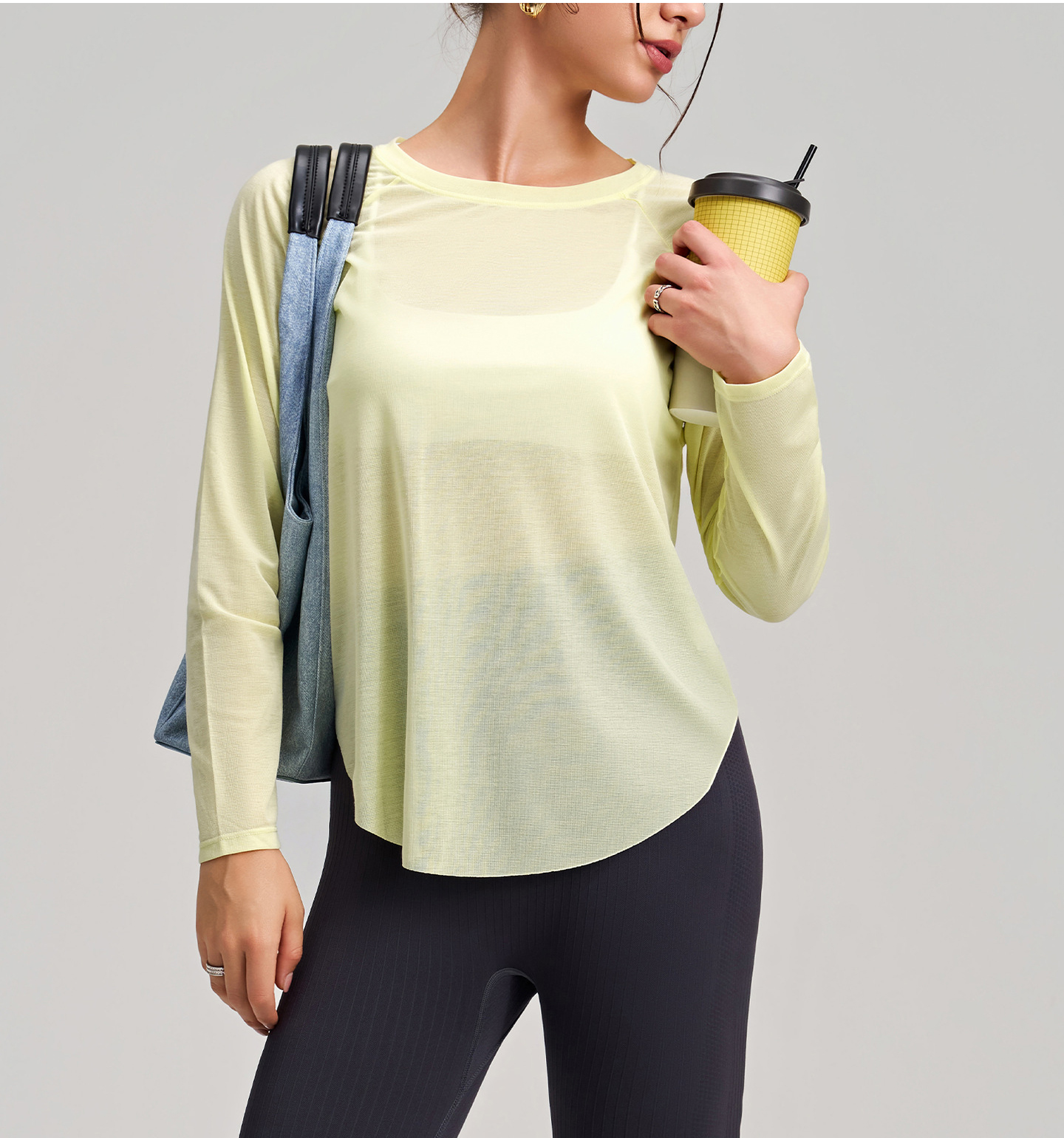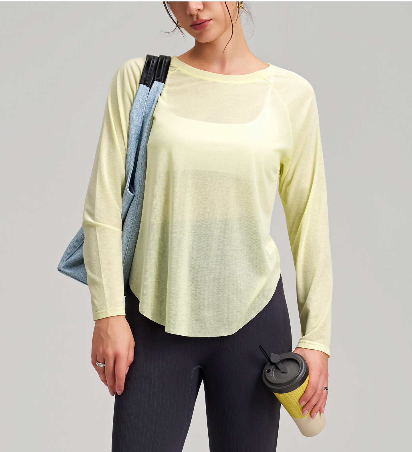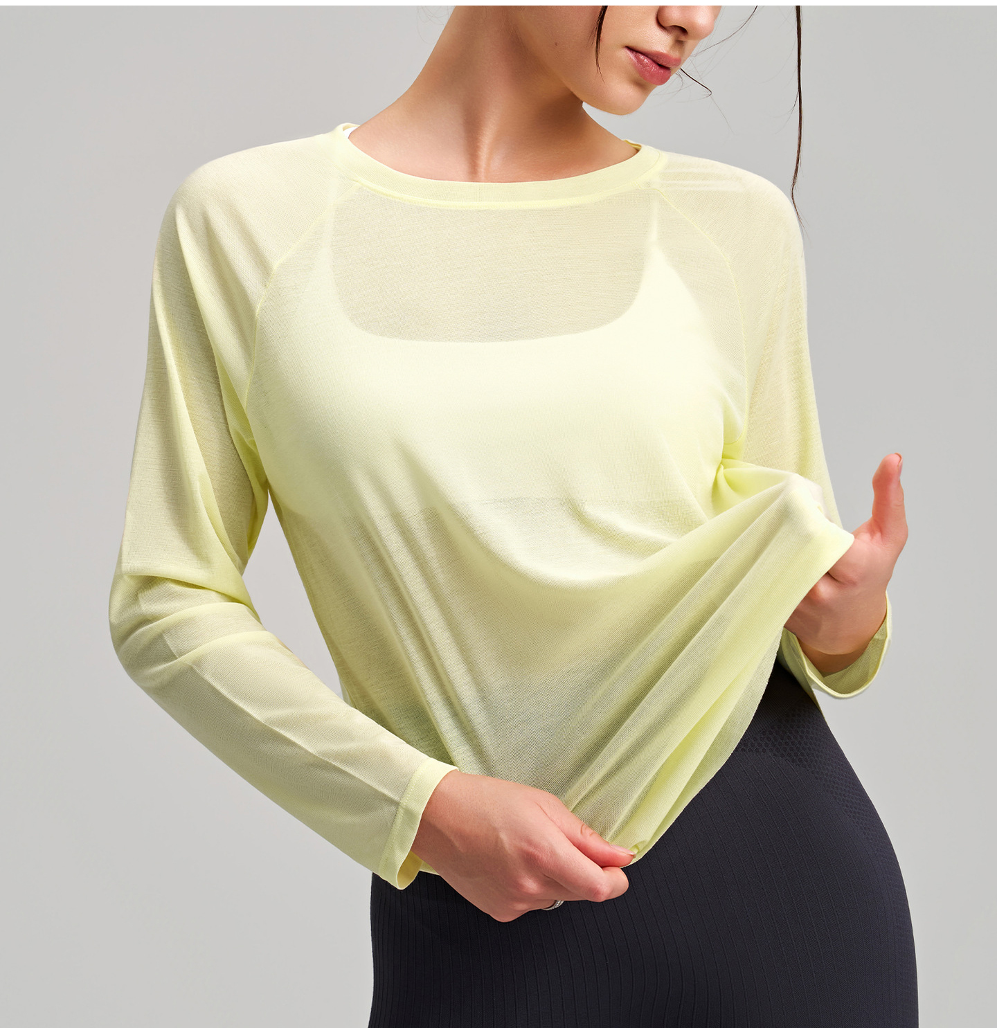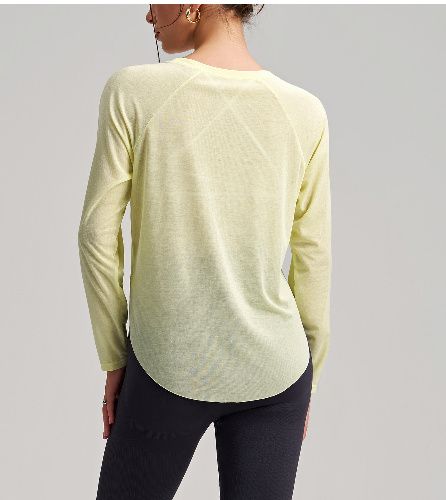 跃牌【安琪拉系列】竹节纱瑜伽罩衫女长袖圆领运动上衣宽松显瘦健身休闲速干罩衫CX-5018
