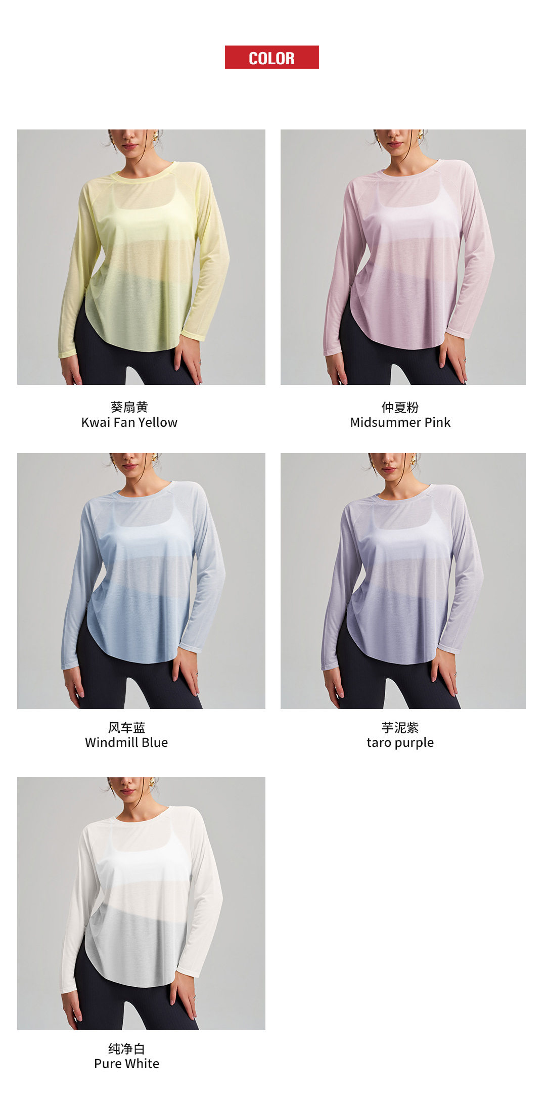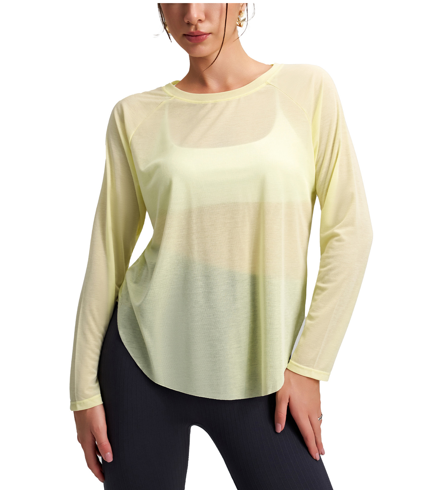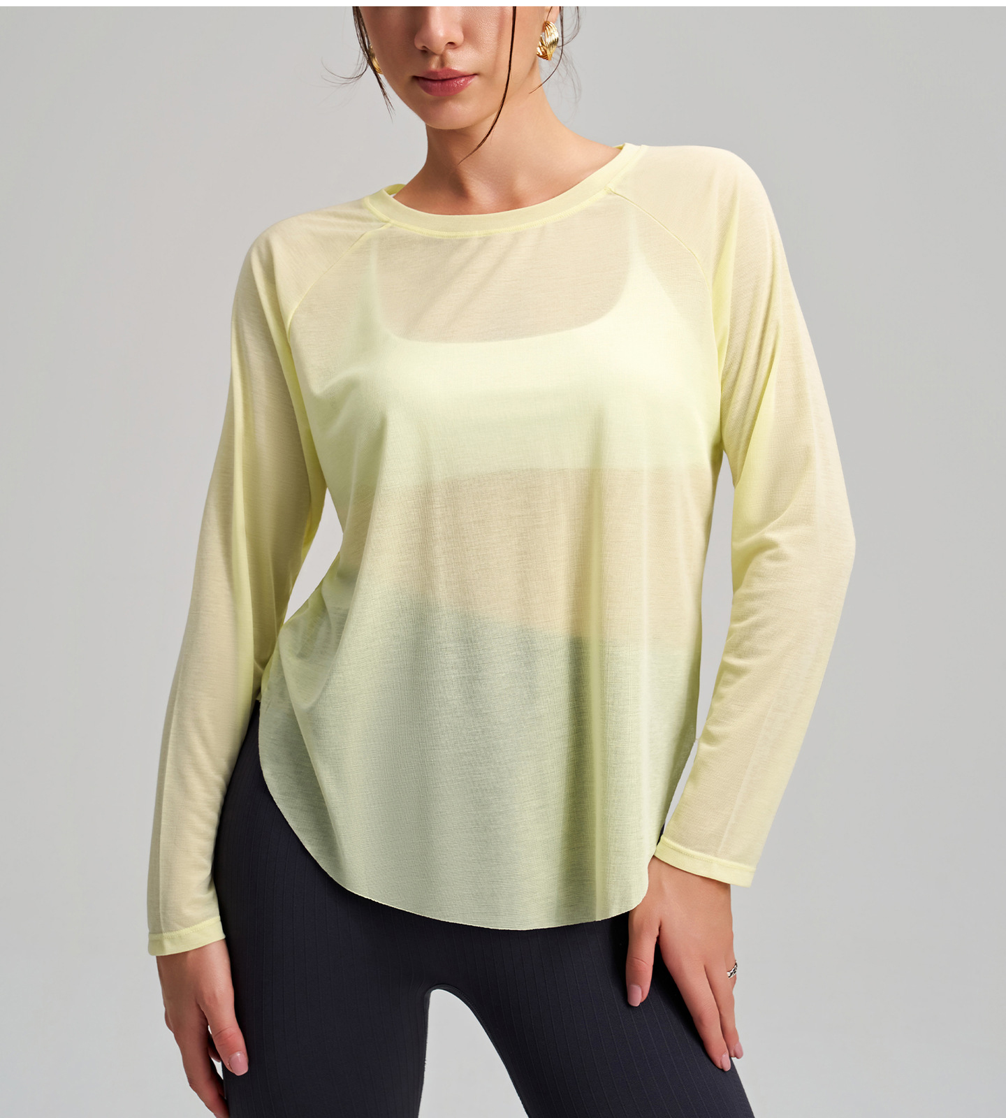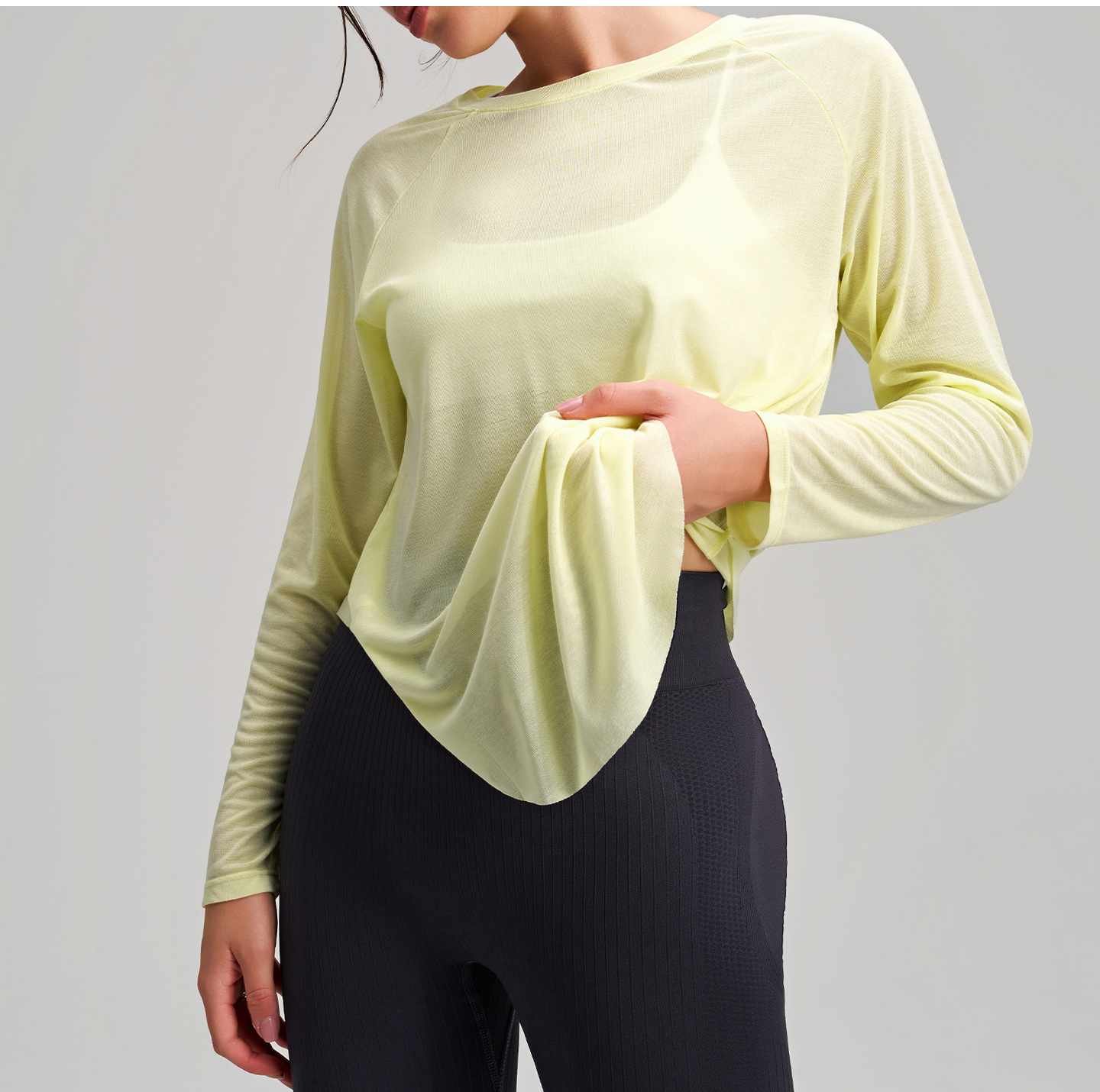 跃牌【安琪拉系列】竹节纱瑜伽罩衫女长袖圆领运动上衣宽松显瘦健身休闲速干罩衫CX-5018