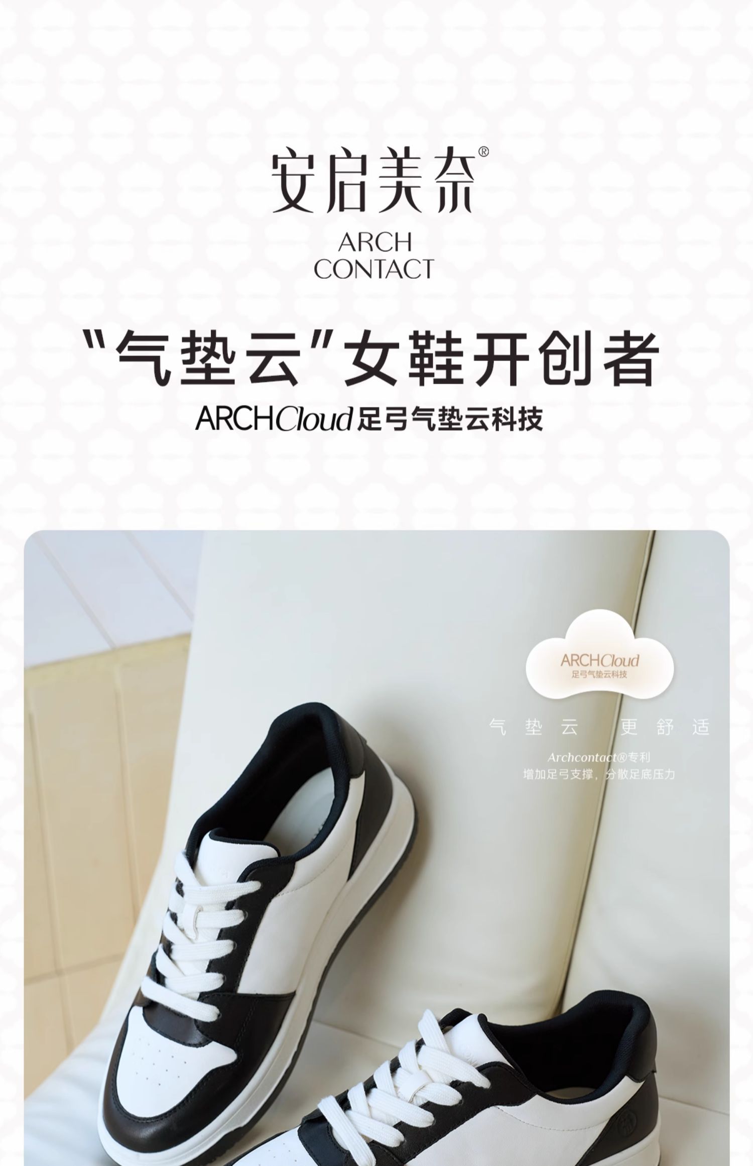 牛皮厚底鞋 | ARCHCONTACT安启美奈 气垫云黑白熊猫撞色 休闲通勤53024