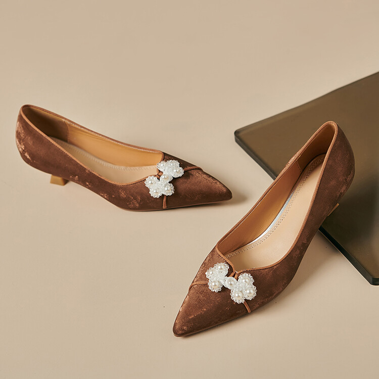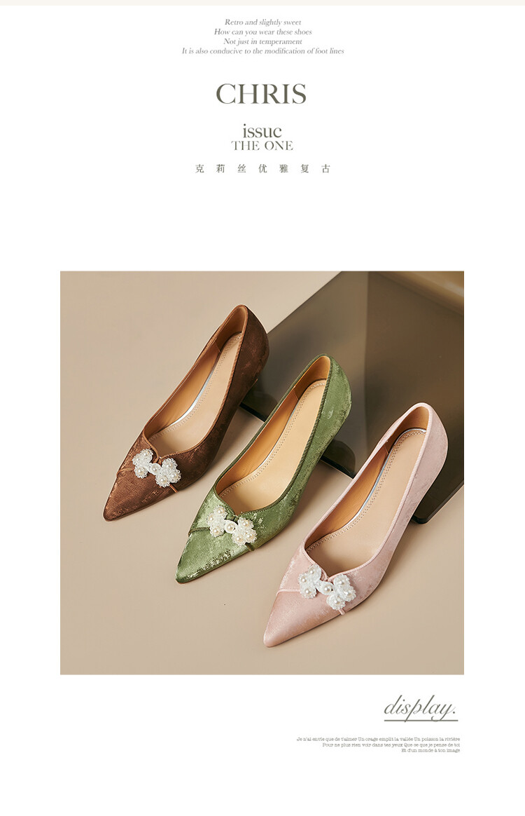 【预售5天】新中式盘扣细跟高跟鞋尖头珍珠花国风单鞋搭旗袍气质女鞋YS&YSD4158
