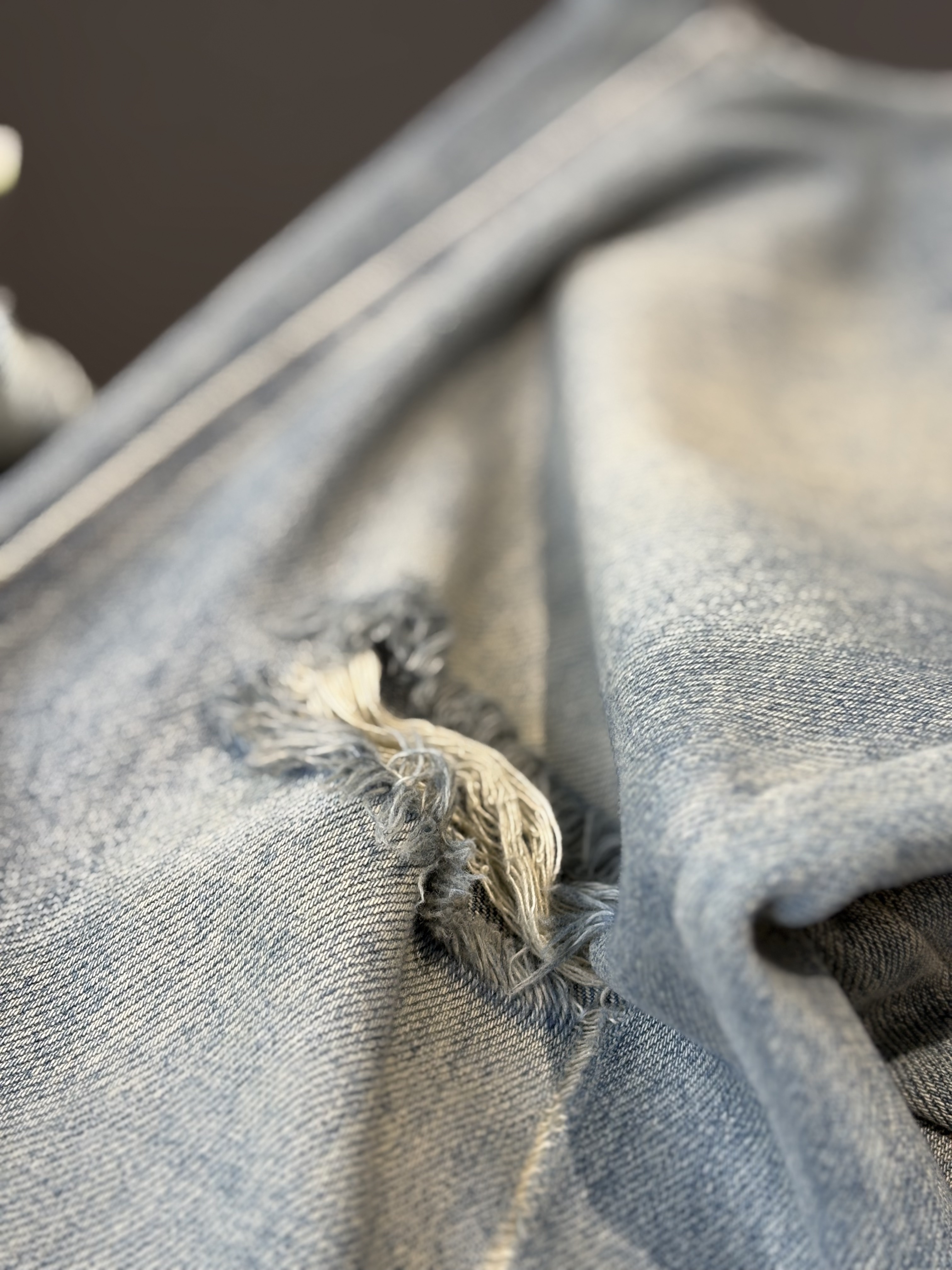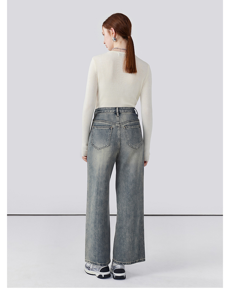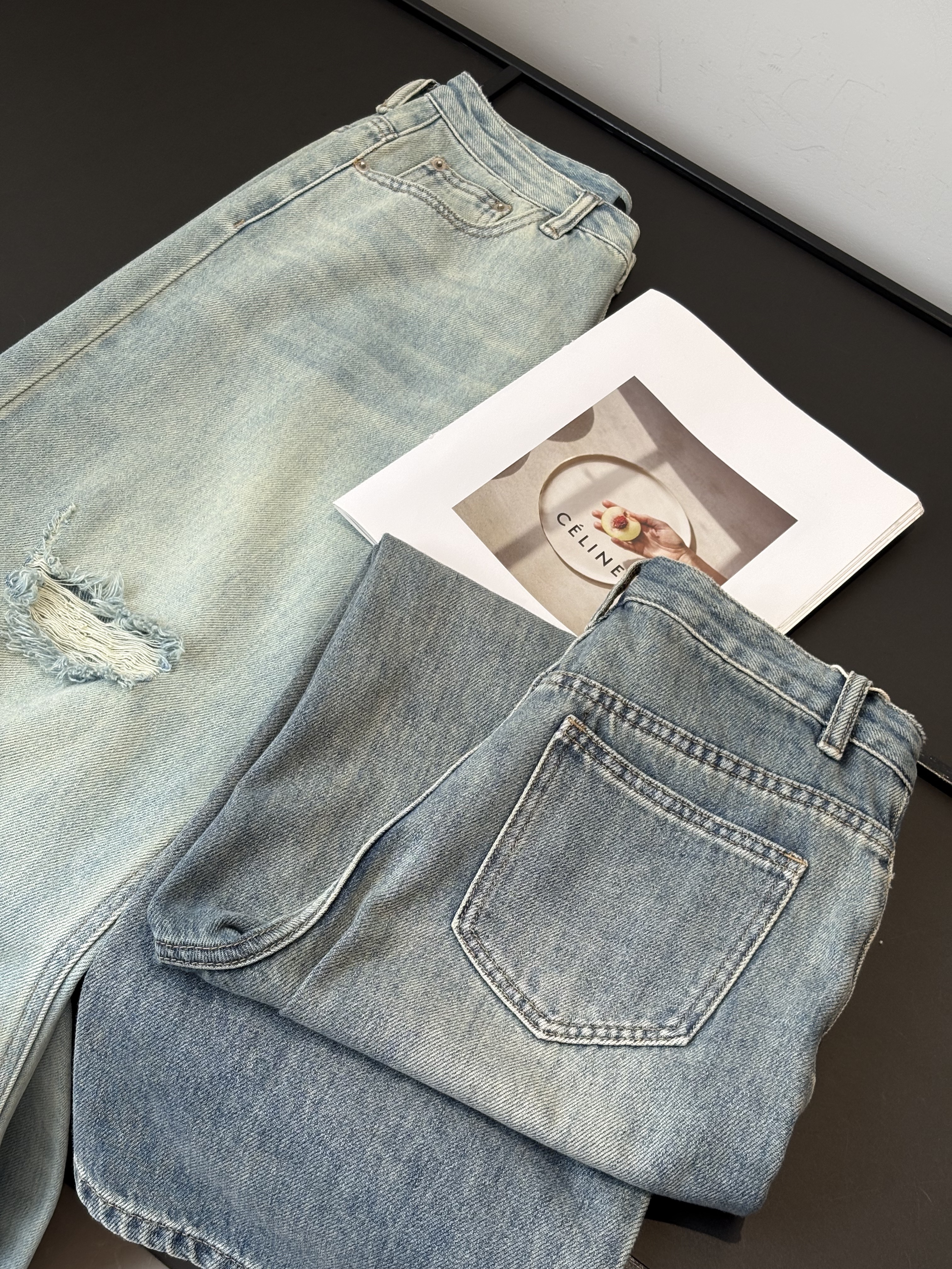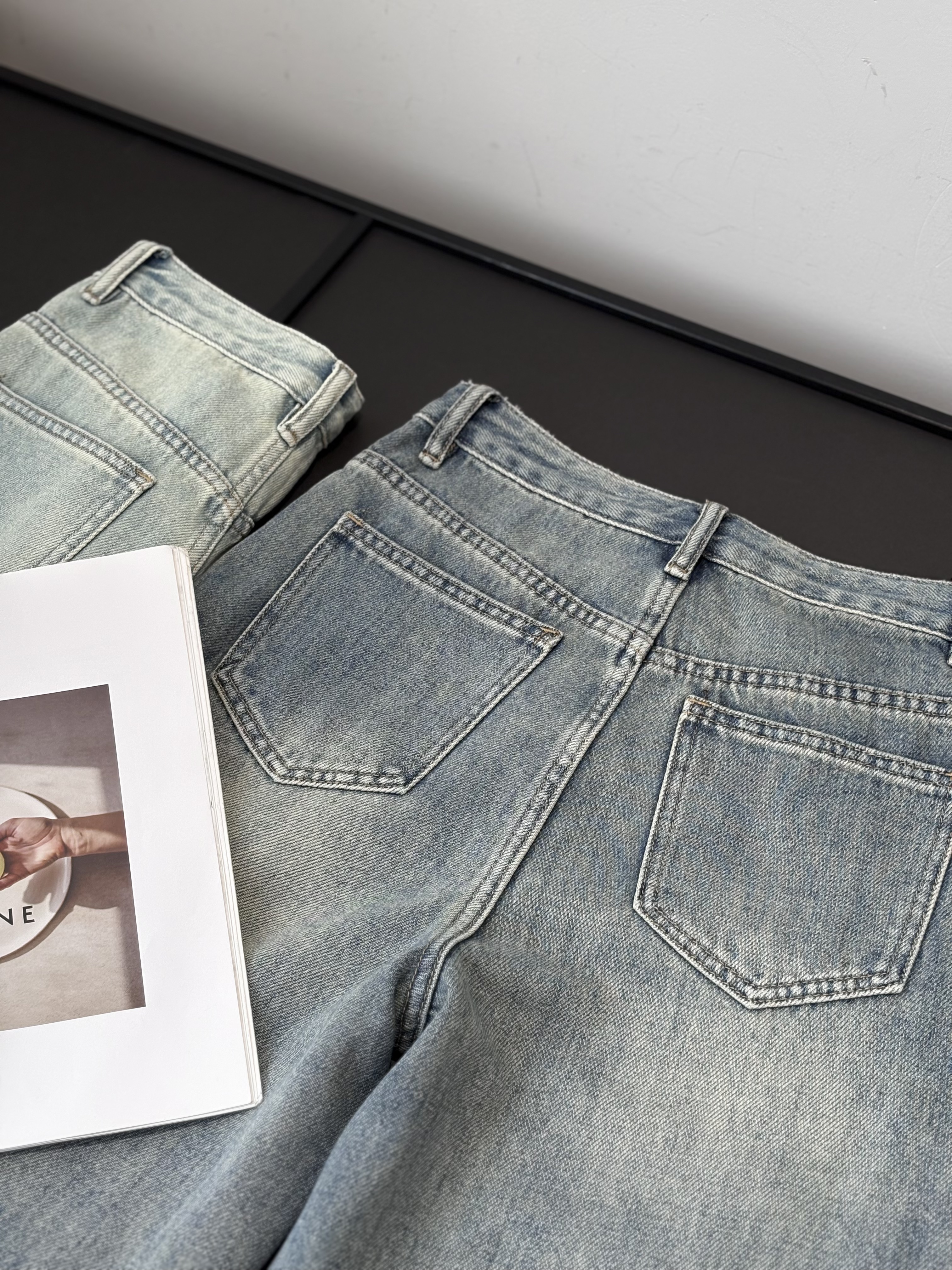 会员福利【高阶感+小个子天菜】拉夏贝尔/La Chapelle美式复古破洞牛仔裤女时尚设计感水洗直筒九分裤