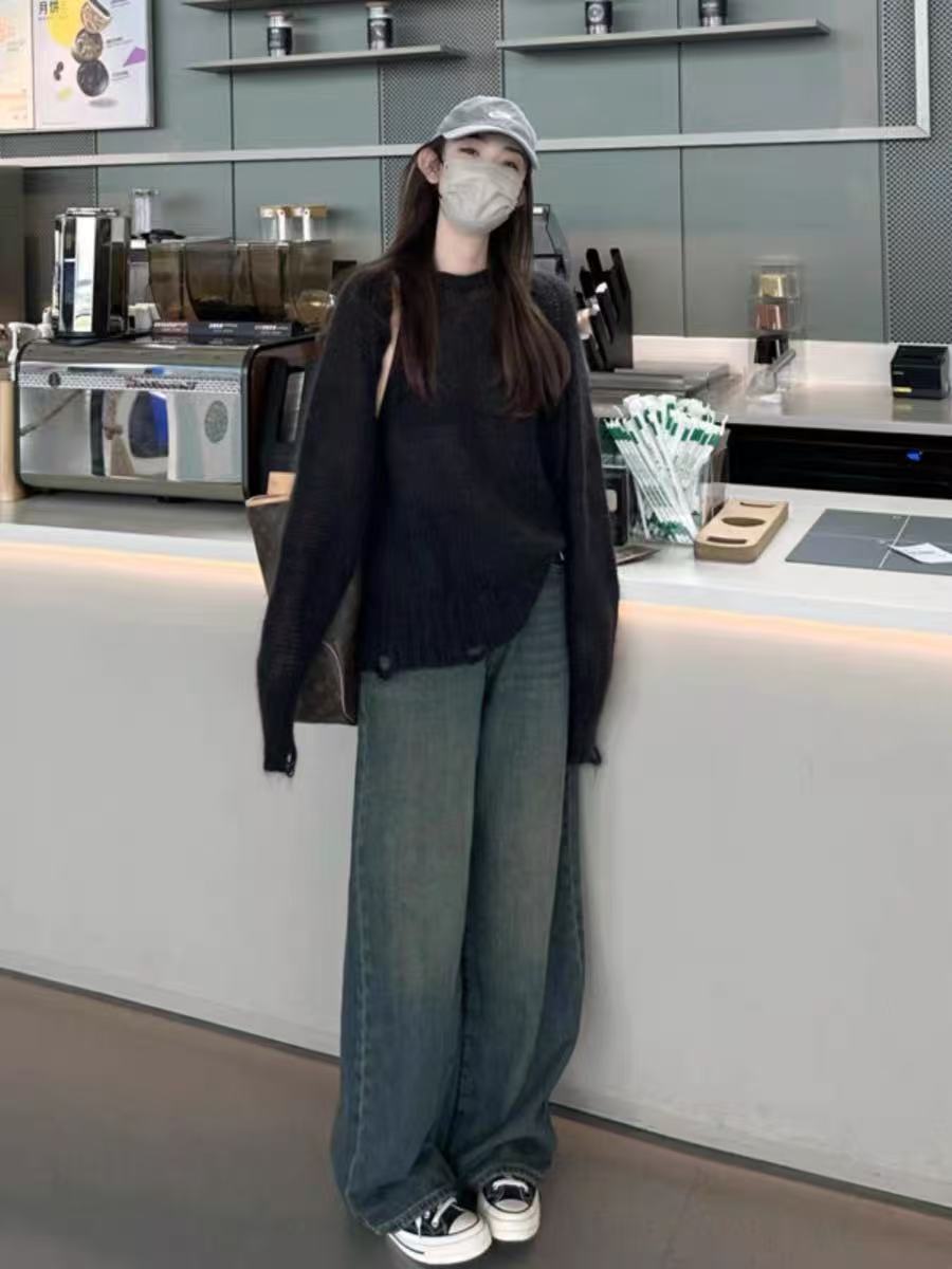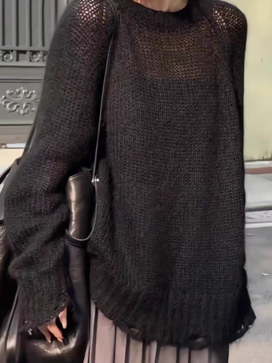 【孤品捡漏】G215黑色破洞针毛衣-喜出