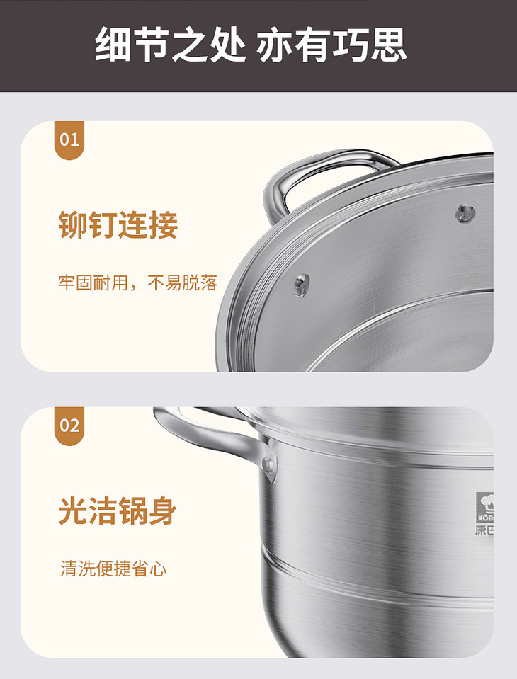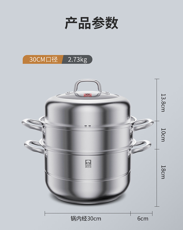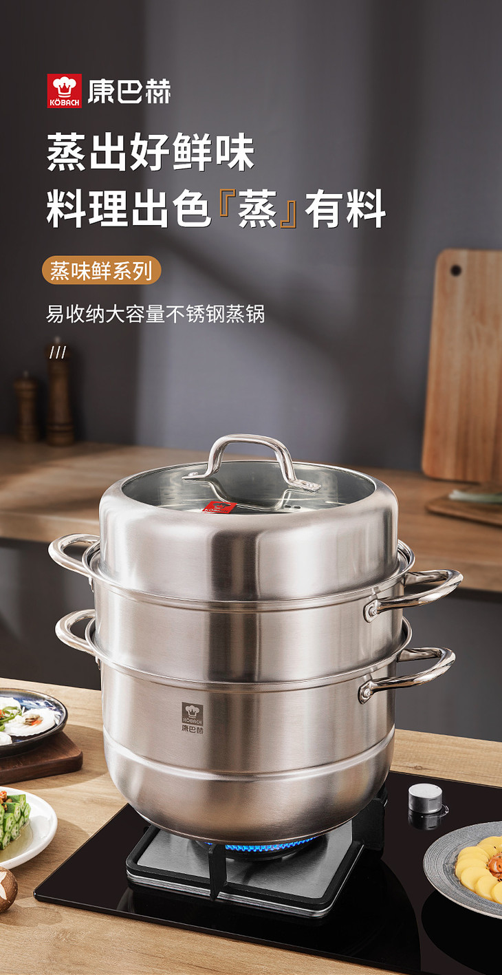 【康巴赫】蒸味鲜系列易收纳大容量不锈钢蒸锅【三层-30cm】加厚不锈钢高盖蒸笼蒸鱼馒头电磁炉煤气灶通用 【14043023】KZS-30B31