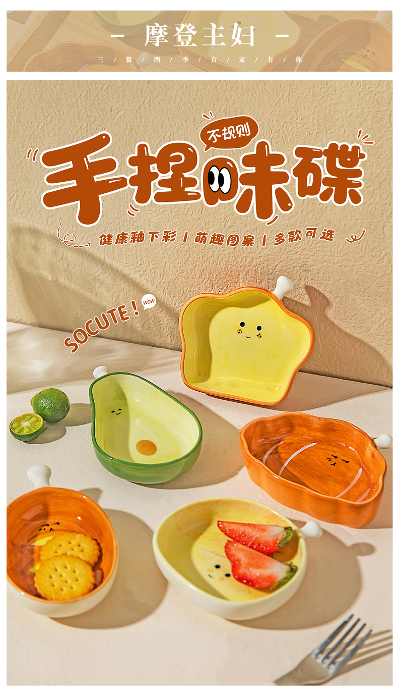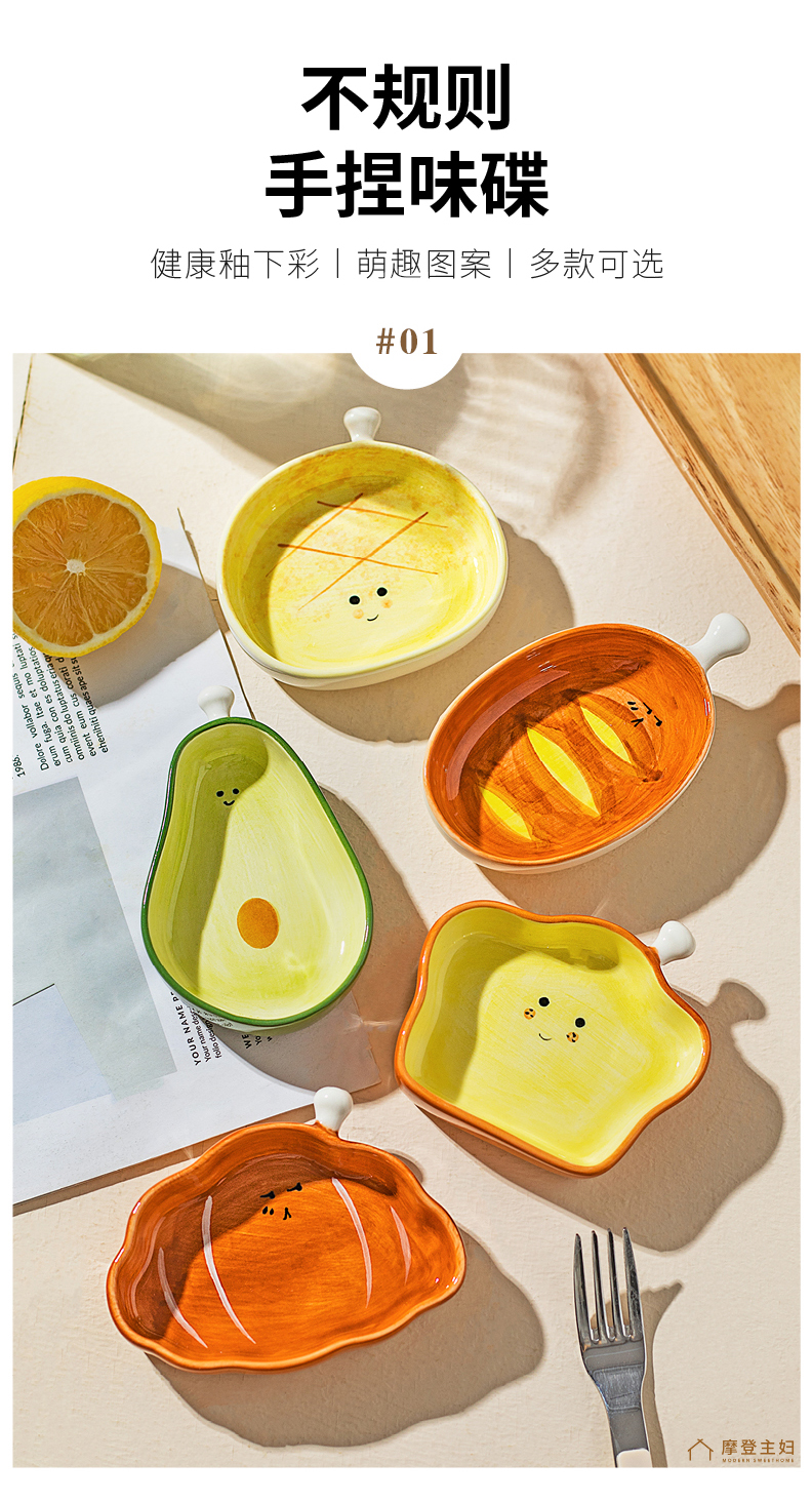 摩登主妇手捏陶瓷味碟家用小碟子火锅酱油醋调味碟可爱小号小碟子