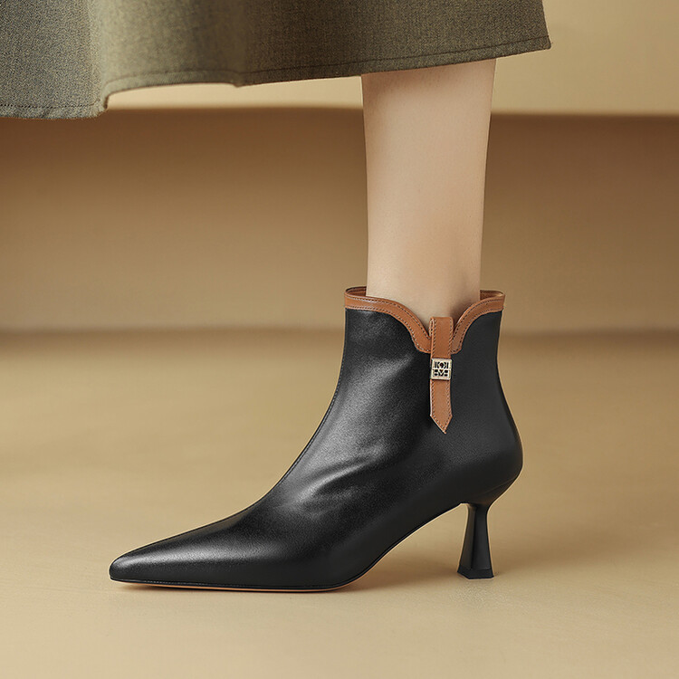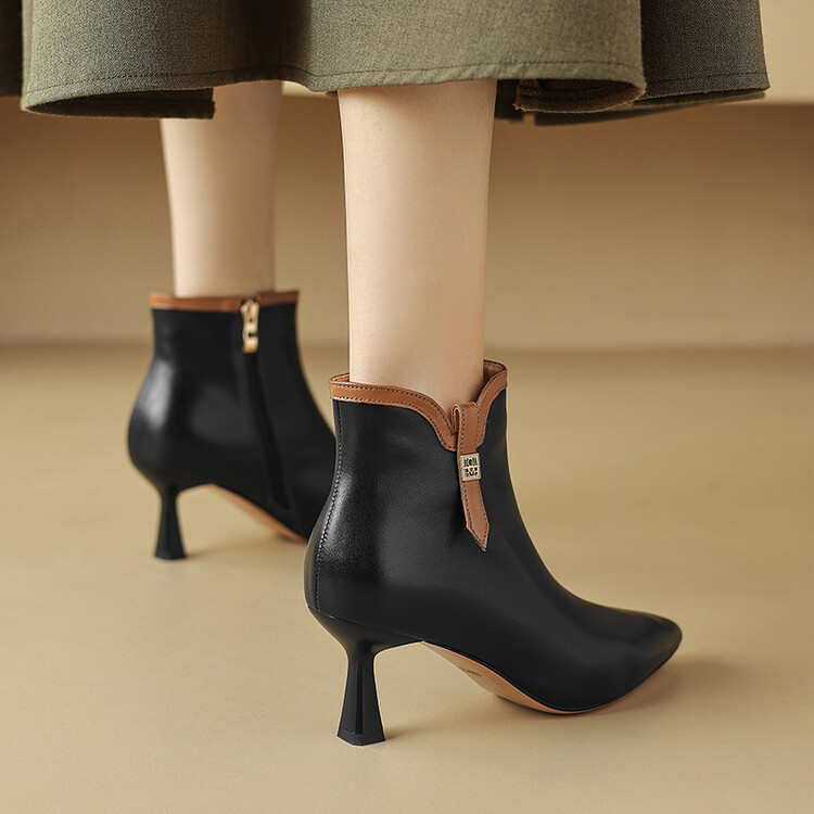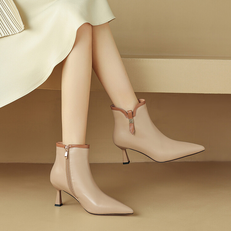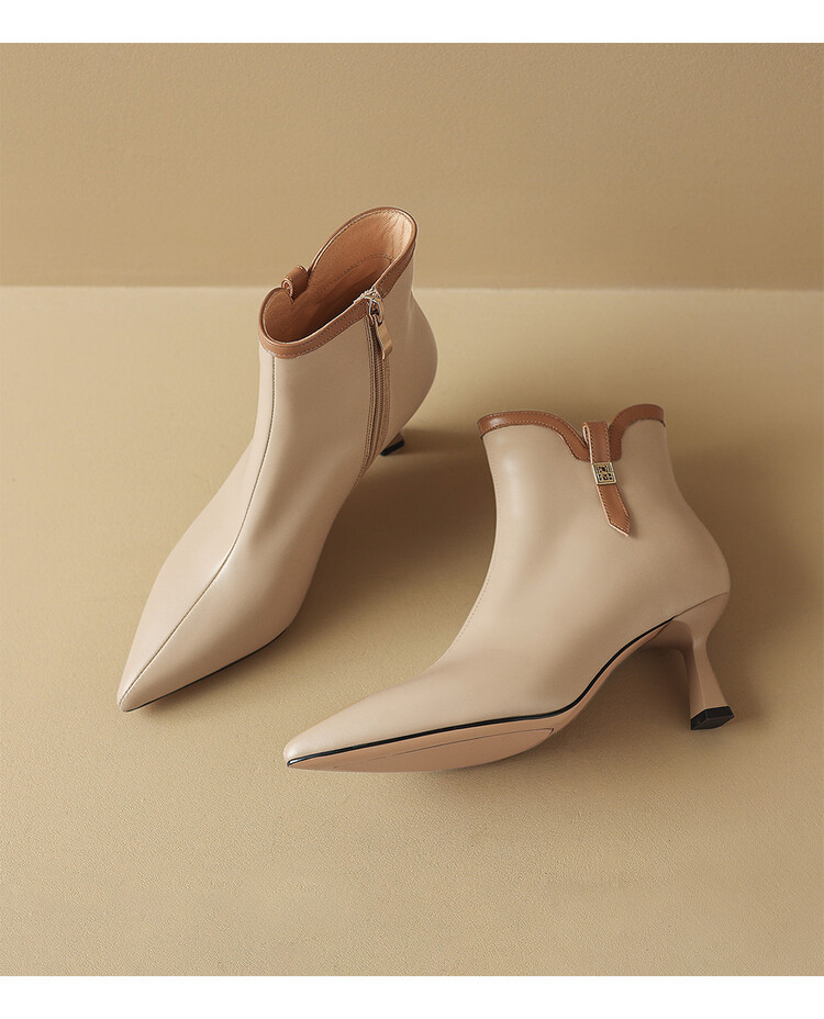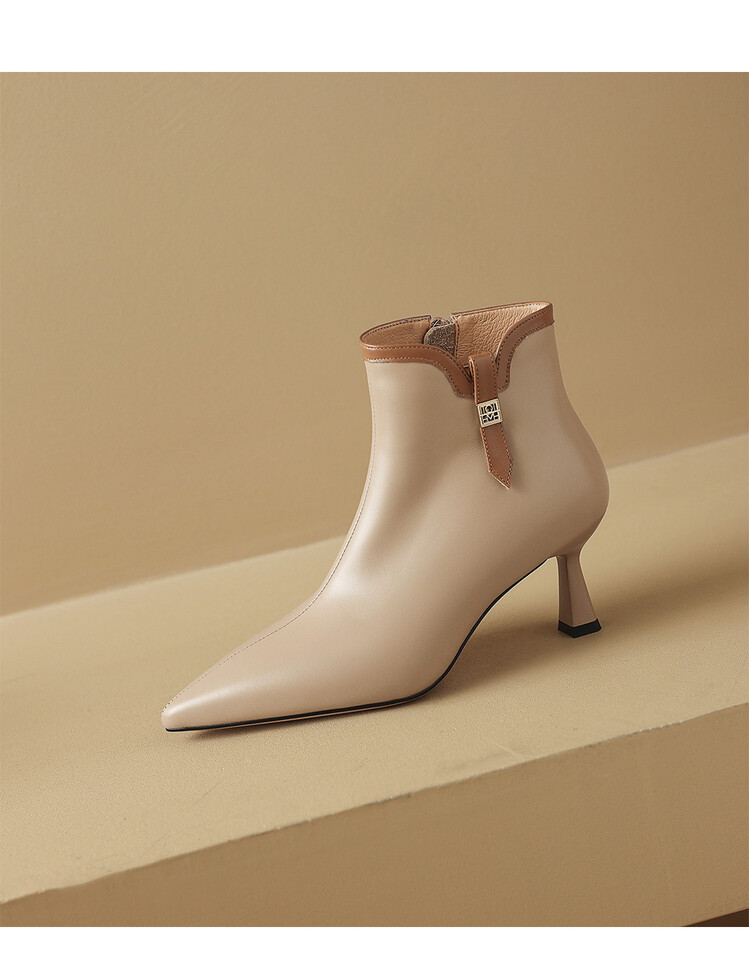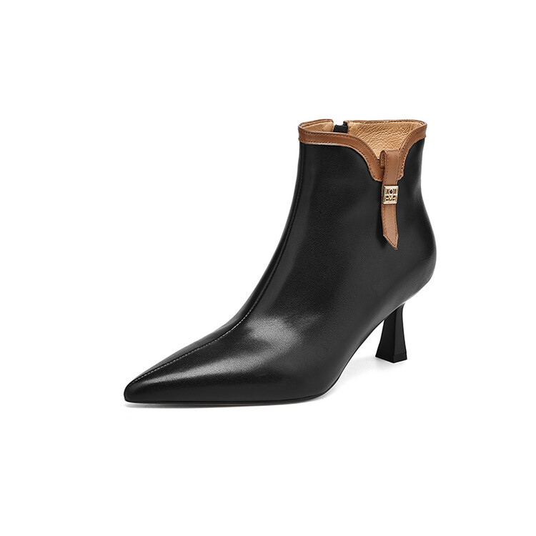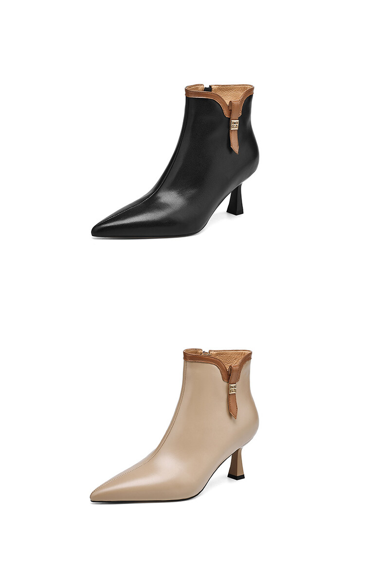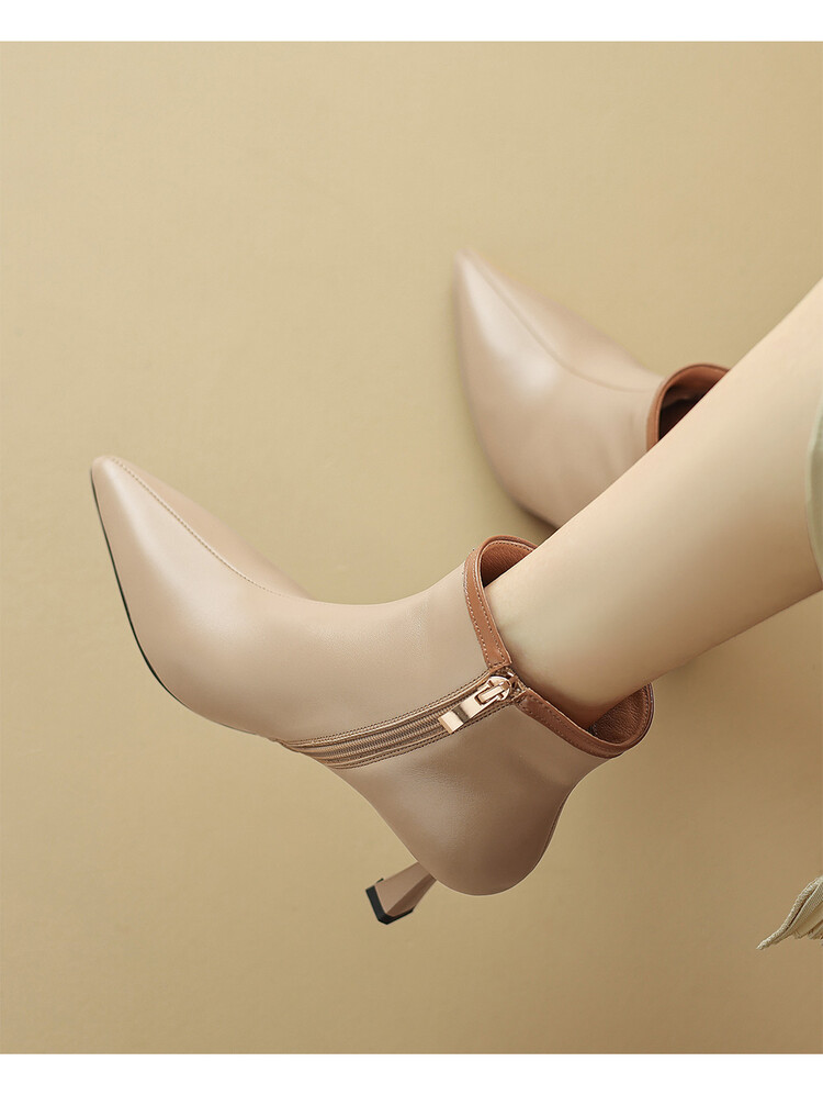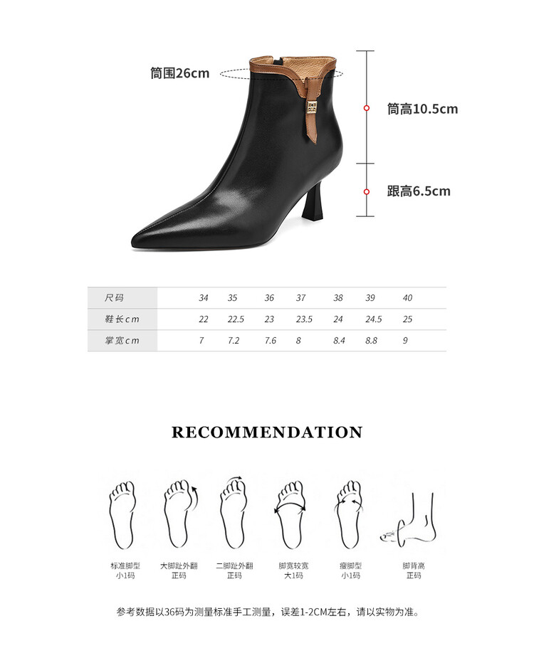 【预售5天】真皮复古拼接尖头短筒靴女秋冬季新款软皮高跟瘦瘦靴子NDXC&6857