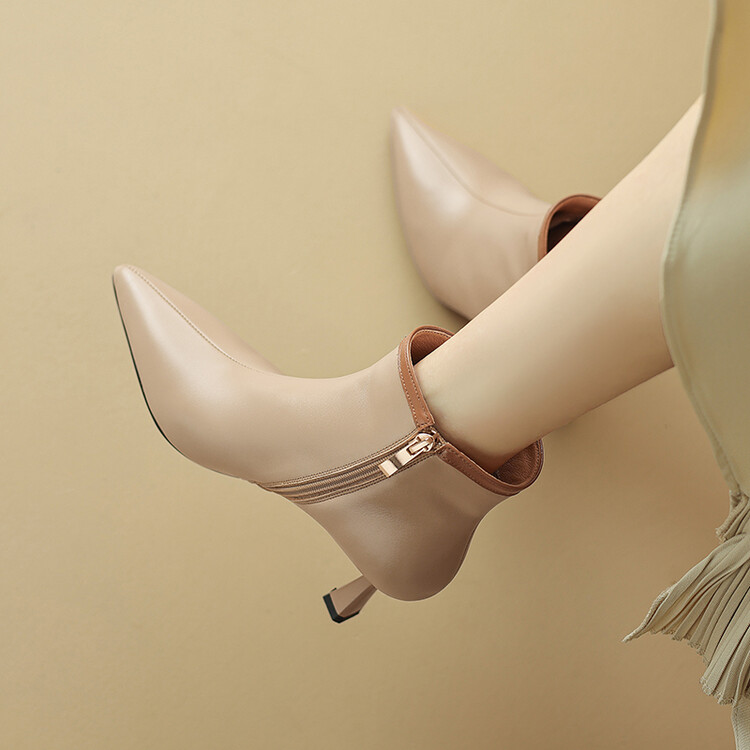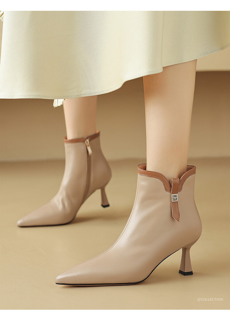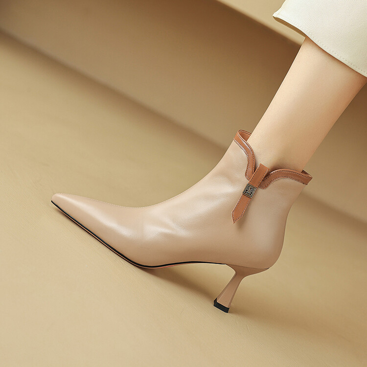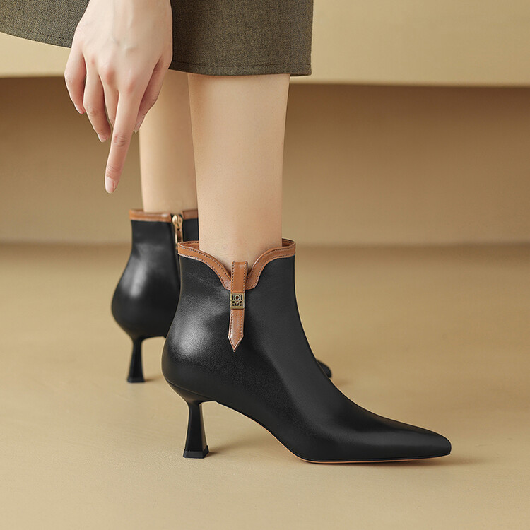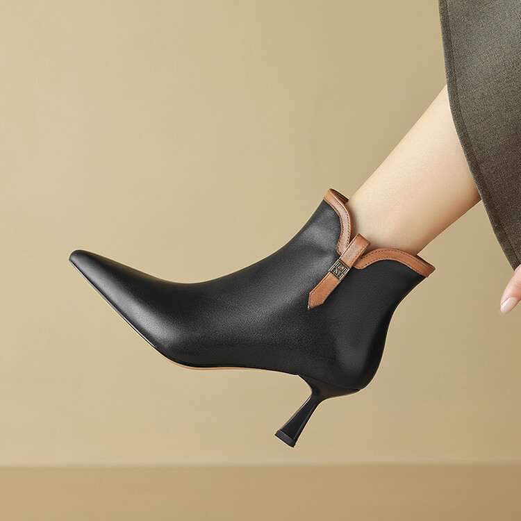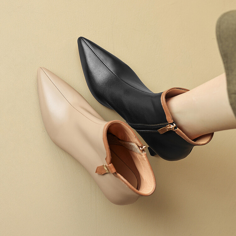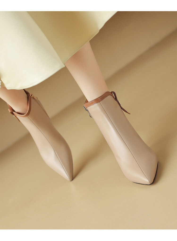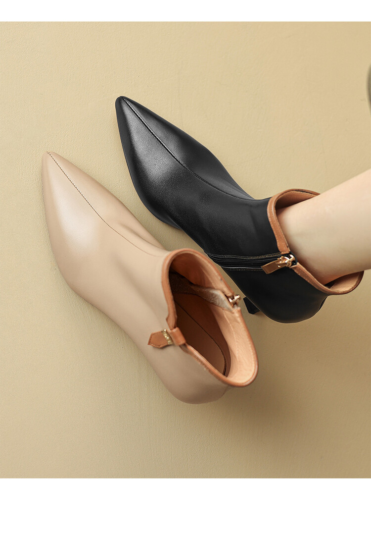 【预售5天】真皮复古拼接尖头短筒靴女秋冬季新款软皮高跟瘦瘦靴子NDXC&6857